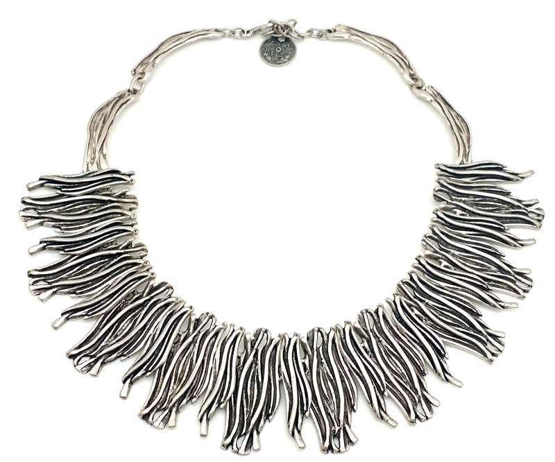 It is silver plated over Zinc. It "doesn't" change color. Led and nicel free.