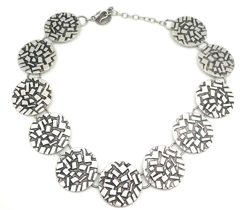 It is silver plated over Zinc. It "doesn't" change color. Led and nicel free.