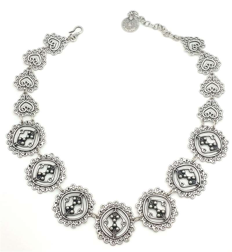 It is silver plated over Zinc. It "doesn't" change color. Led and nicel free.