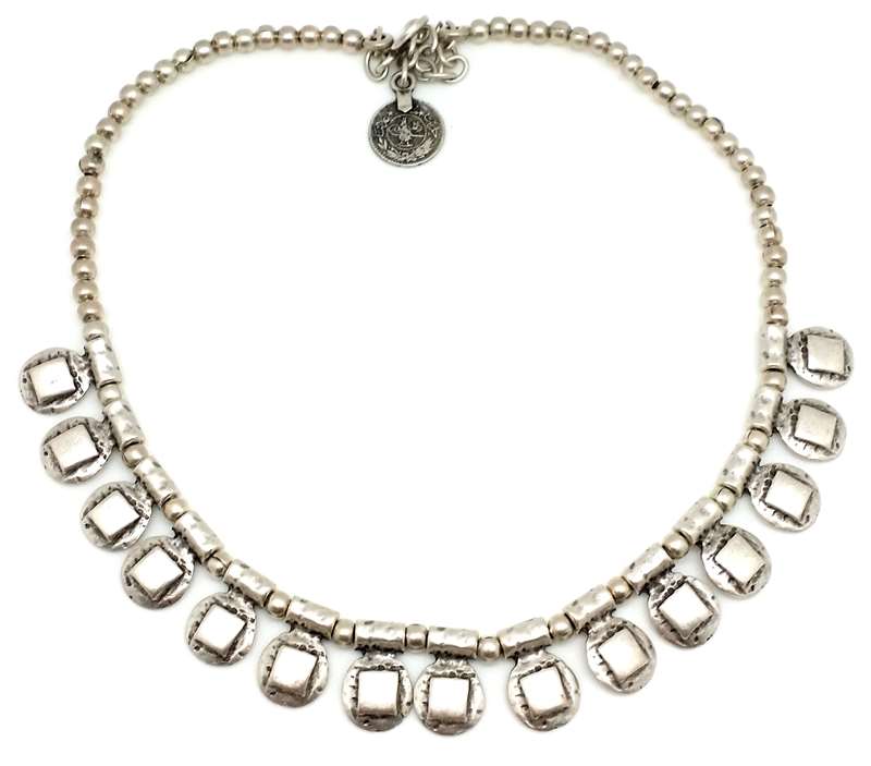 It is silver plated over Zinc. It doesn't change color. Led and nicel free.