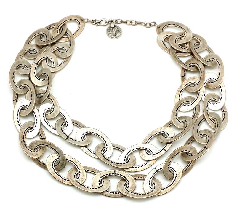 It is silver plated over Zinc. It "doesn't" change color. Led and nicel free.