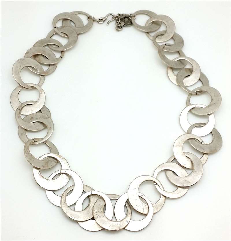 It is silver plated over Zinc. It "doesn't" change color. Led and nicel free.