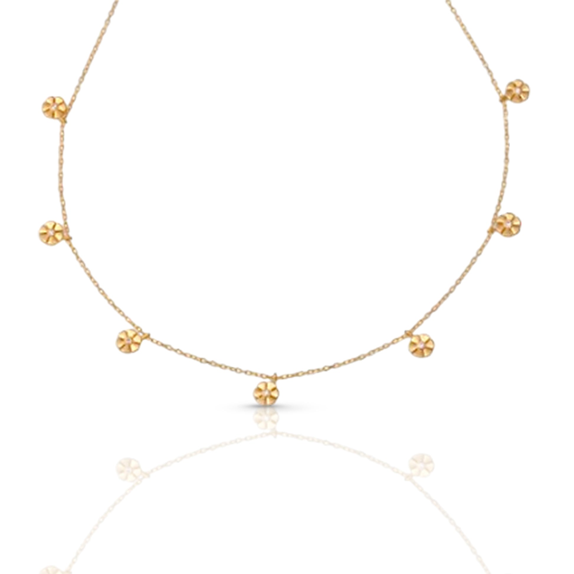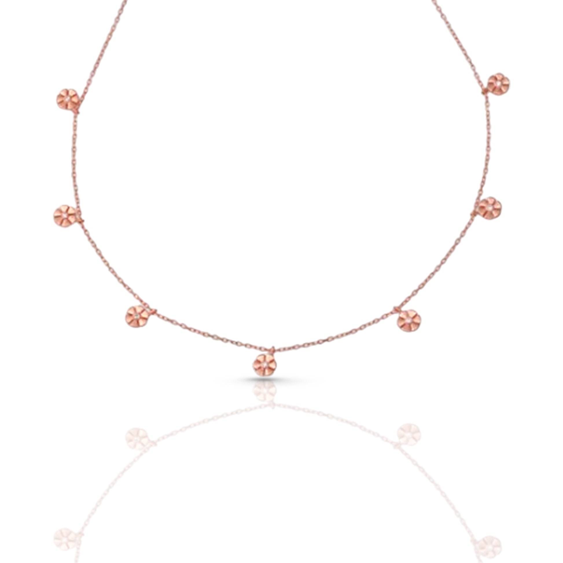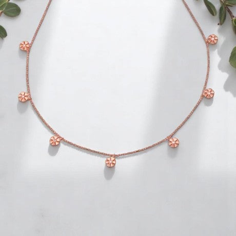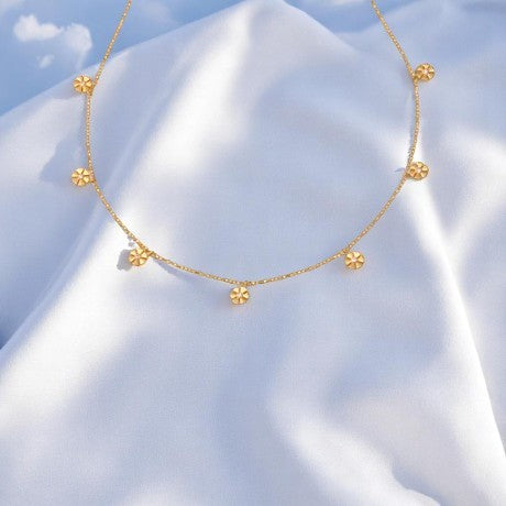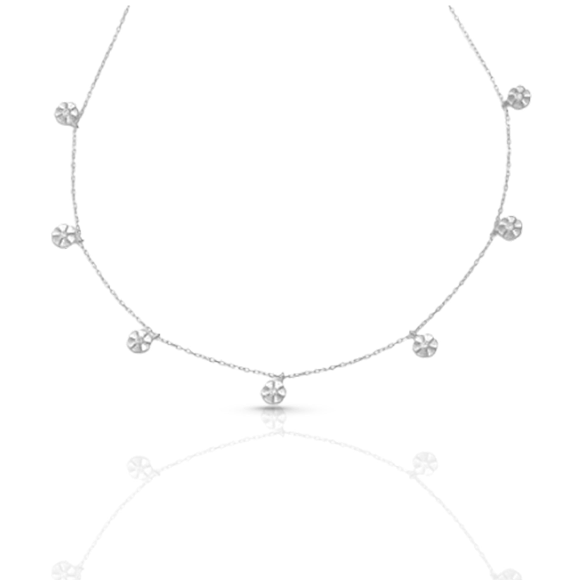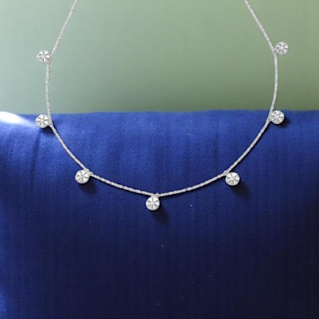 7 Flower chain necklace. The metal is sterling silver. The size is 16"+2" extension.
