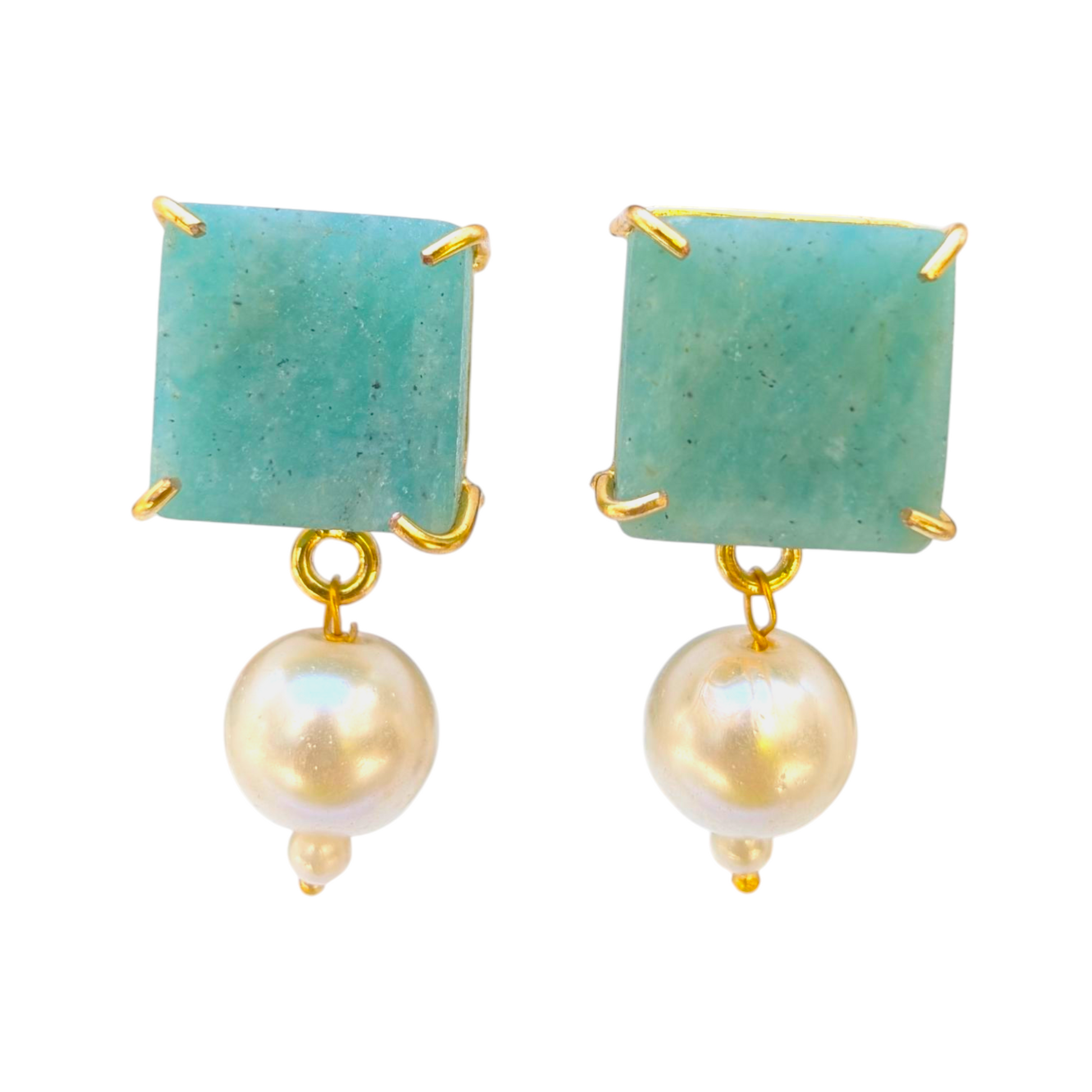 Graceful and naturally radiant, these Green Chalcedony and Pearl Handmade Gold Earrings blend soft sophistication with a touch of earthy charm. Featuring a luminous freshwater pearl paired with a smooth green chalcedony gemstone, each earring offers a perfect balance of classic and contemporary style.