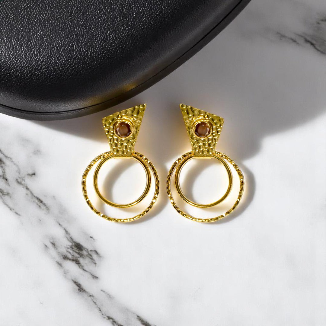 Aurora Brown Circle Gold Earrings