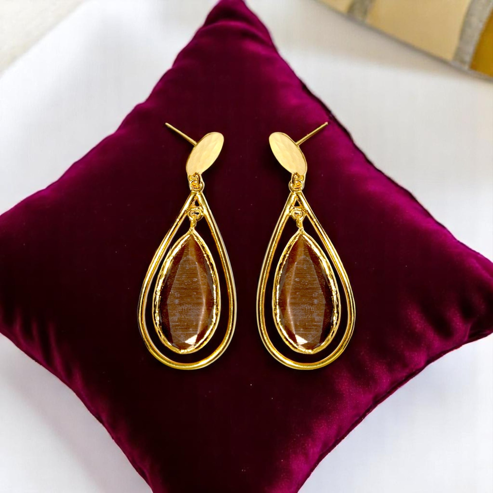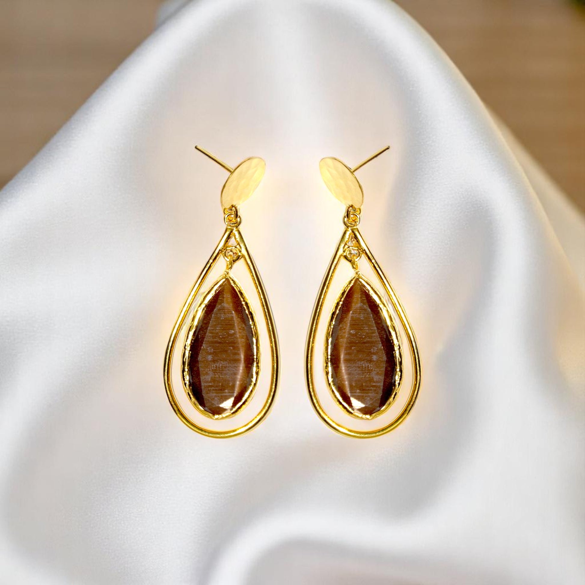 Aurora Brown in Cage Gold Earrings