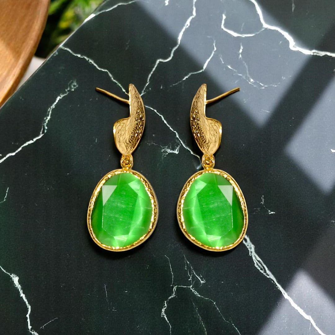 Zeyzey's AURORA, 24k Gold plated. Semi Precious statement earrings are hand made