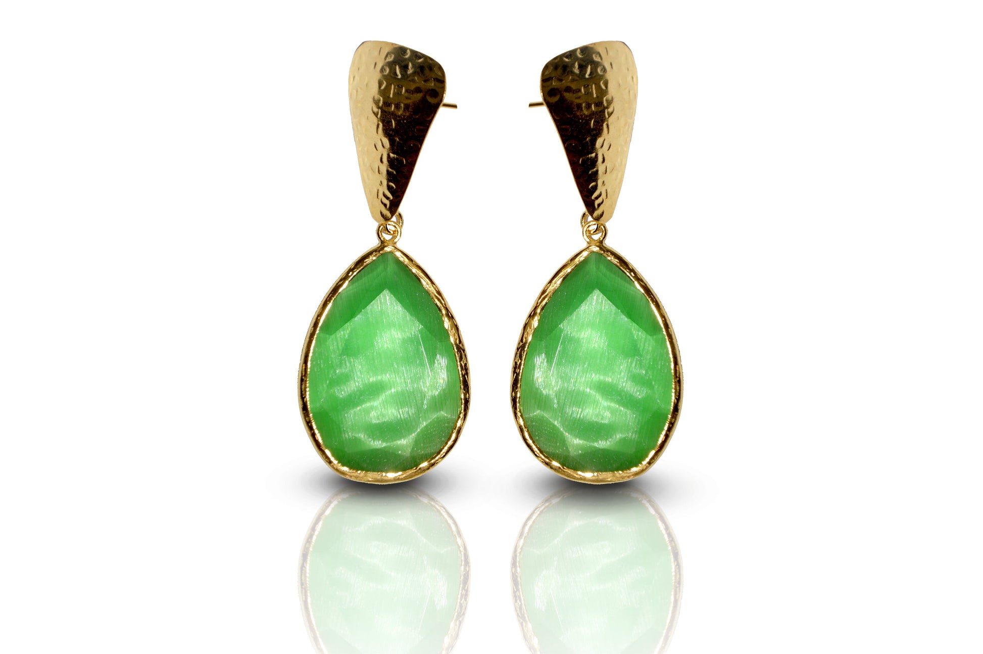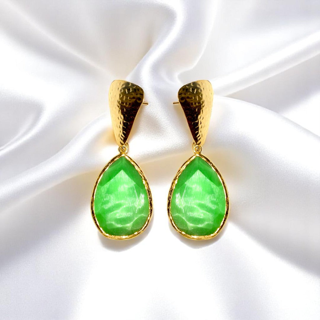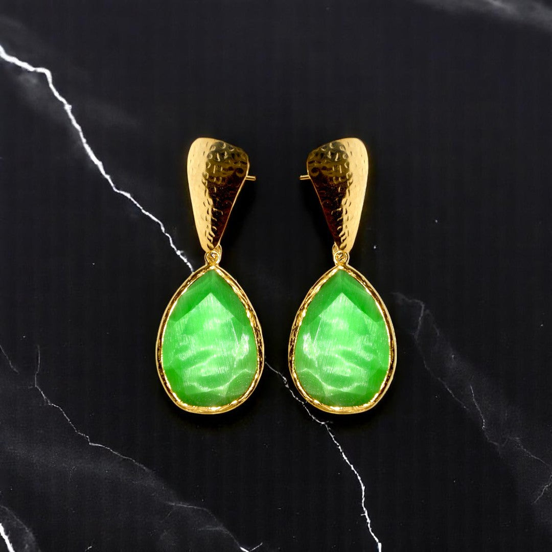 Aurora Green Funnel Gold Earrings