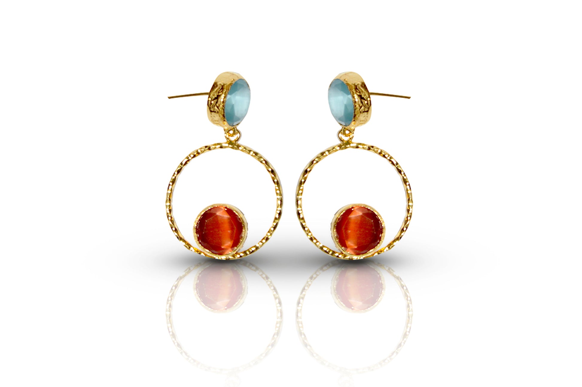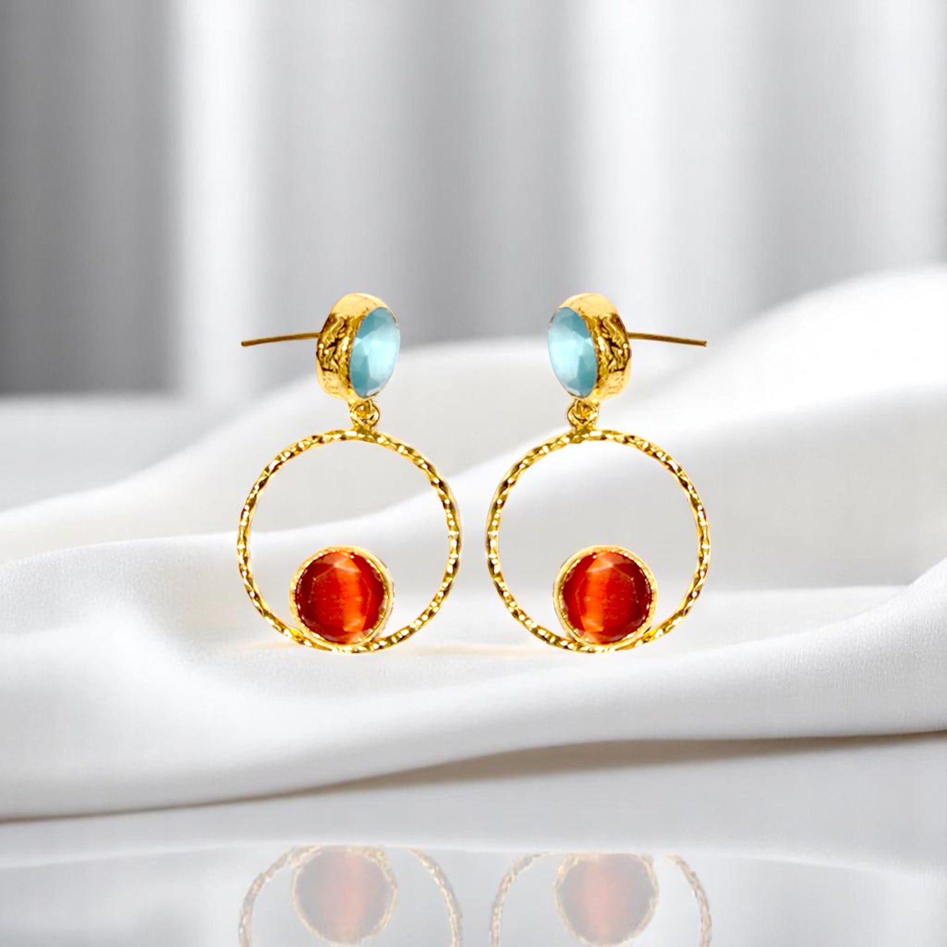 Aurora Orange Eyes Gold Earrings