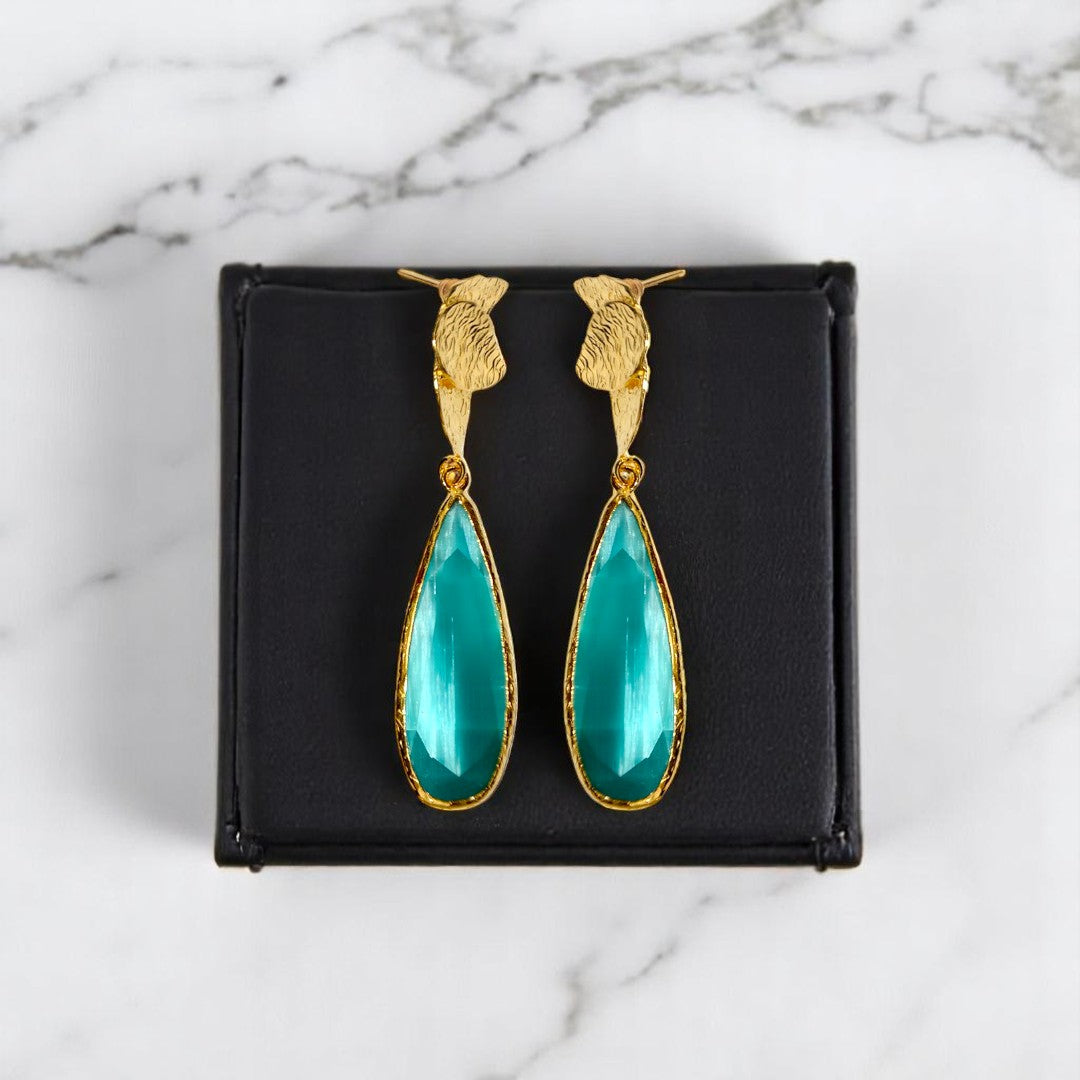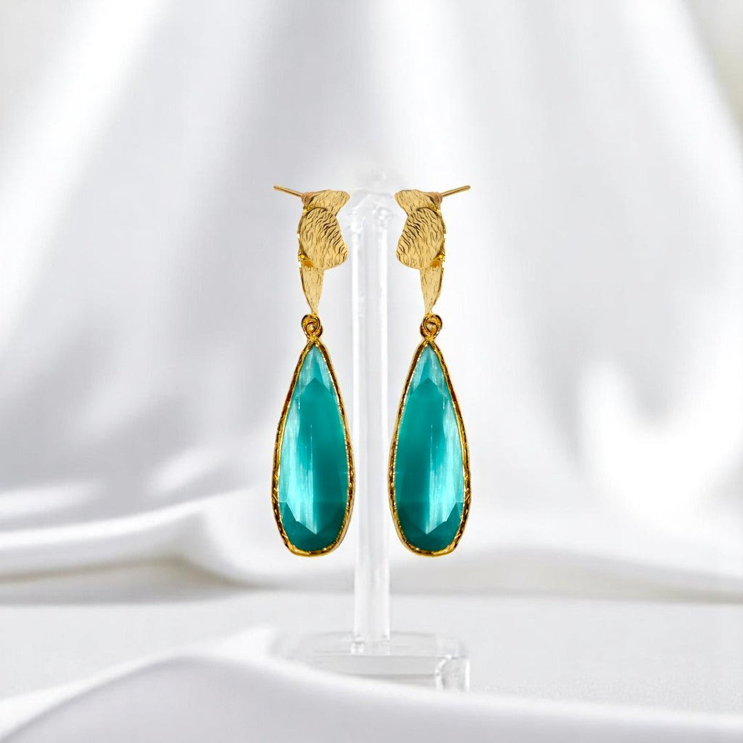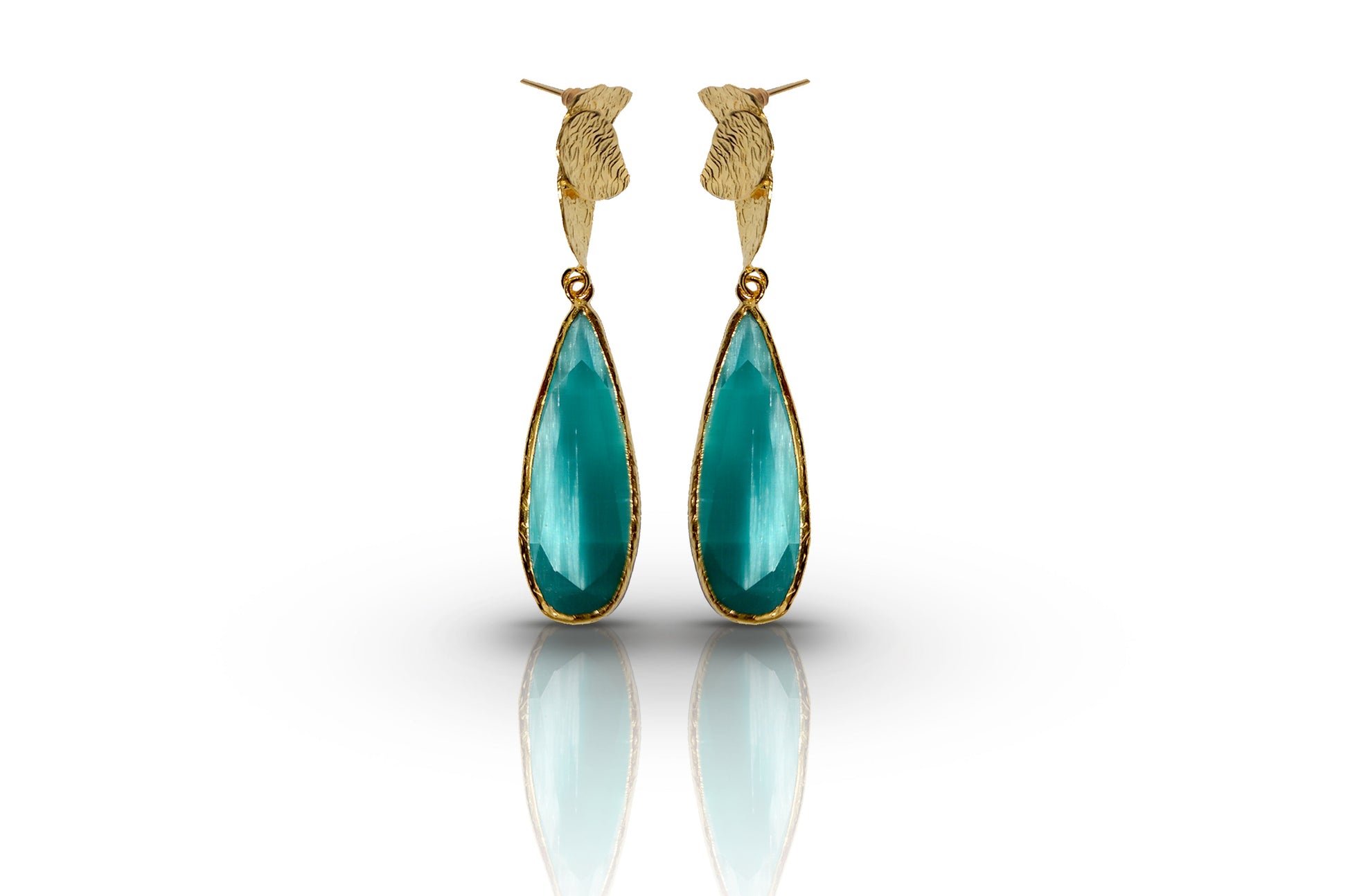 Zeyzey's AURORA, 24k Gold plated. Semi Precious statement earrings are hand made