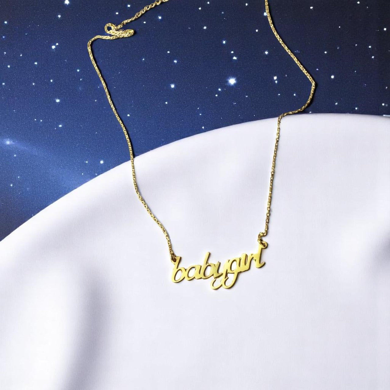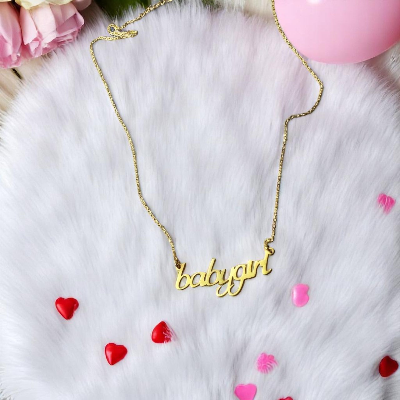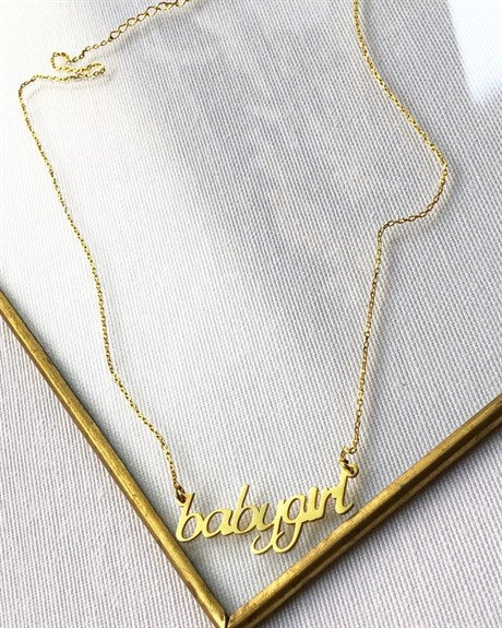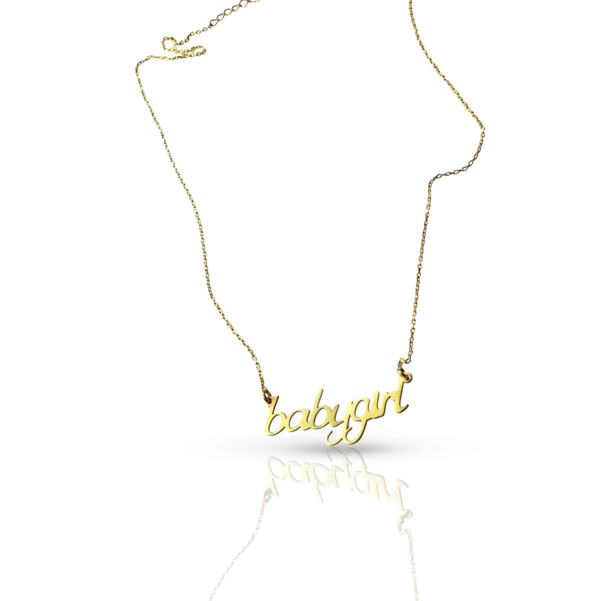 Babygirl necklace. The metal is sterling silver. The size is 16"+2" extension.