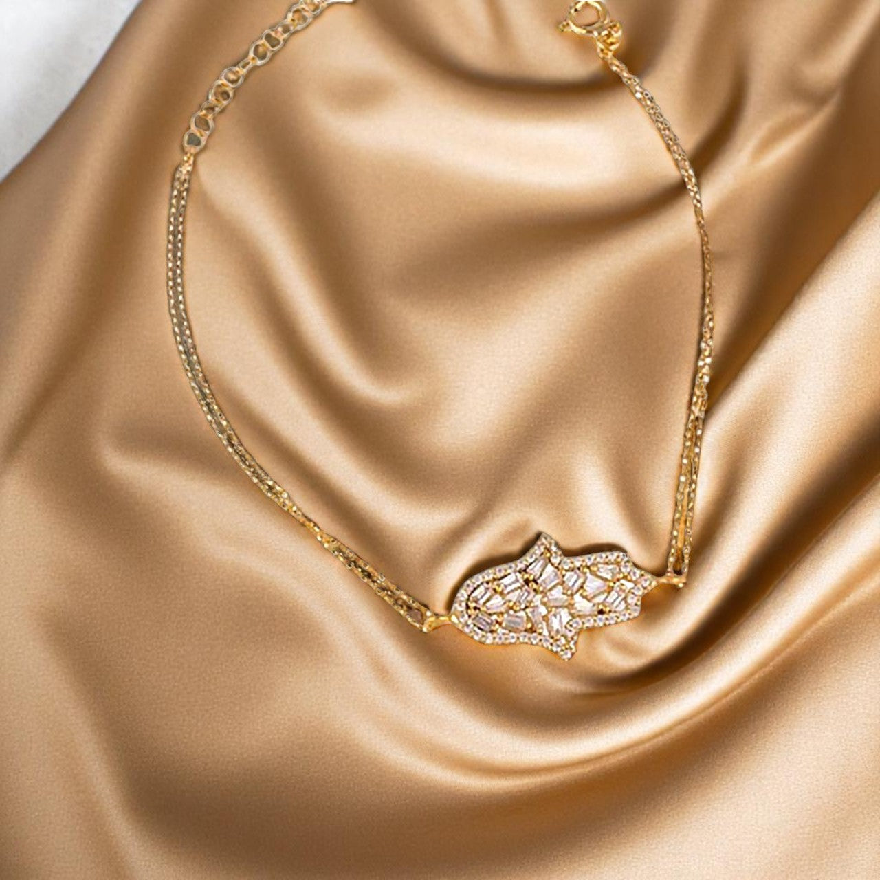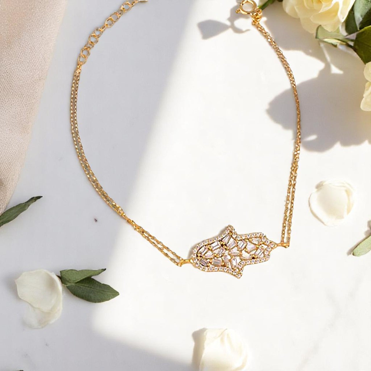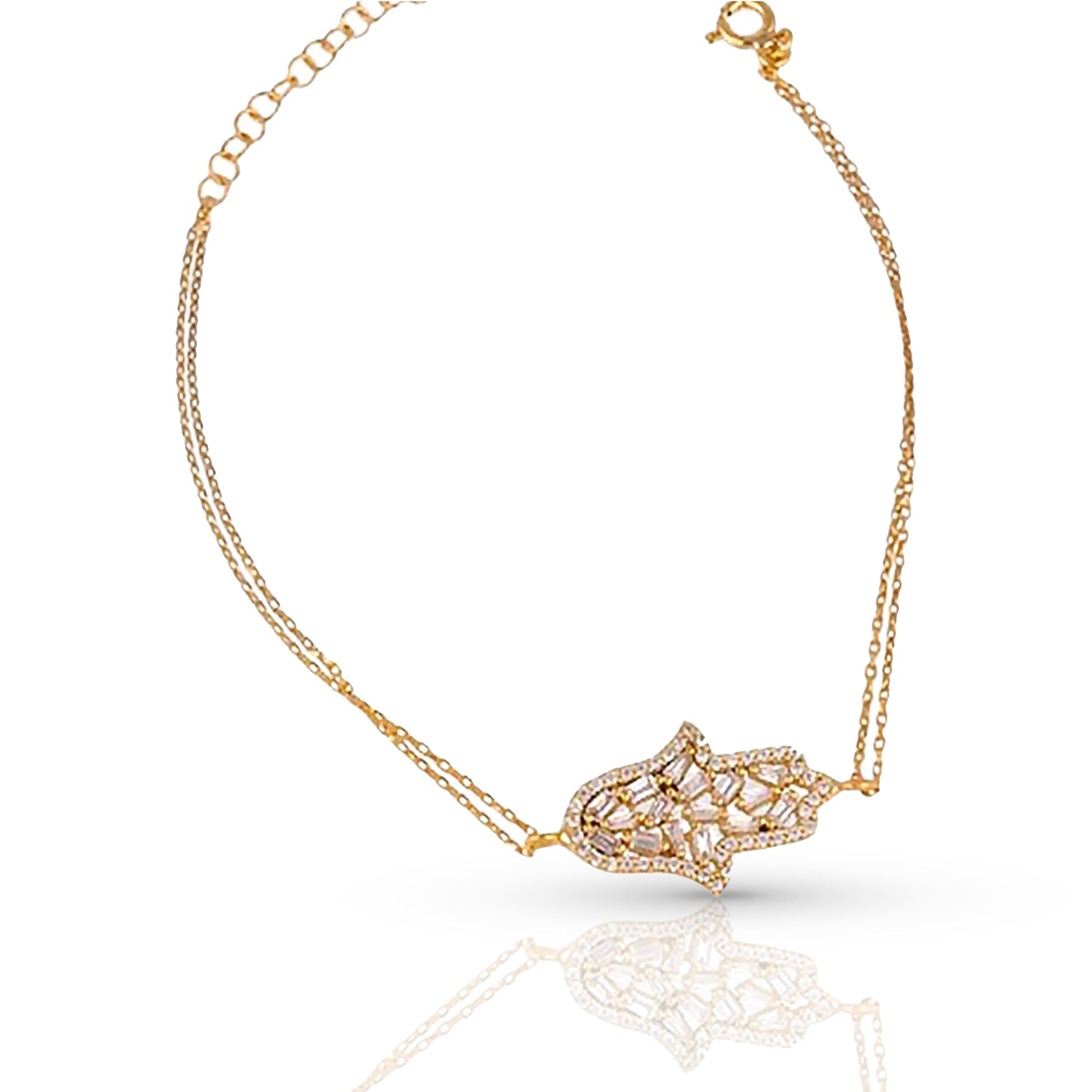 It is an adjustable sterling silver bracelet. The stones on the top are baguette cz stones.