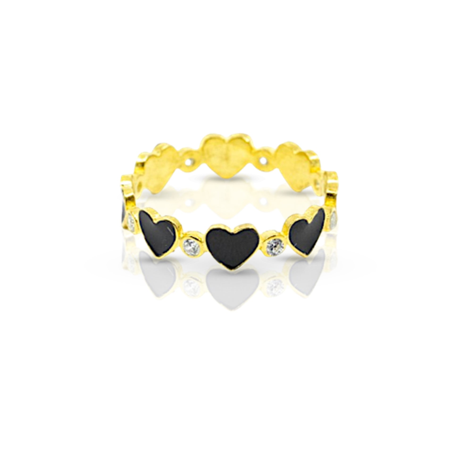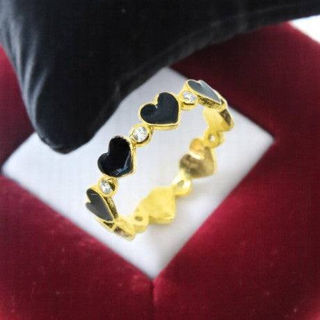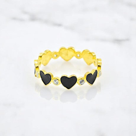 Black Heart To Heart Ring With CZ Diamonds
