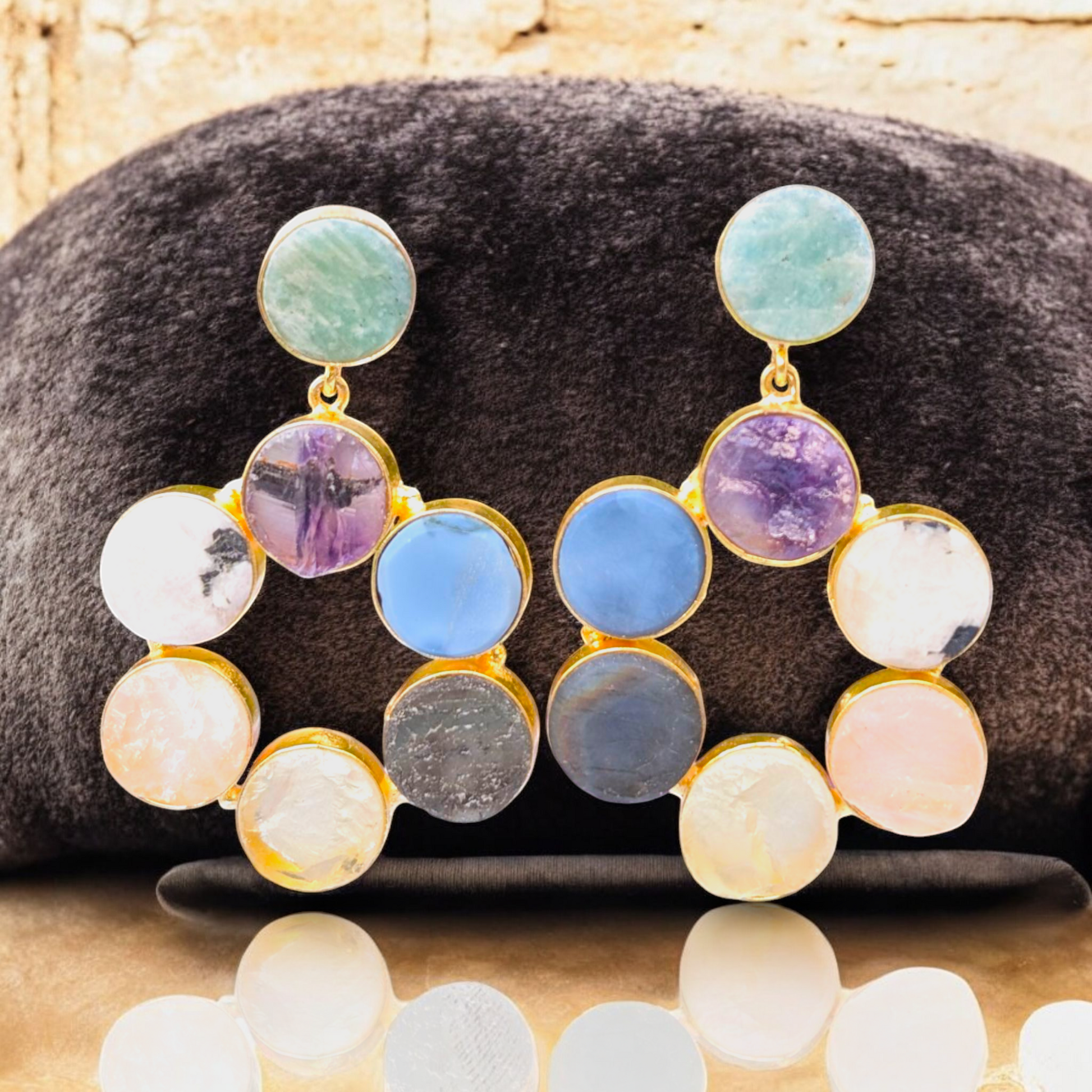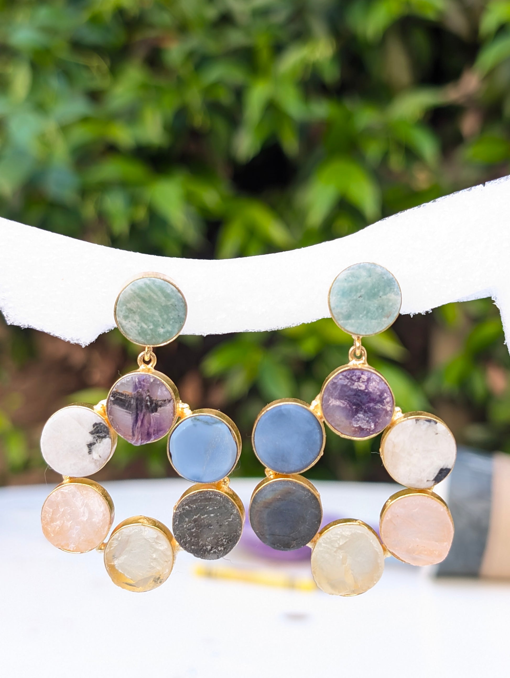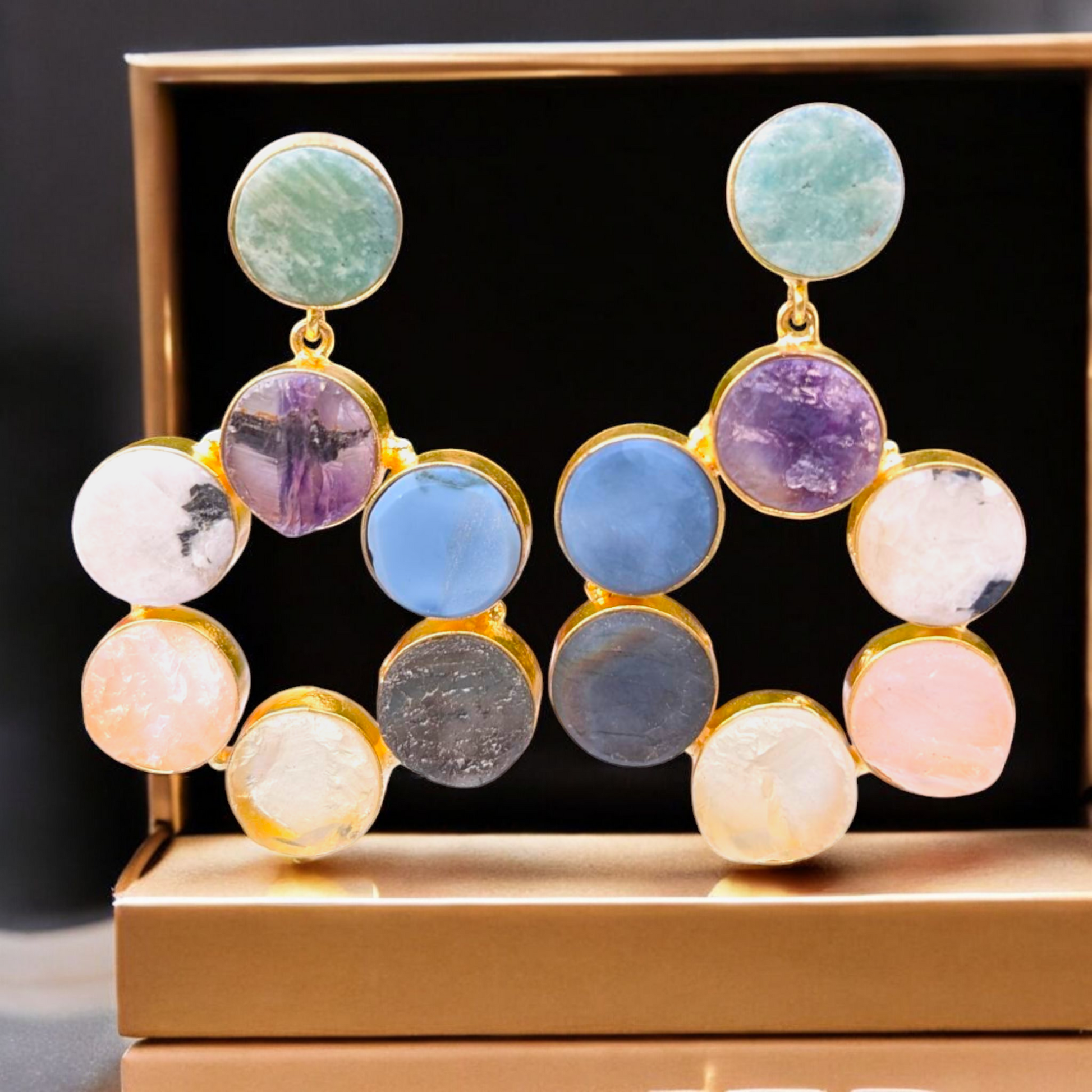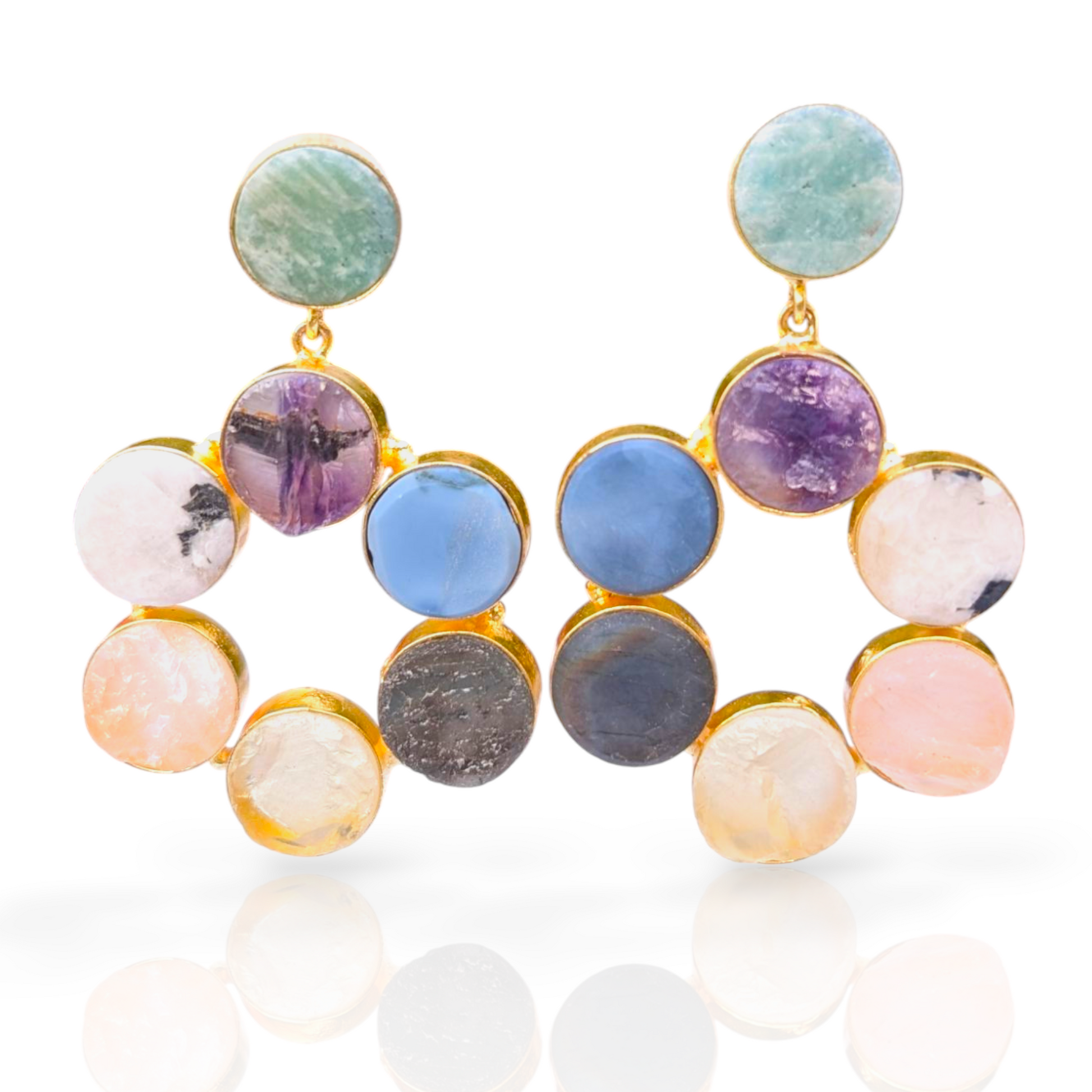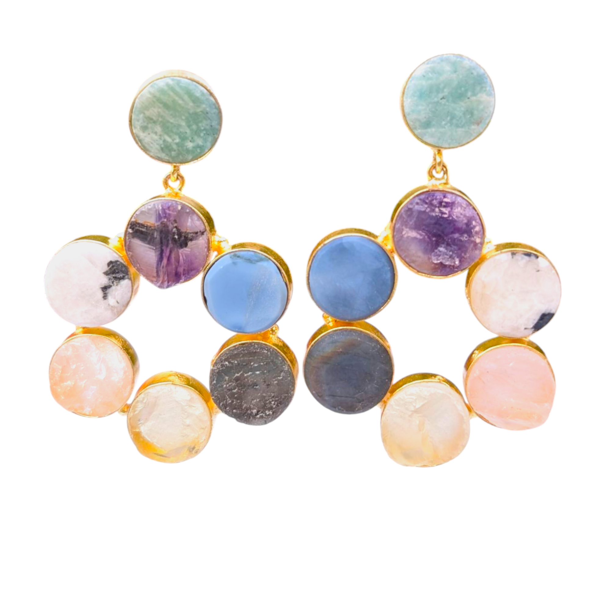 Step into the magic of natural gemstones with these stunning Mixed Rough Stone Handmade Gold Earrings, featuring a colorful combination of raw amethyst, rose quartz, amazonite, apatite, and crystal quartz. Each stone is left in its uncut, organic form—celebrating nature’s textures, colors, and healing energy.