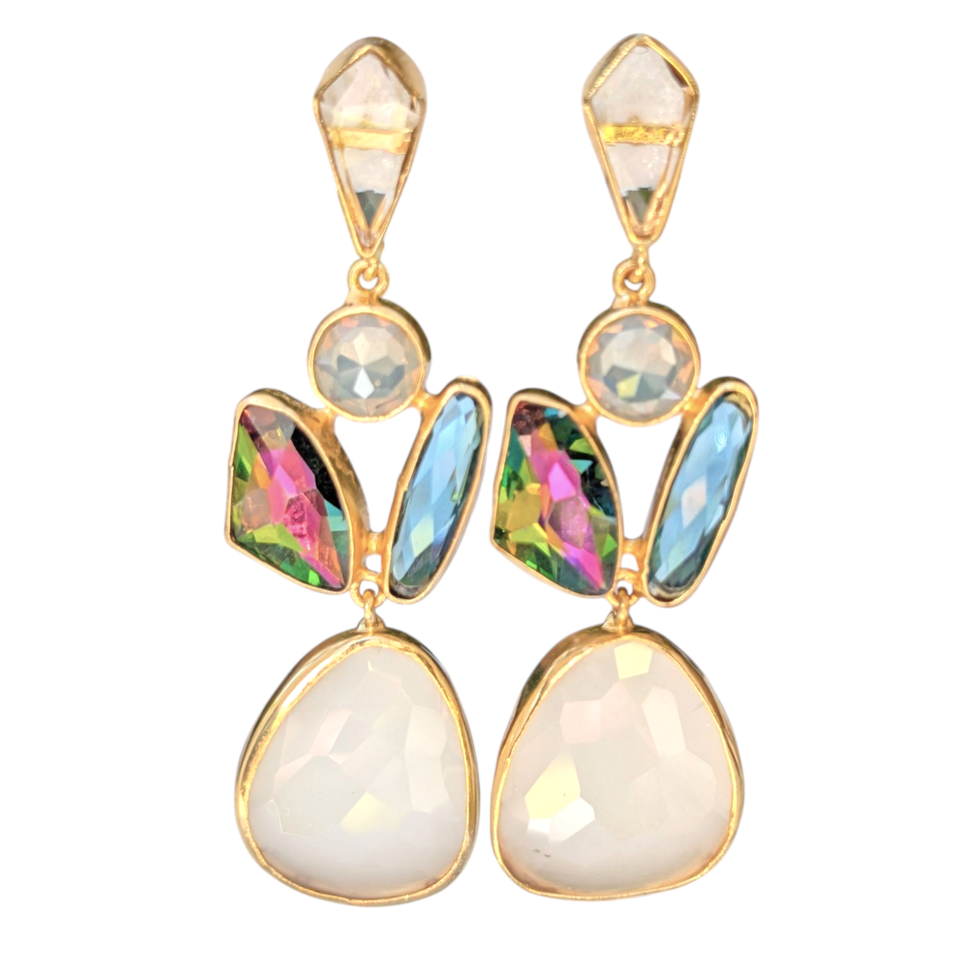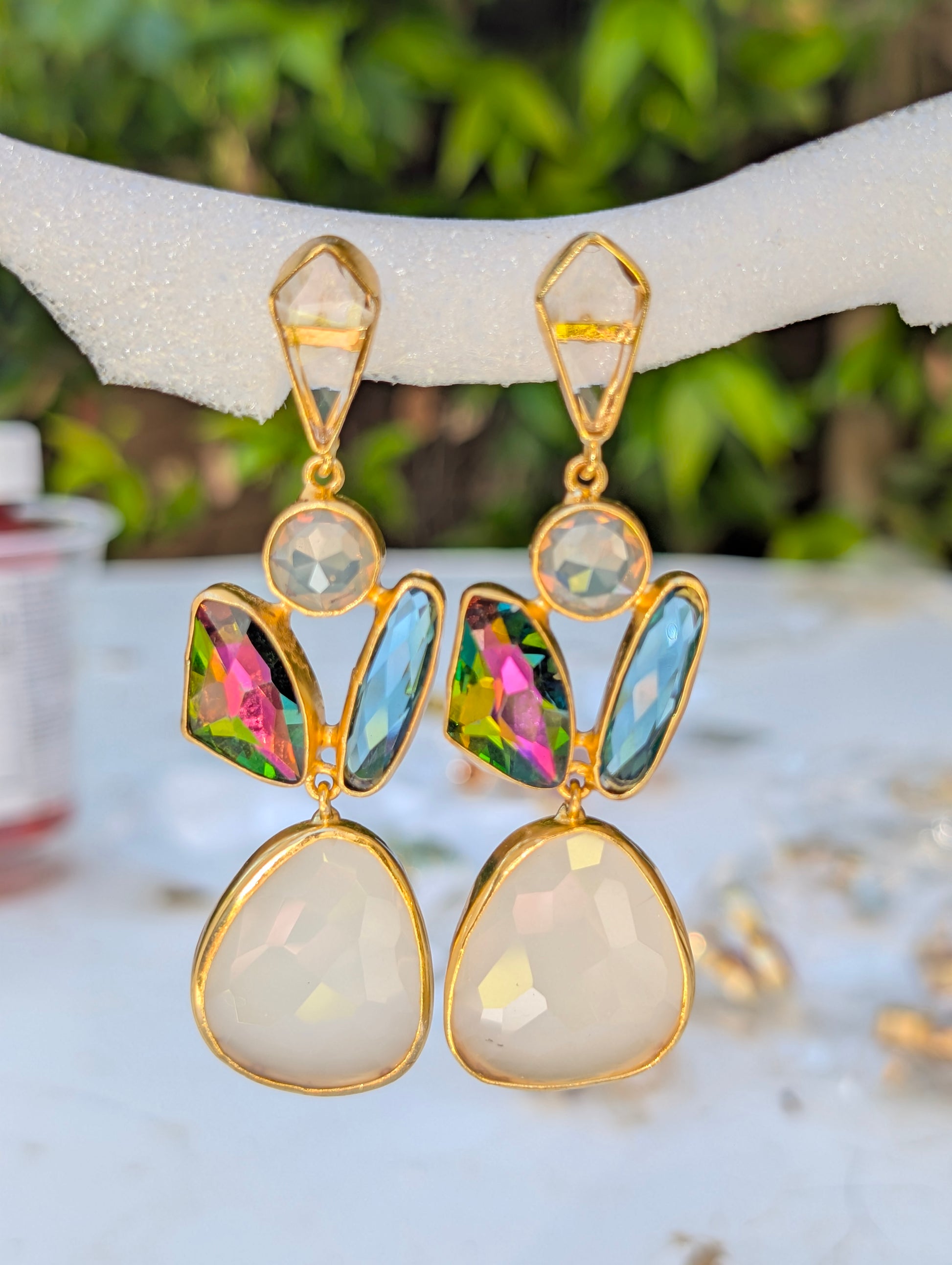 Add a burst of color to your accessory collection with these Mix Color CZ Stone Handmade Gold Earrings. Featuring a dazzling array of multicolored cubic zirconia stones, these earrings bring a lively, sparkling touch to any outfit. From vibrant reds to soft blues and greens, each stone reflects light and adds a playful pop of color.