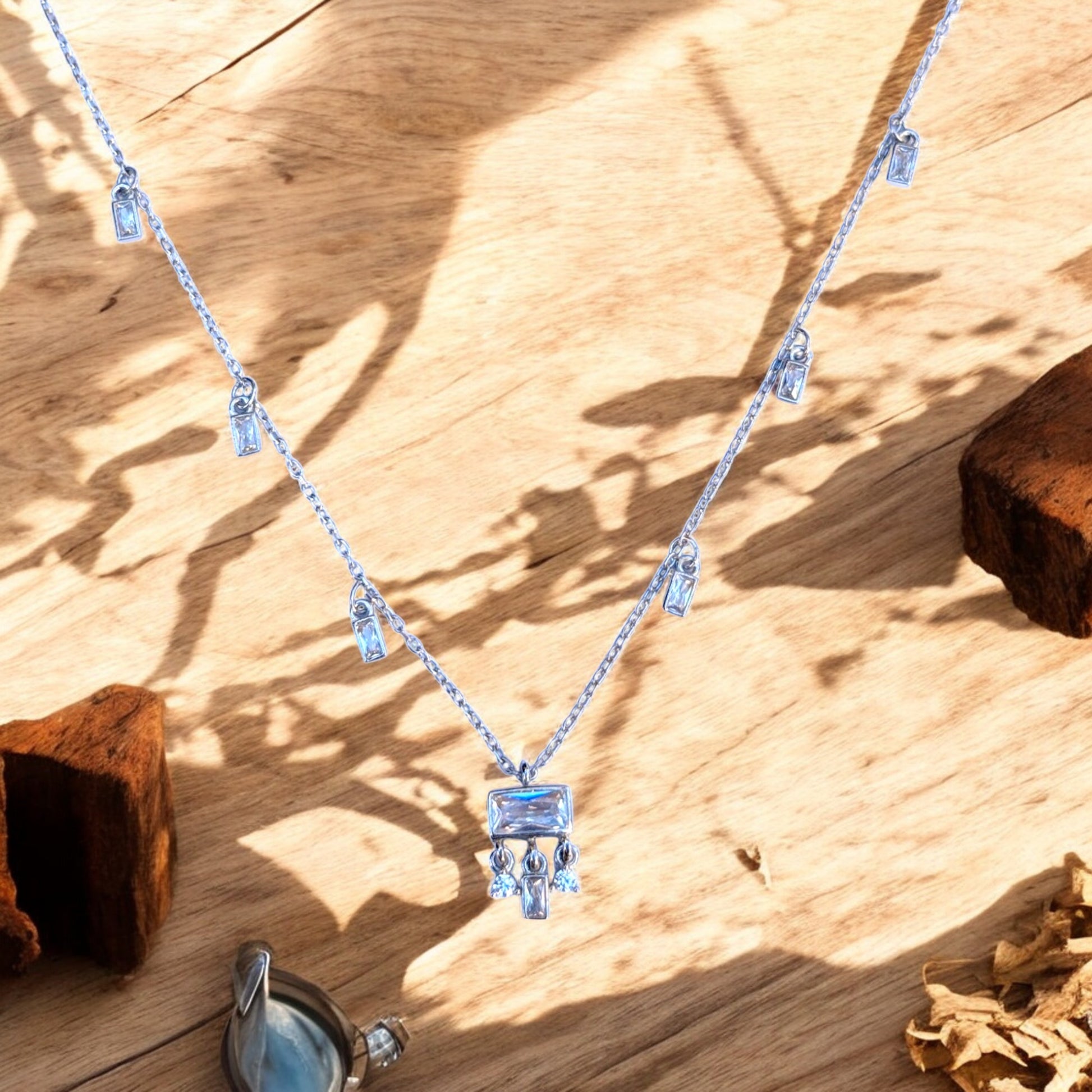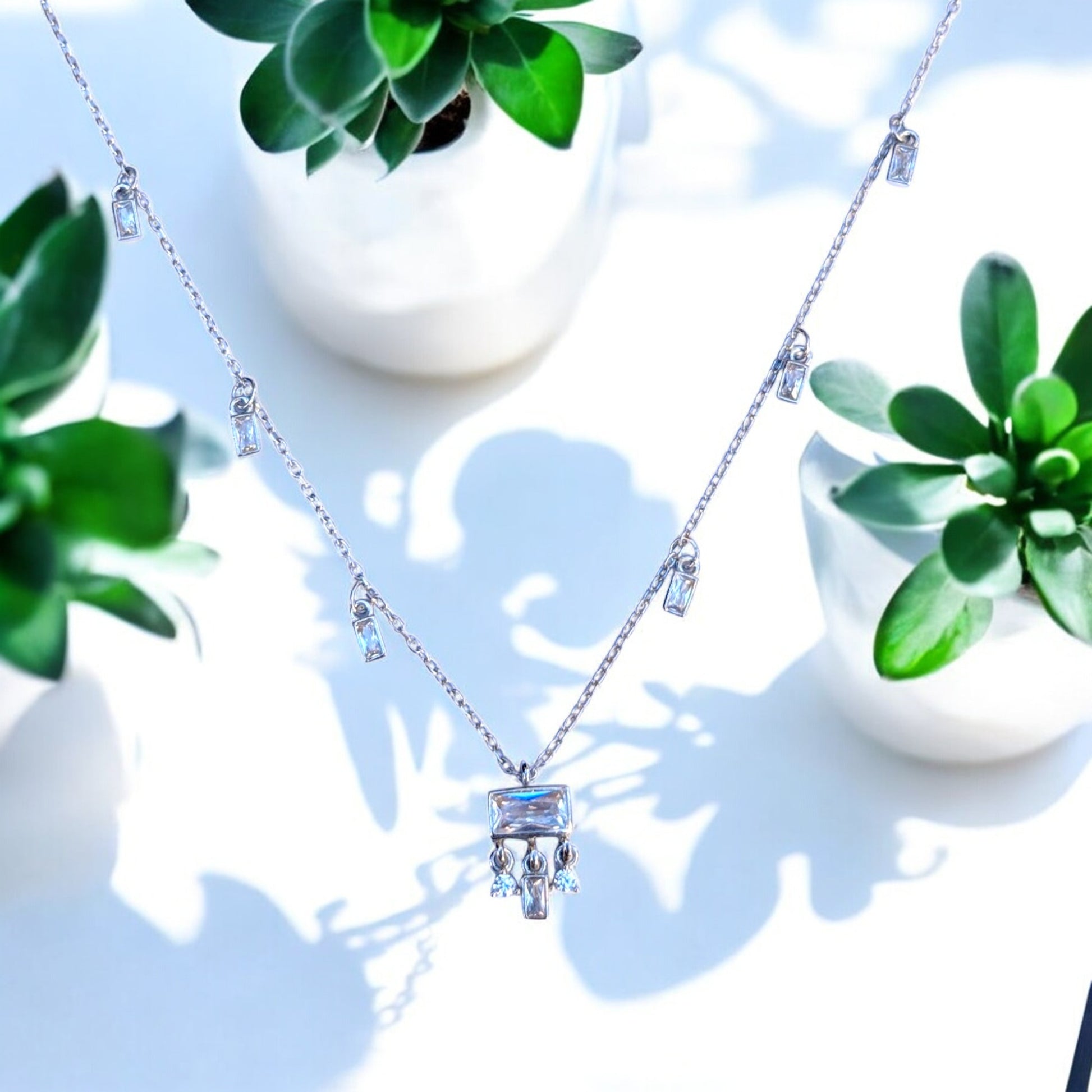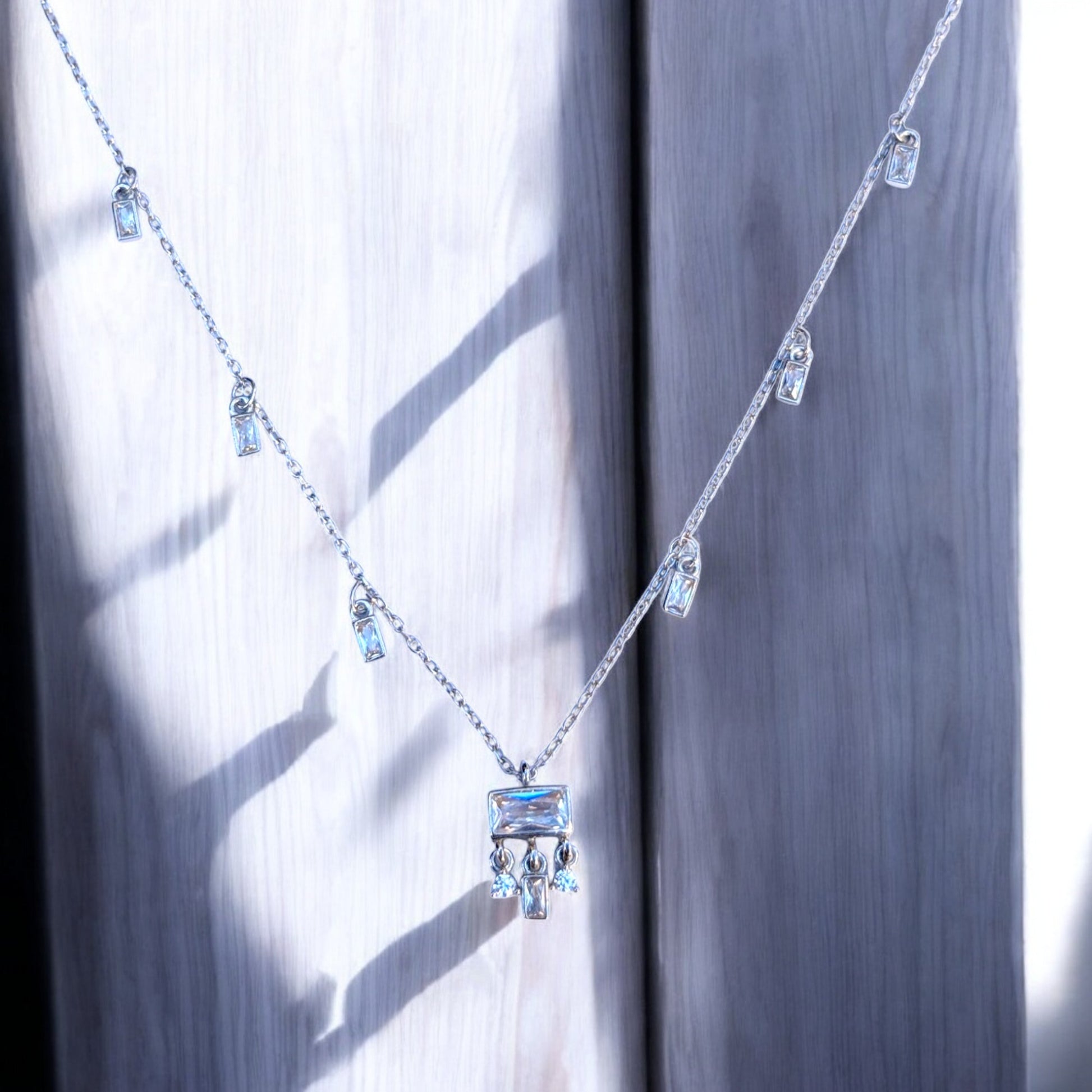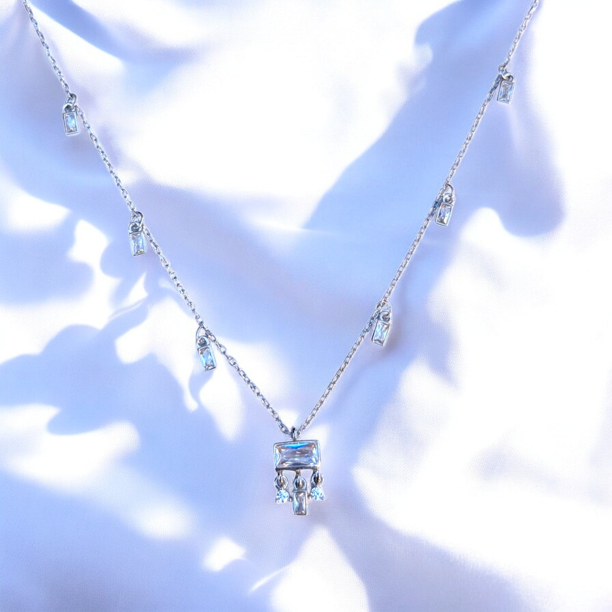 - Elegant Baguette Design – Features baguette-shaped cubic zirconia stones set in a station necklace design, offering a modern and sophisticated look.