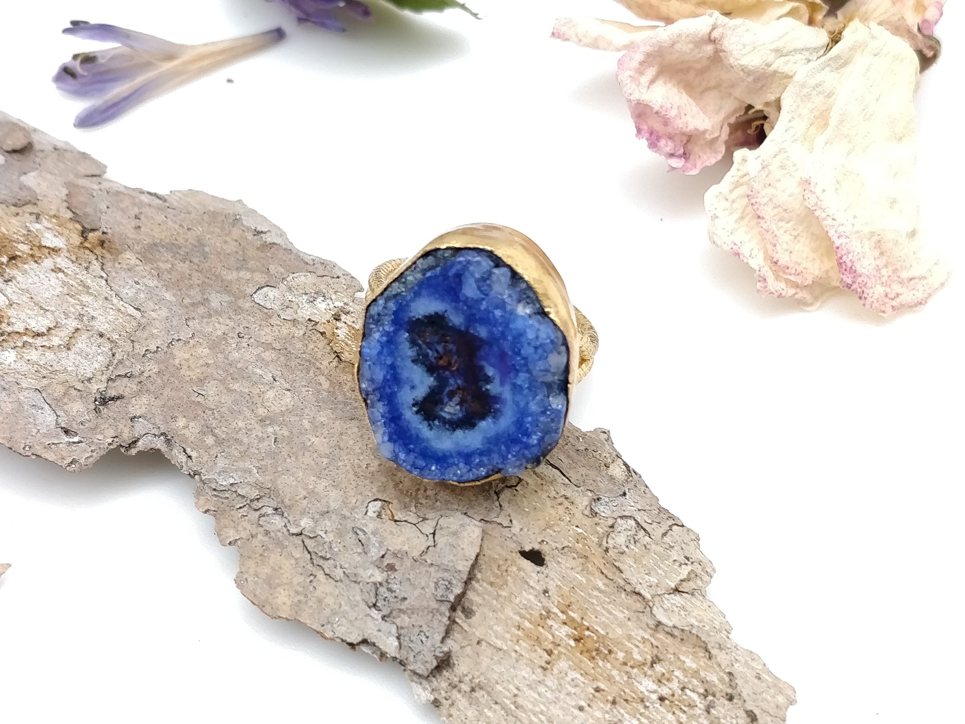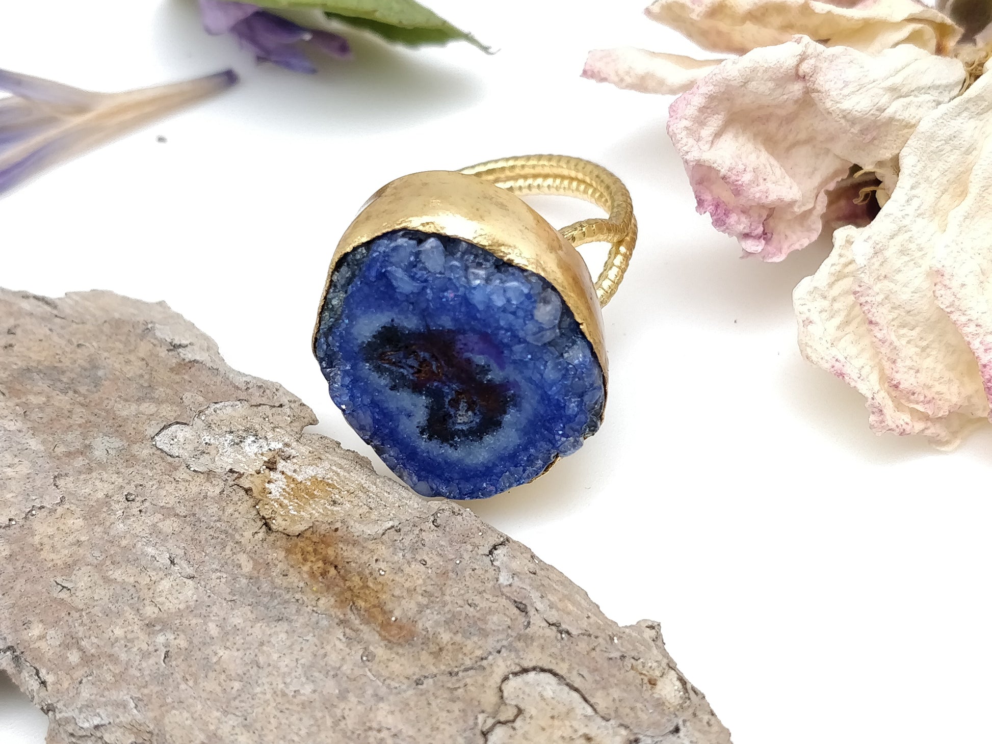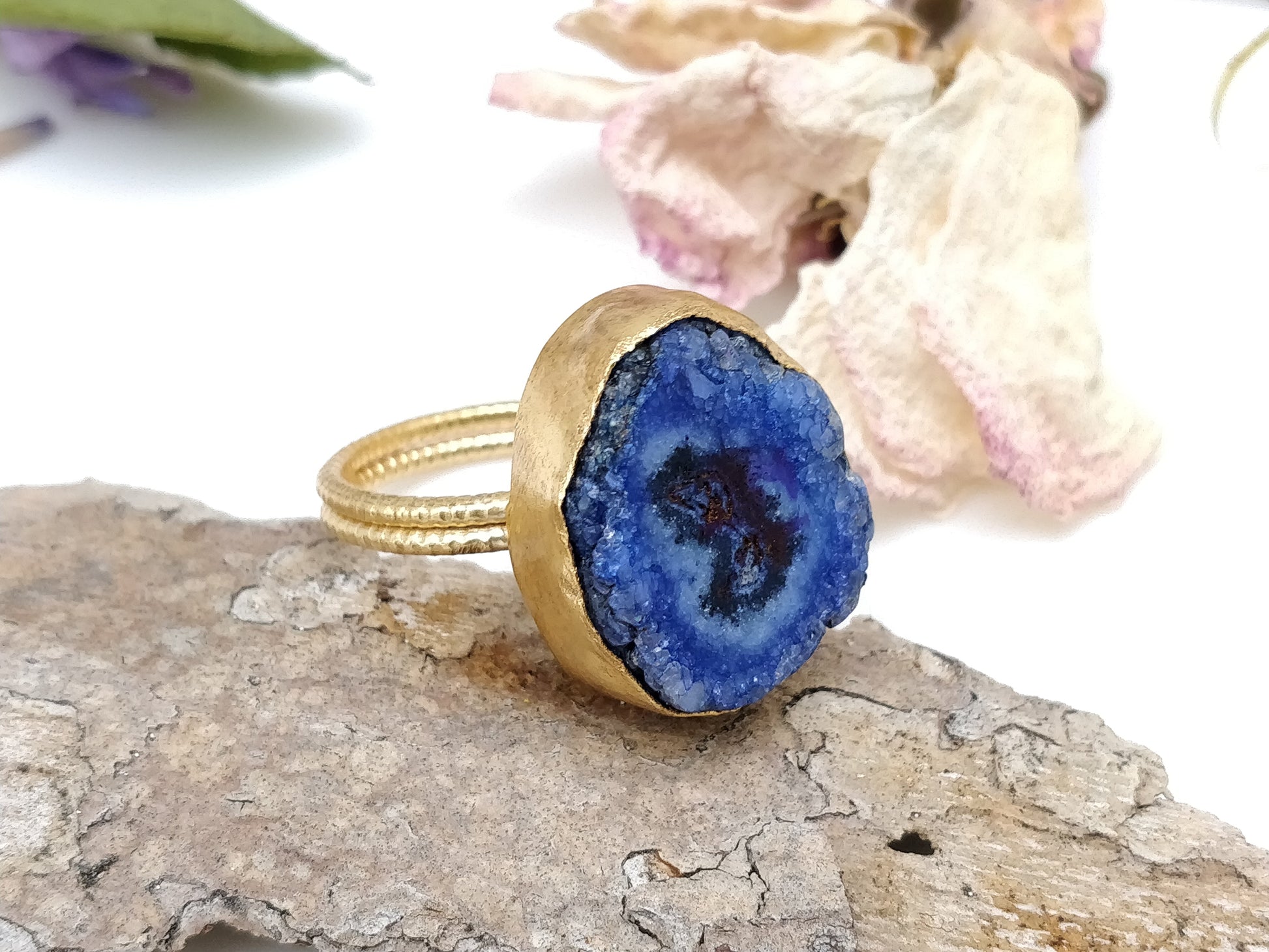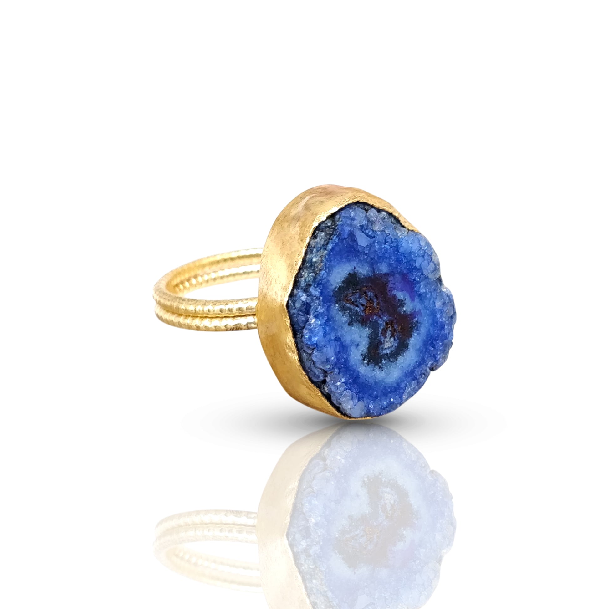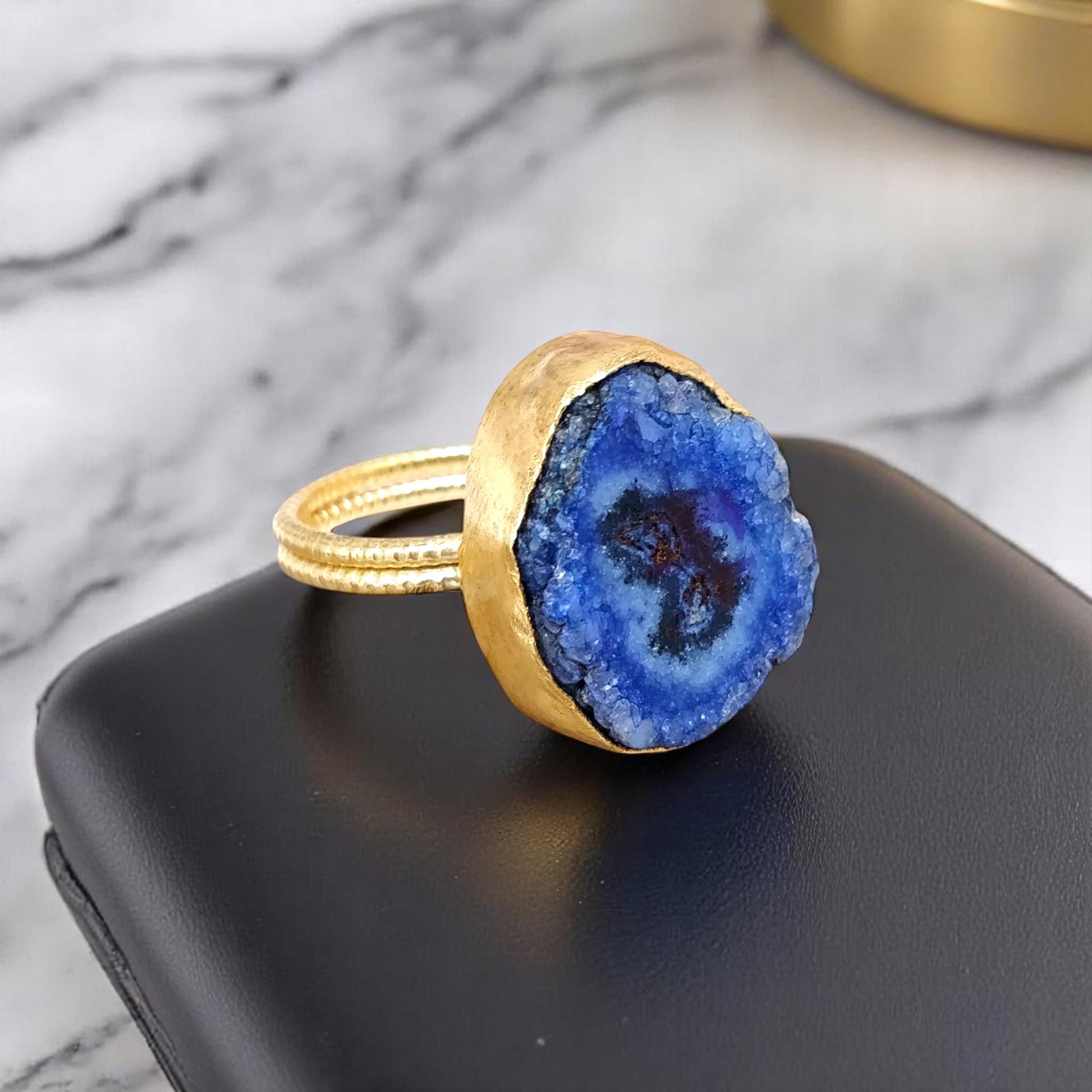 Blue Druzy Agate Gold Ring
