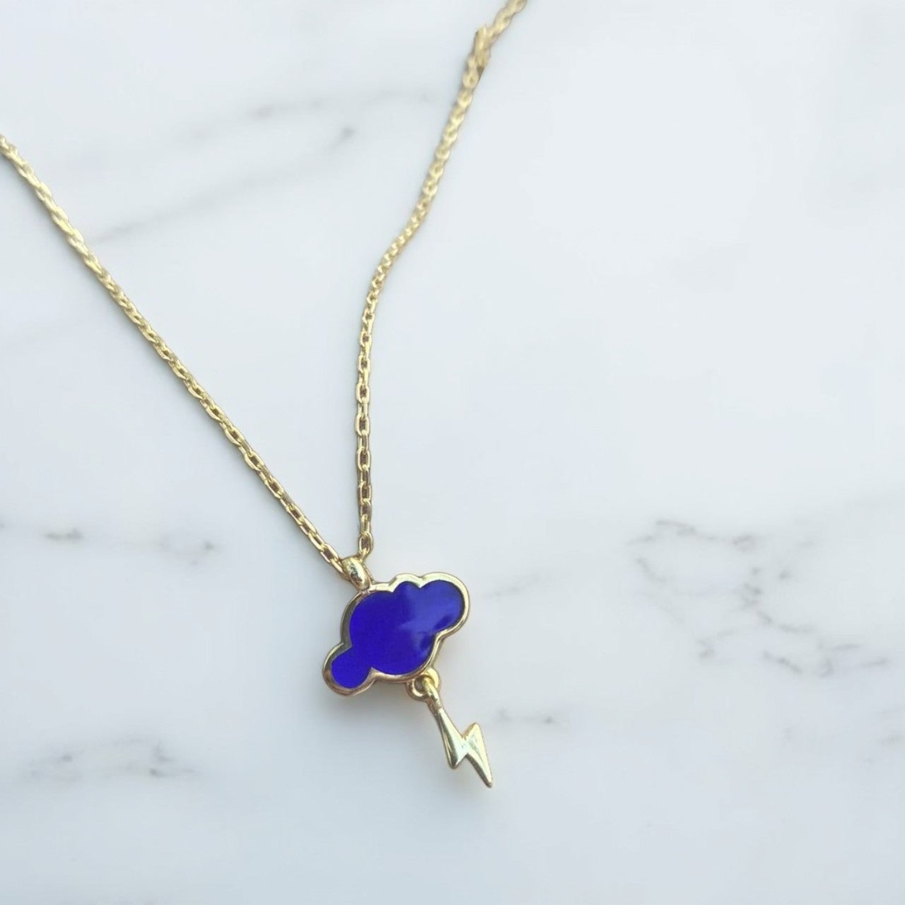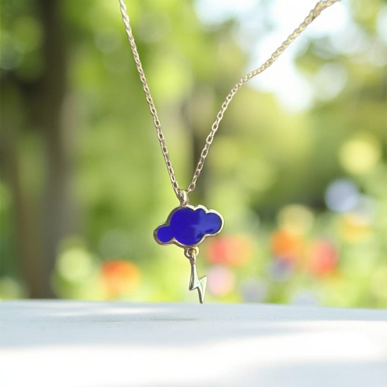 Sterling Silver necklace with blue enemal. It is gold plated over sterling silver and does not tarnish.
