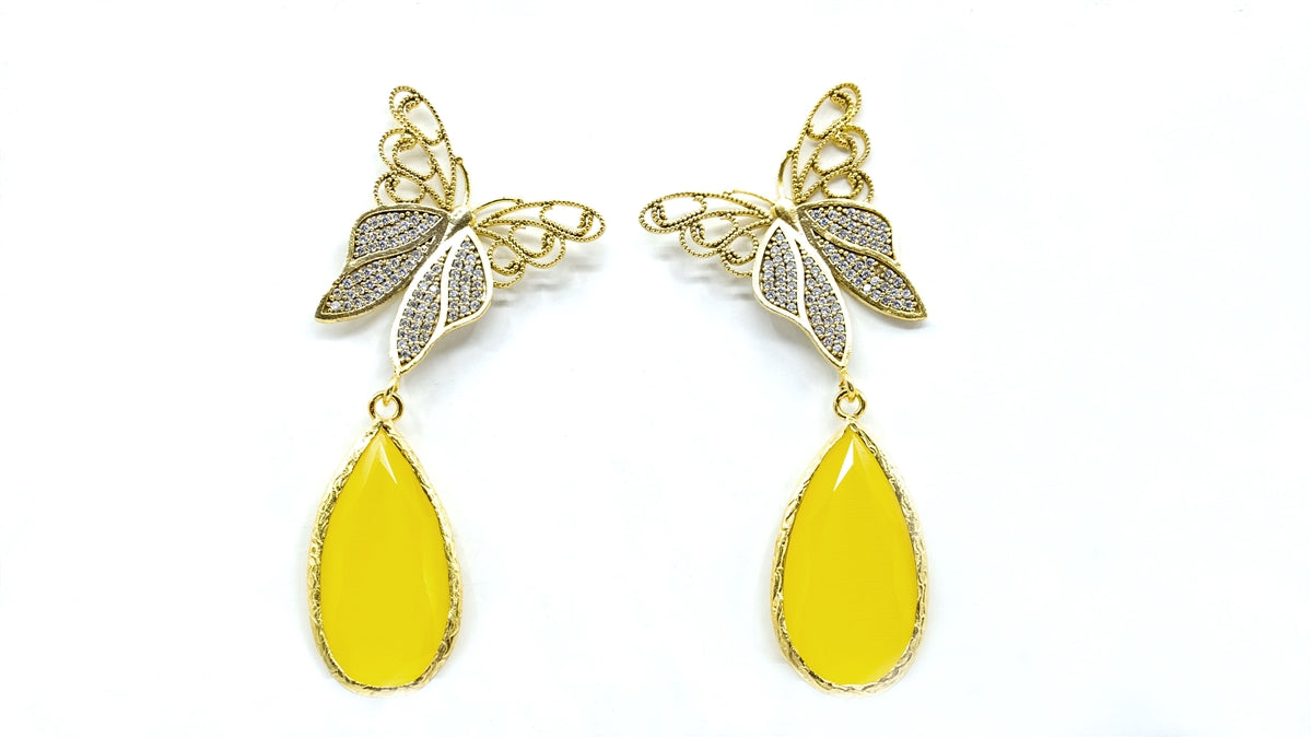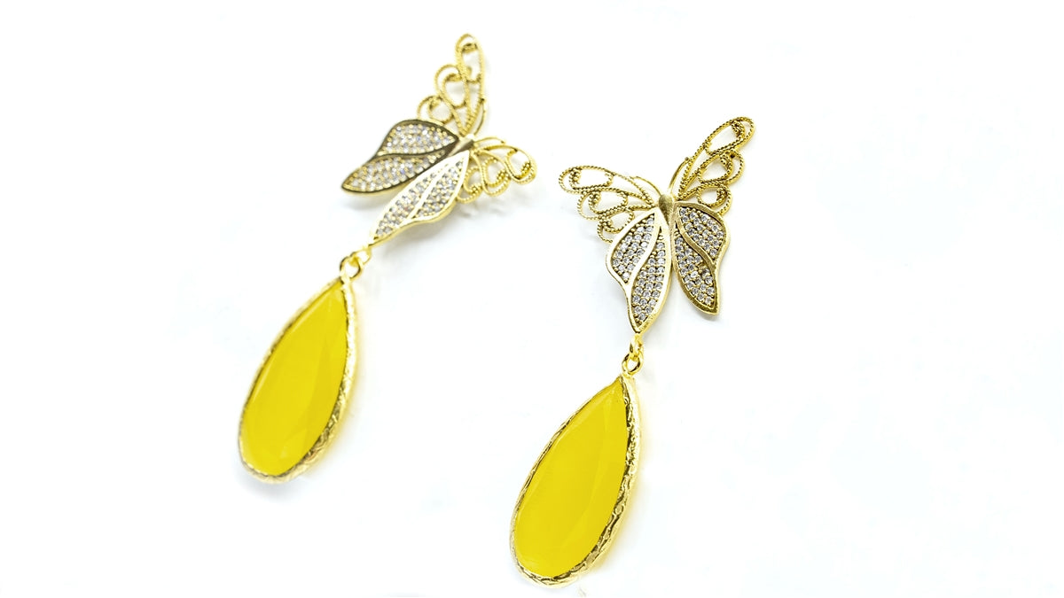 18k gold plated over brass and handmade earrings. The stone is cateye.
