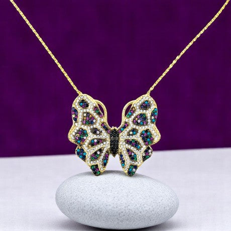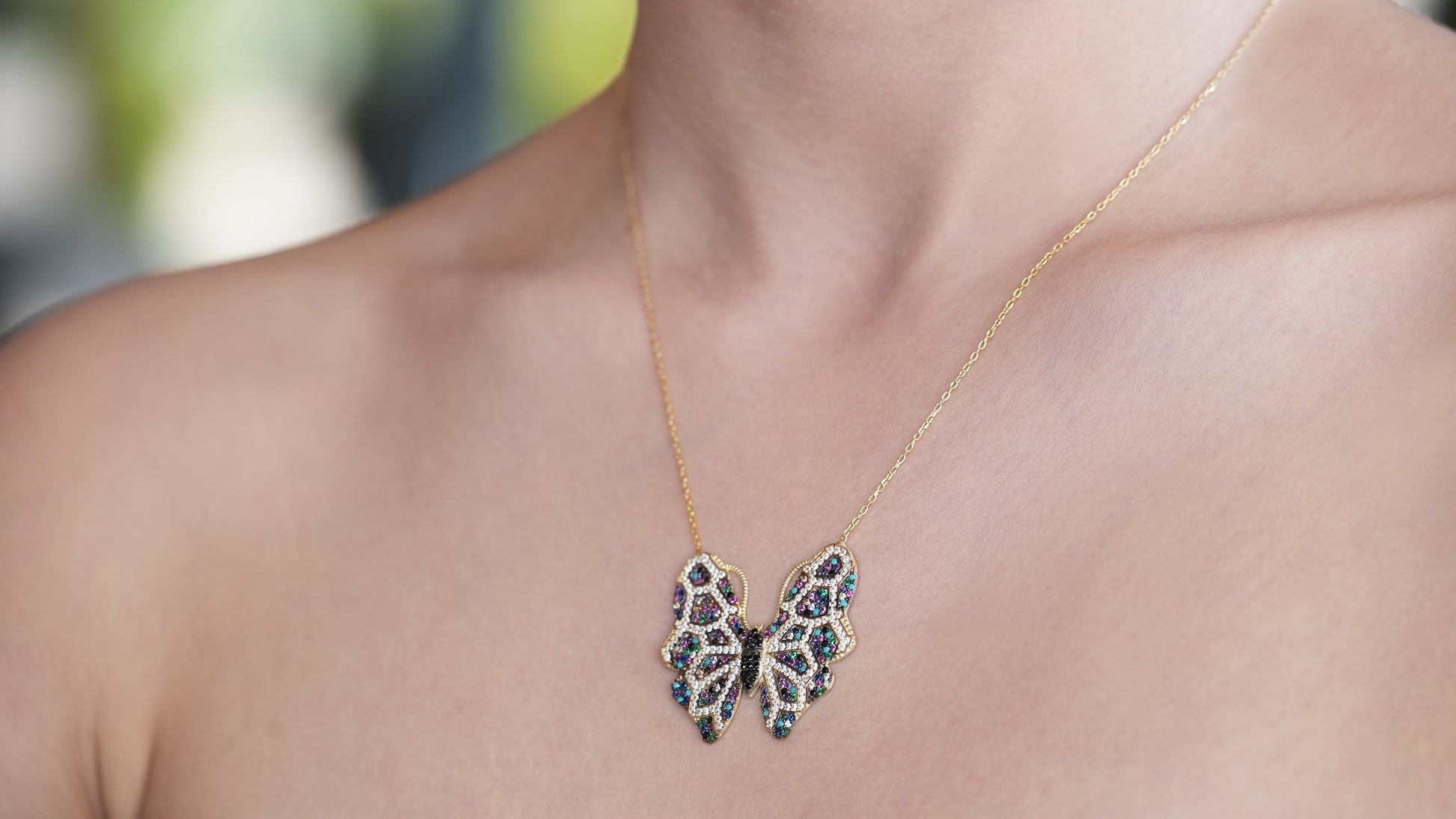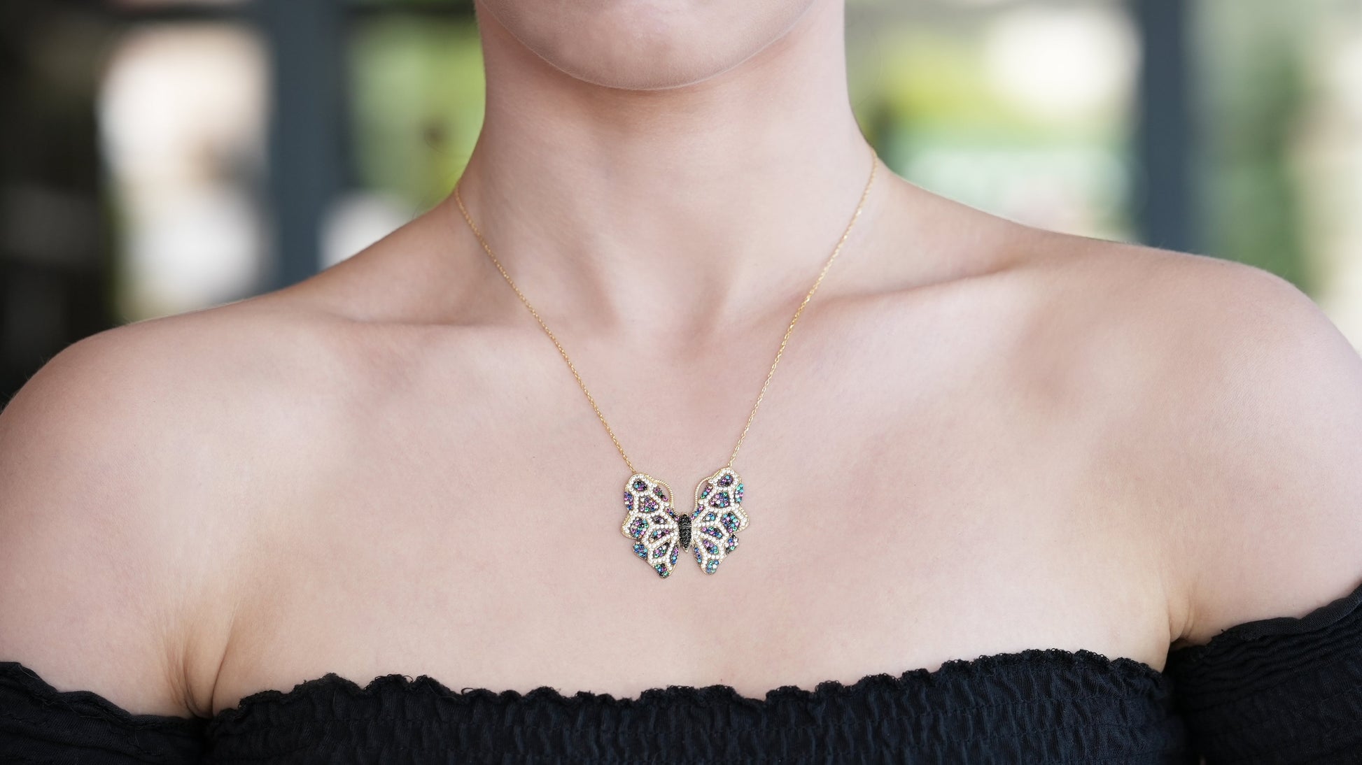 Butterfly Necklace shimmers in the light with its beautiful ombre diamonds.