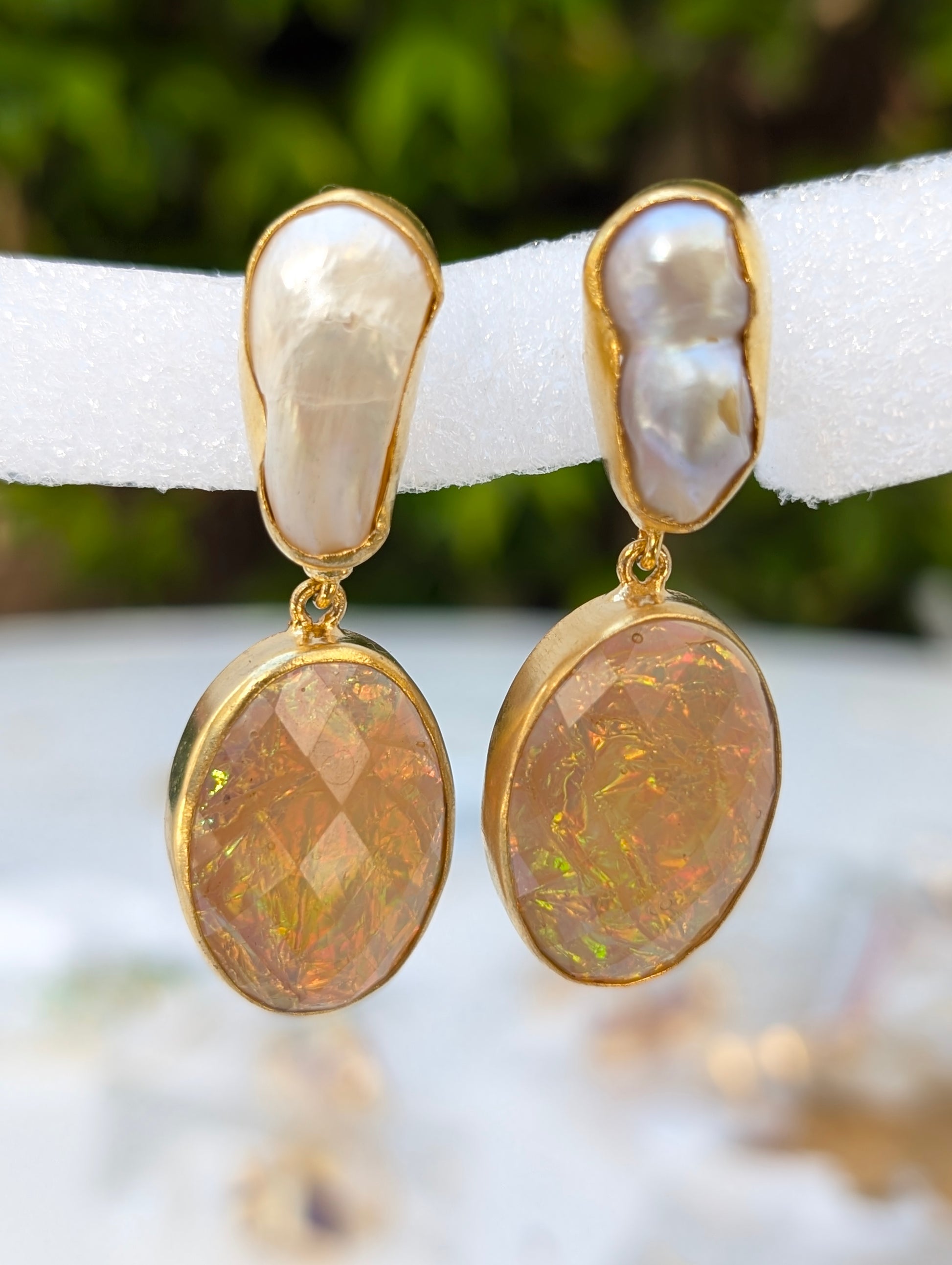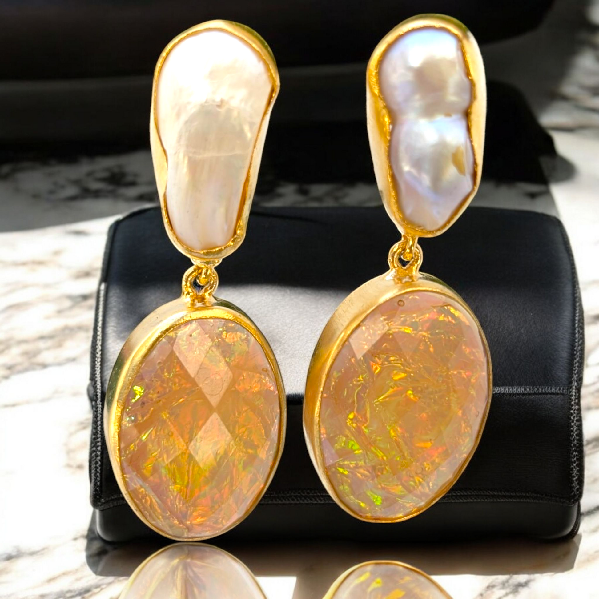 ✨ Materials: Gold-plated brass with genuine pearls and high-quality CZ glass stones