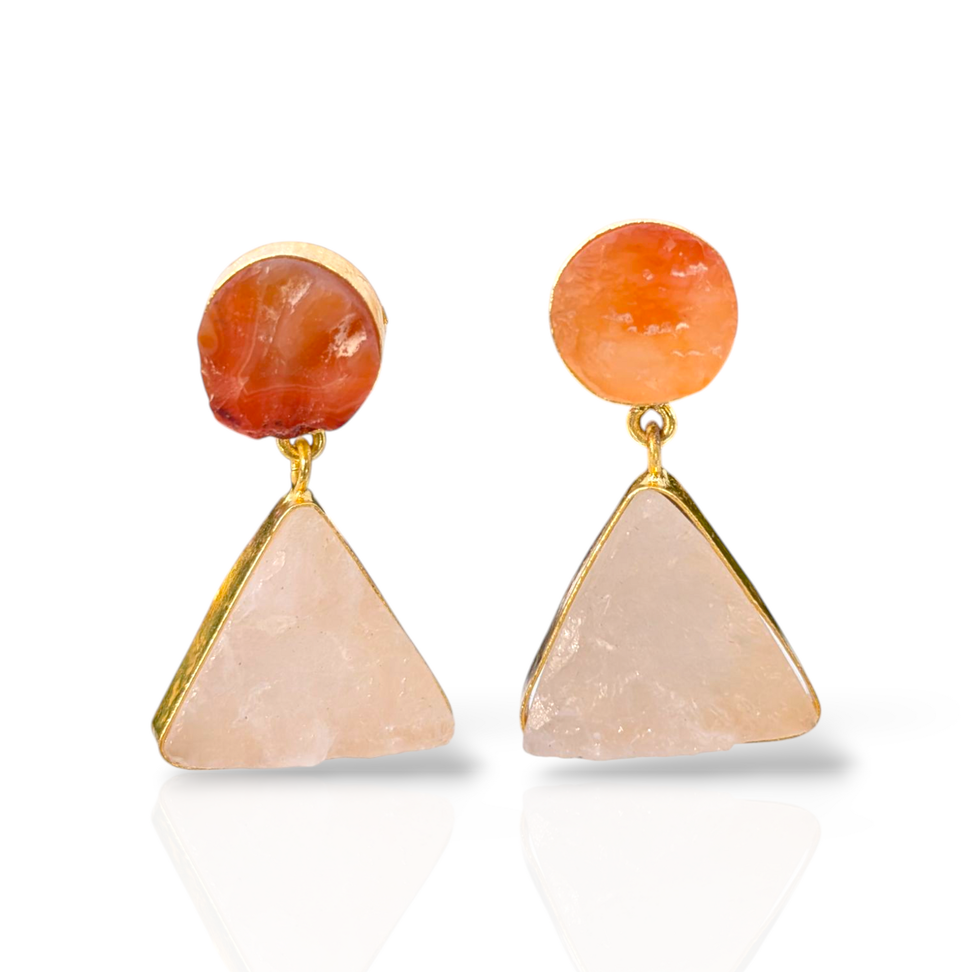 Add a touch of natural elegance to your jewelry collection with these stunning handmade gold-plated earrings, featuring rough-cut rose quartz and carnelian stones. Crafted with care in Turkey, each pair showcases the raw beauty of natural gemstones, set in lustrous gold-plated brass for a luxurious finish.