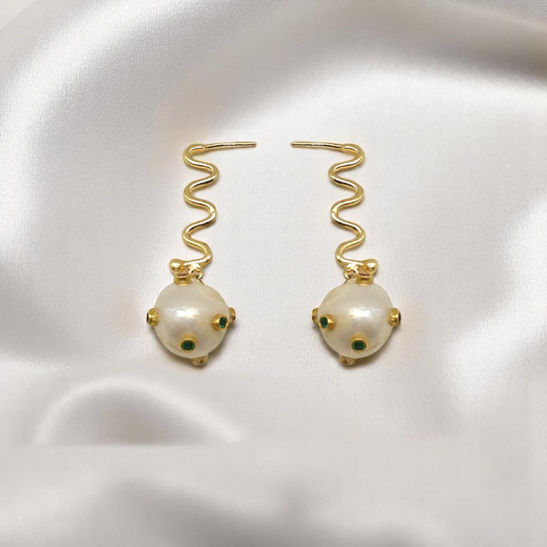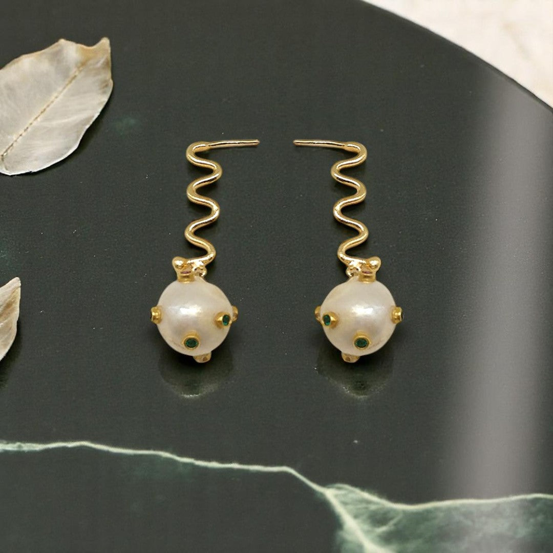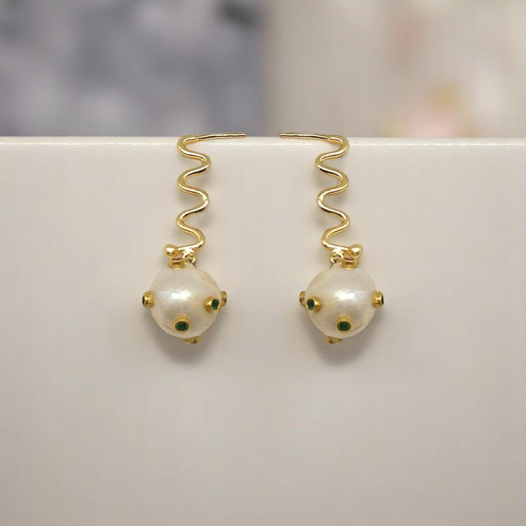 Aurora Fancy Pearl Ball Gold Earrings