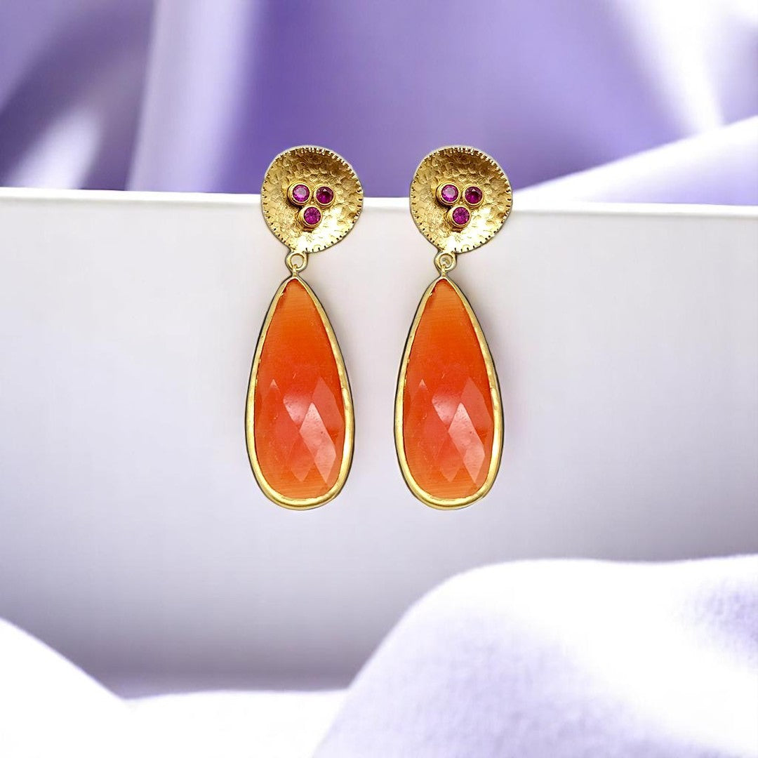 Zeyzey's AURORA, 24k Gold plated. Semi Precious earrings are hand made