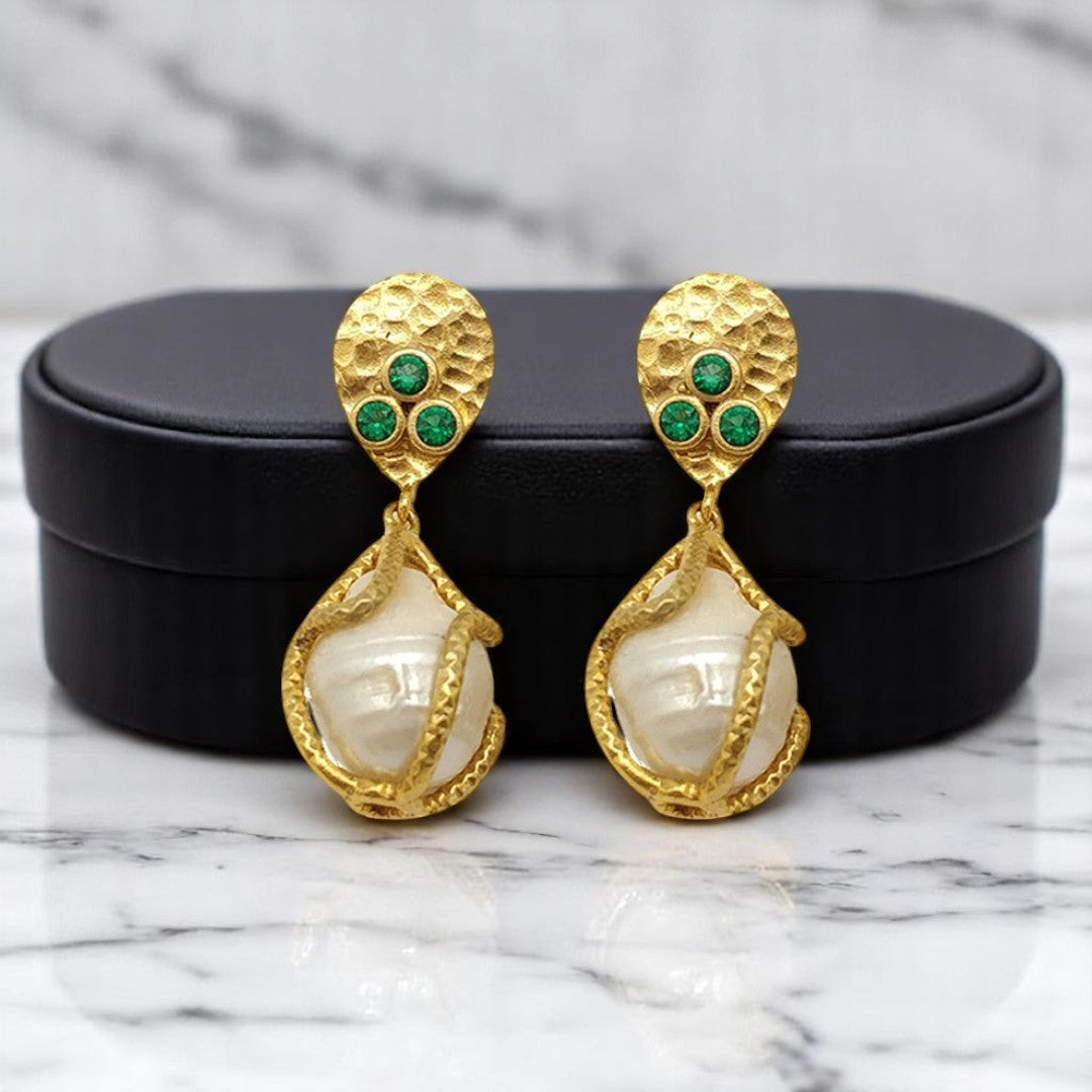 Zeyzey's AURORA, 24k Gold plated. Semi Precious earrings are hand made