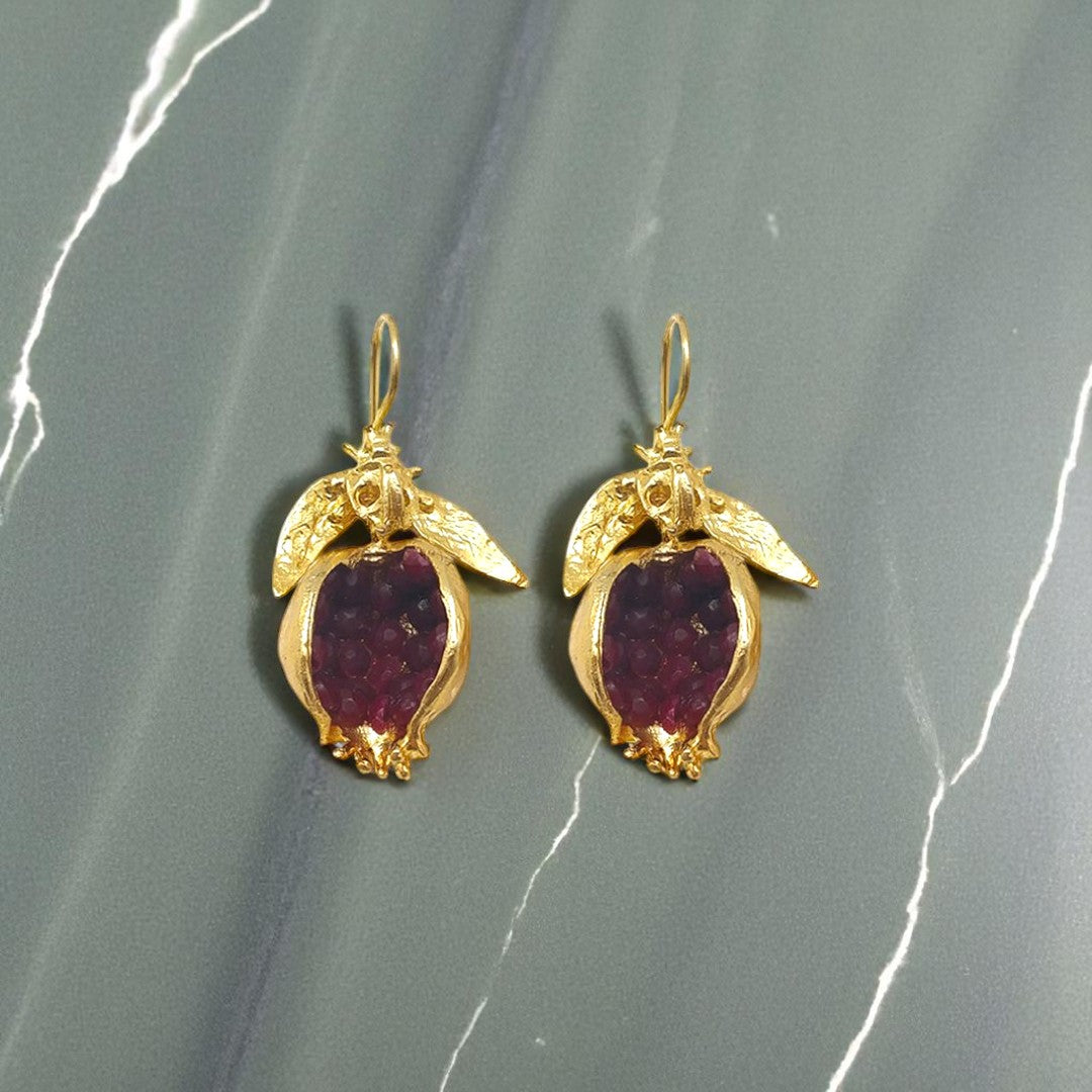 Zeyzey's AURORA, 24k Gold plated. Semi Precious earrings are hand made