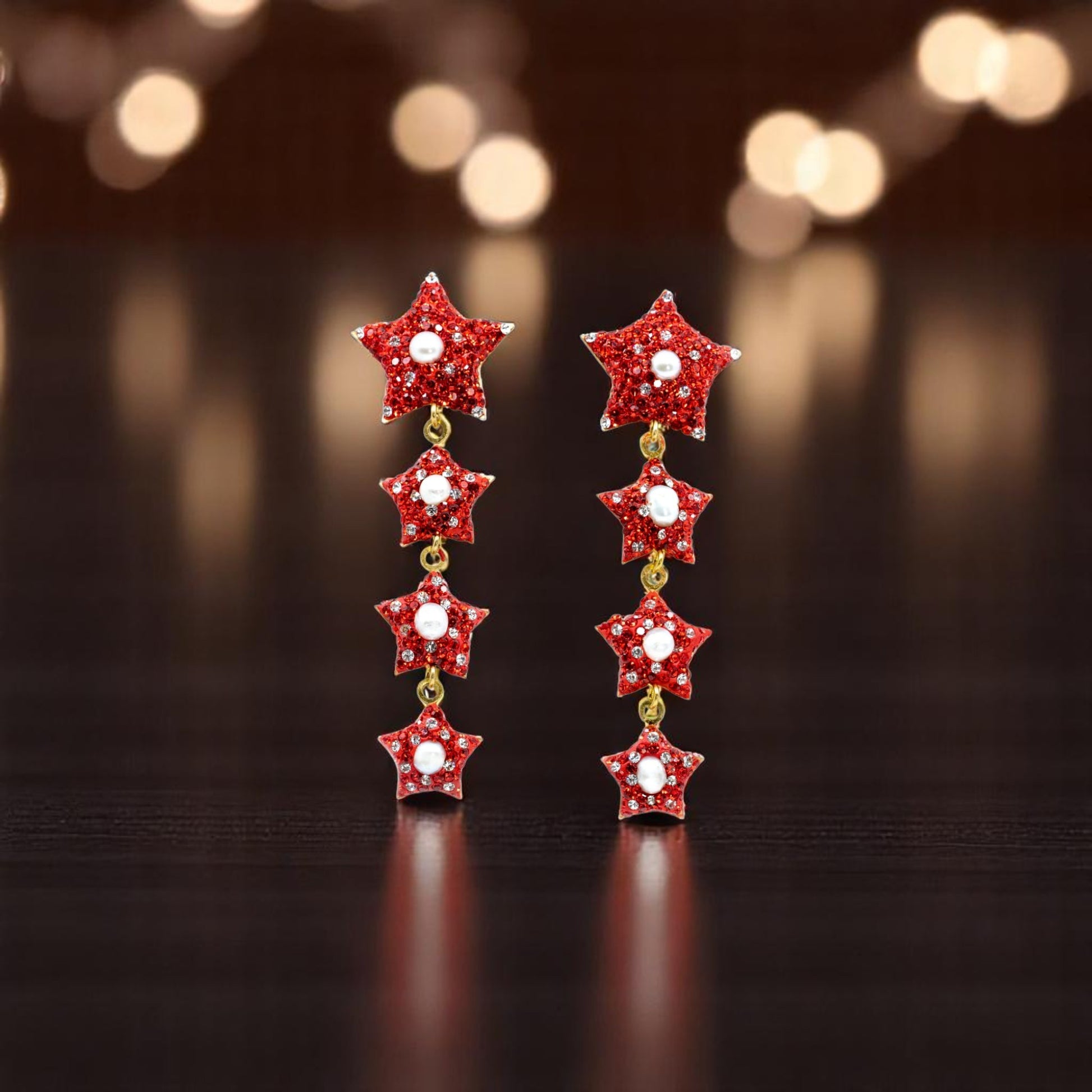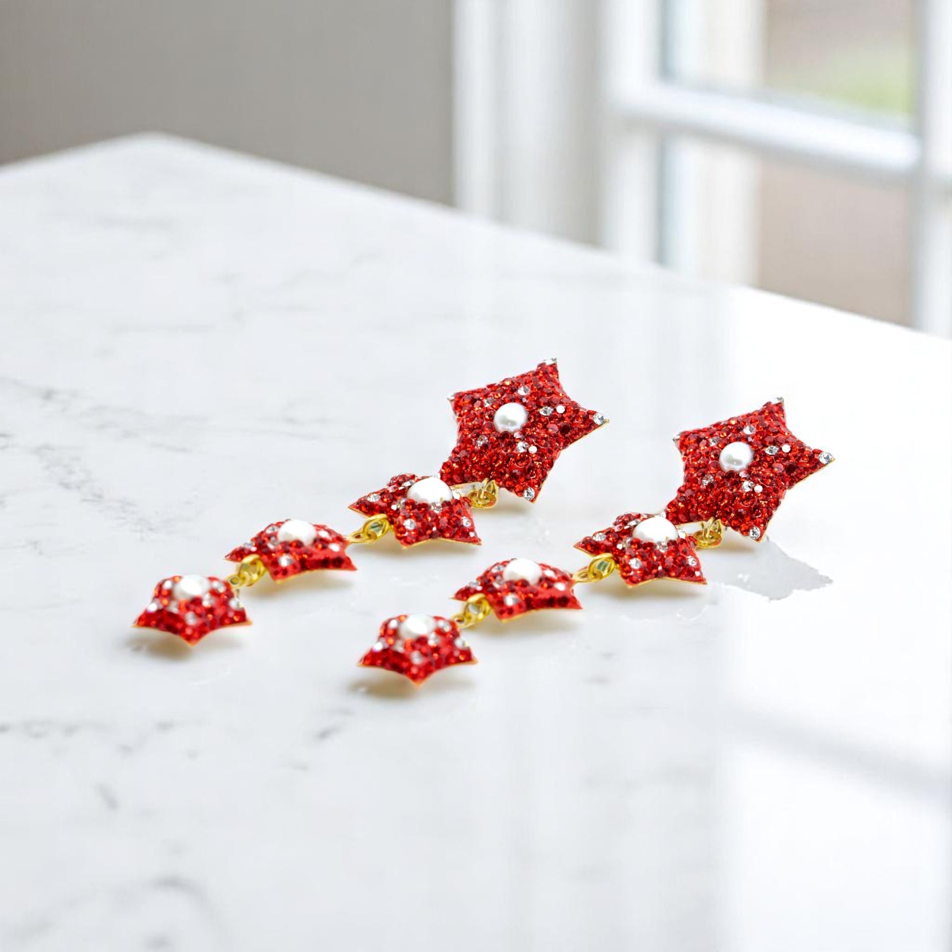 Beyaz İncili Dört Parçalı Sarkan Yıldız Kolye
