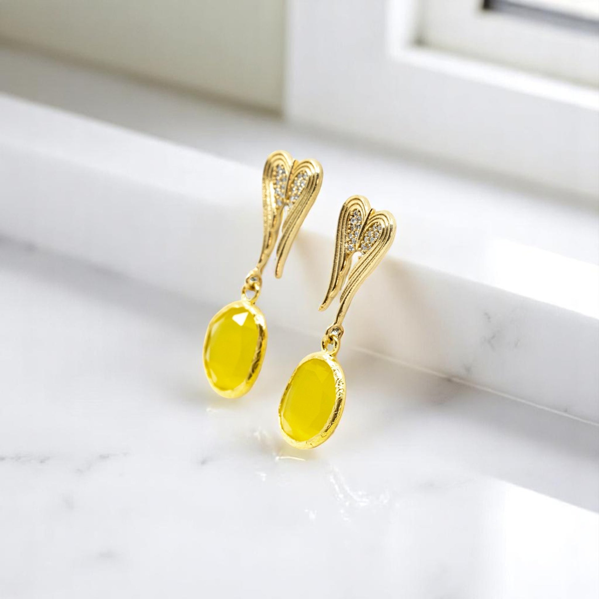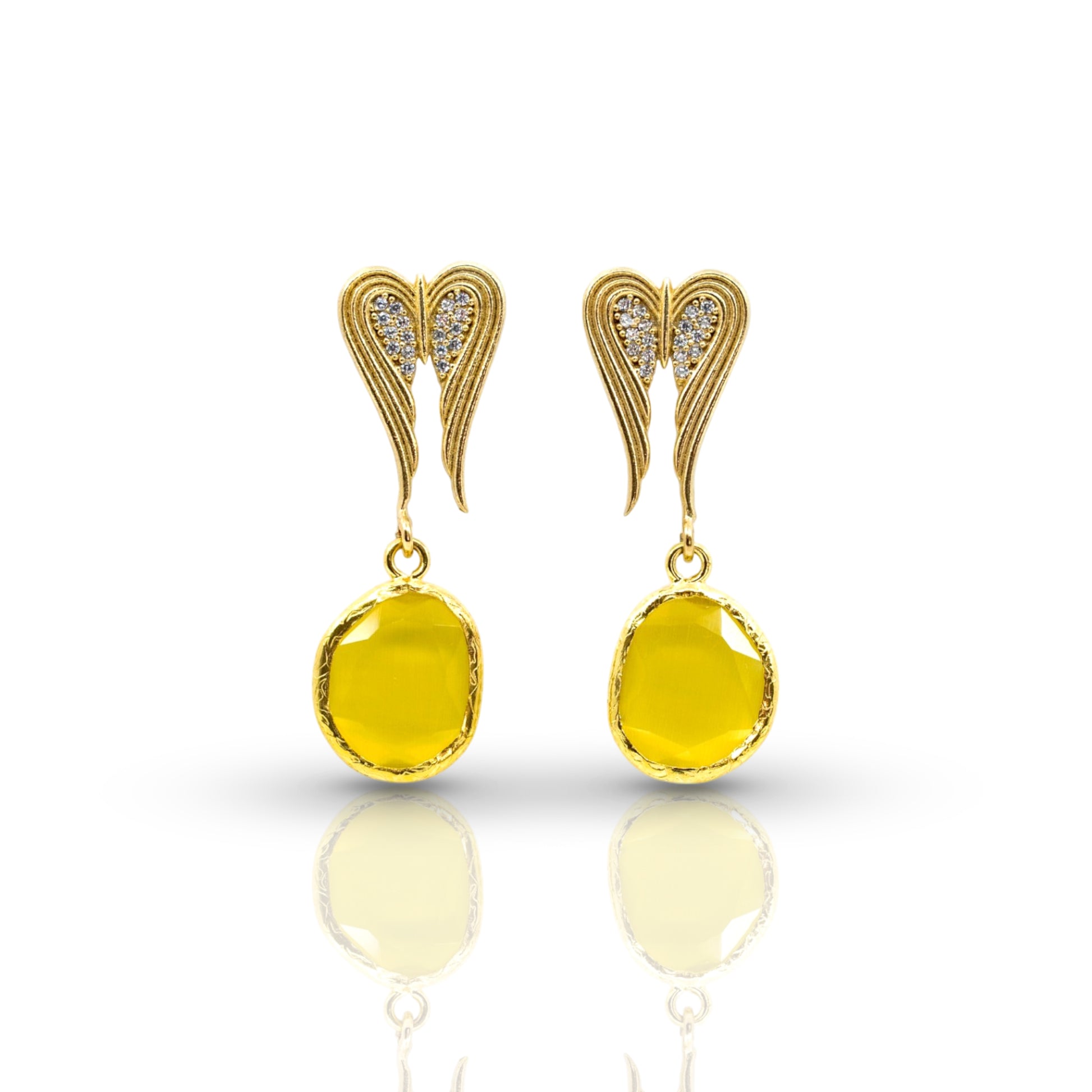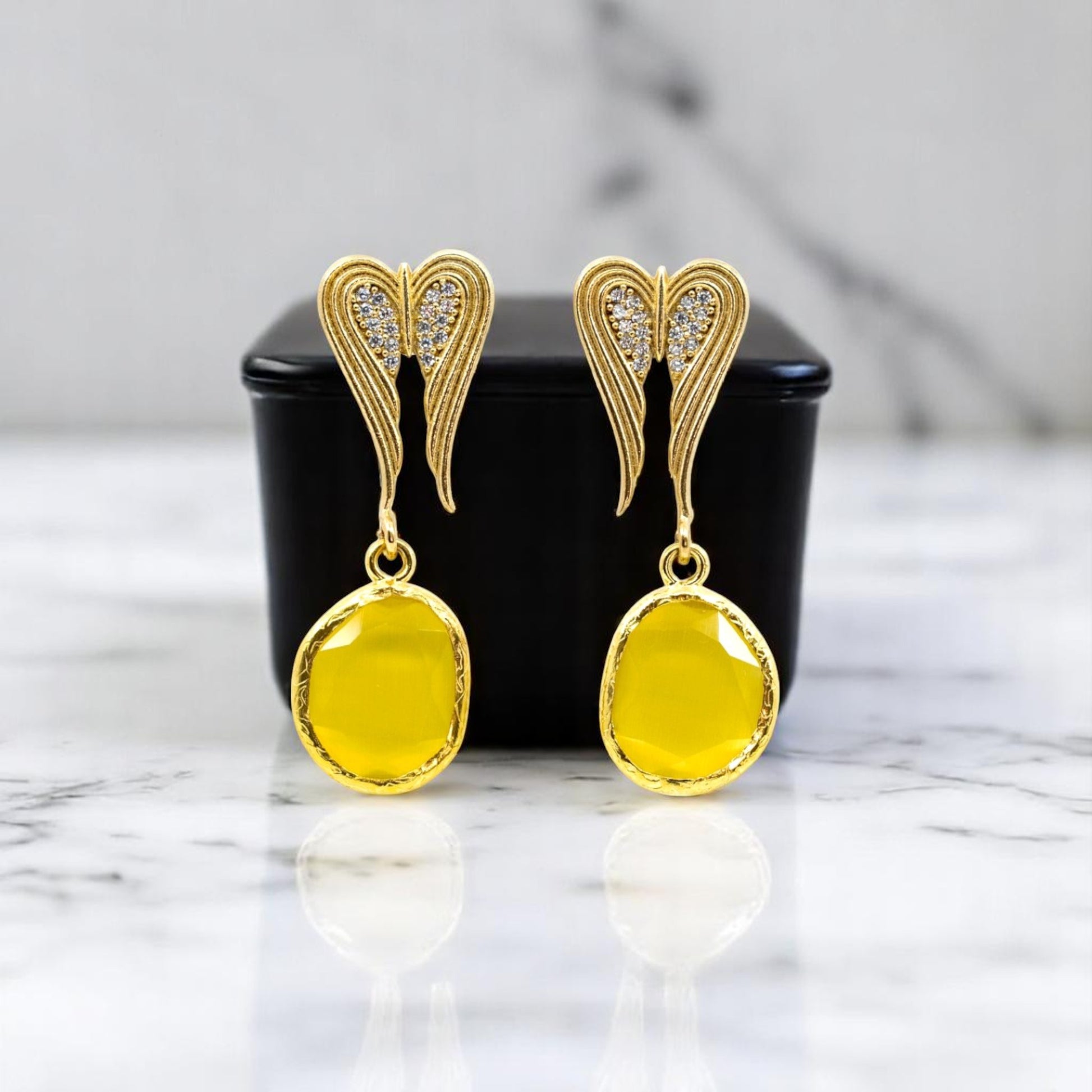 Beautiful Dangling Earring With Gold Heat Cz Diamonds and Yellow Oval Stone