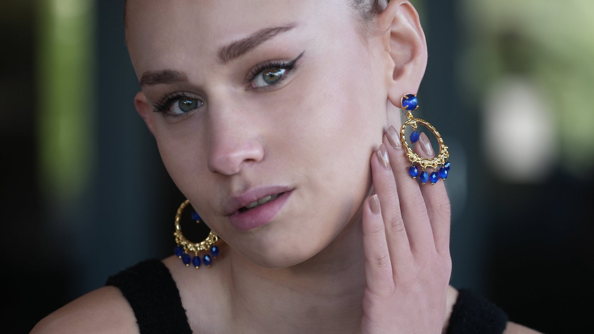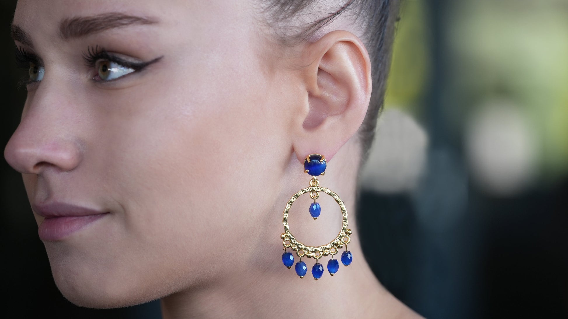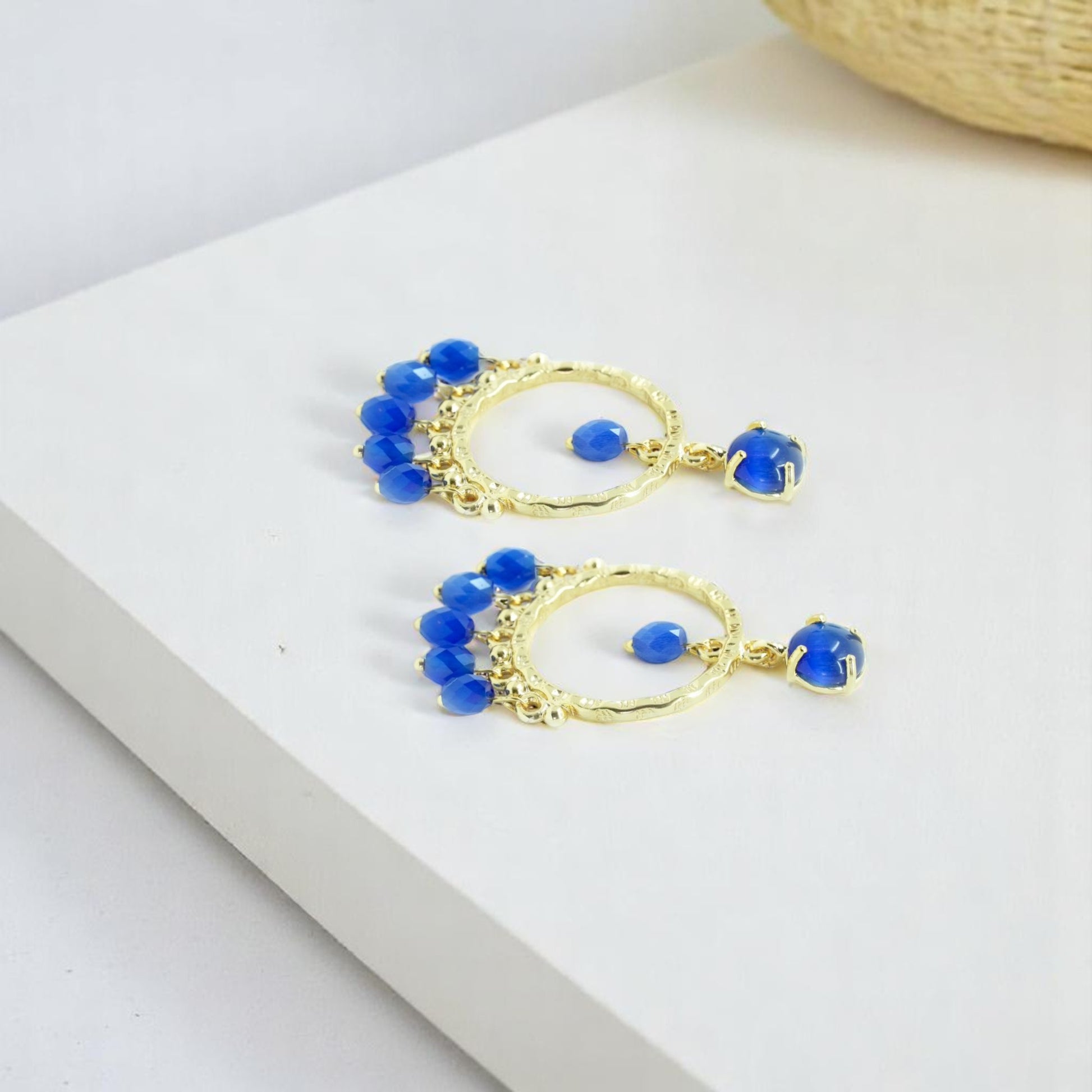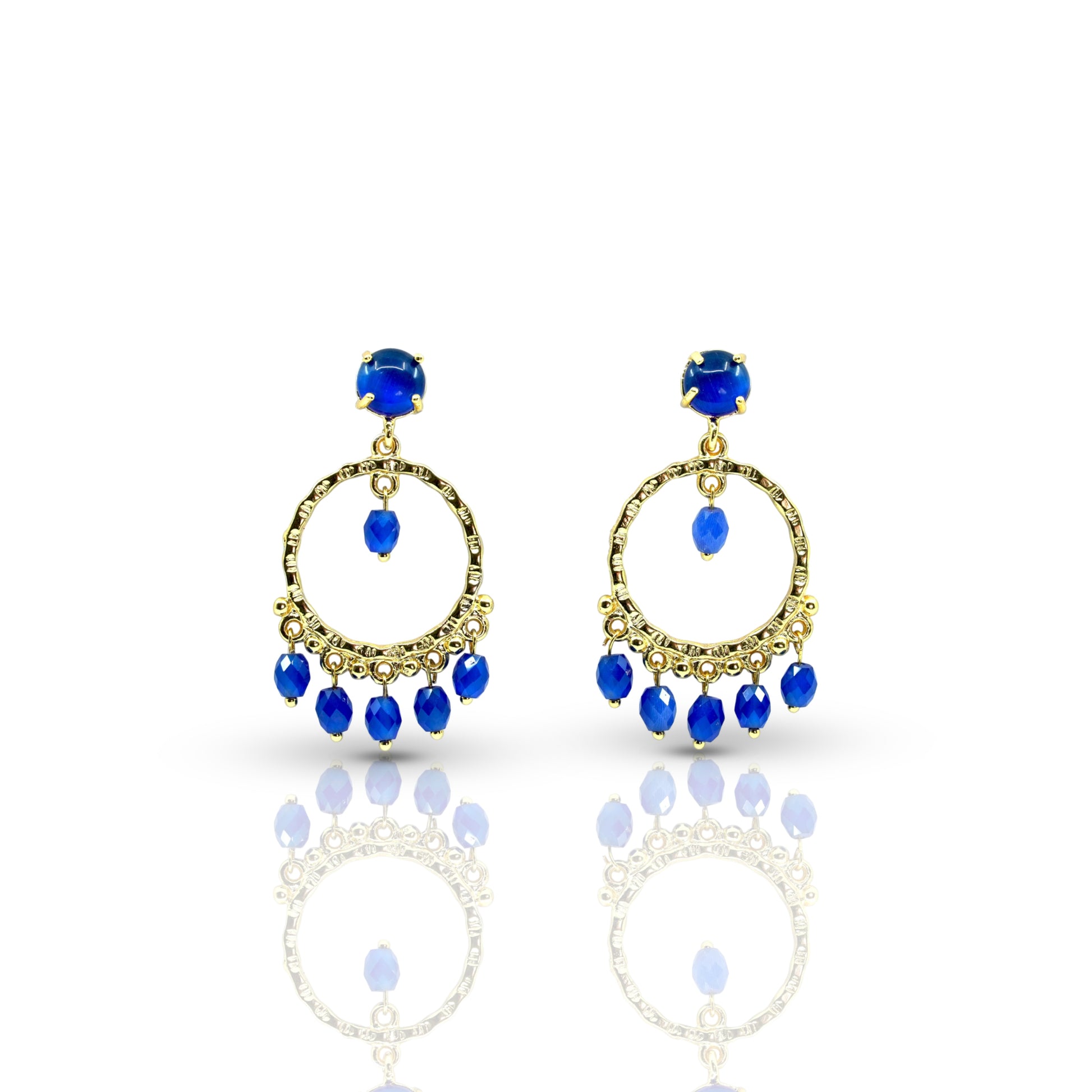 Dangling Hoop Earring with Blue stones