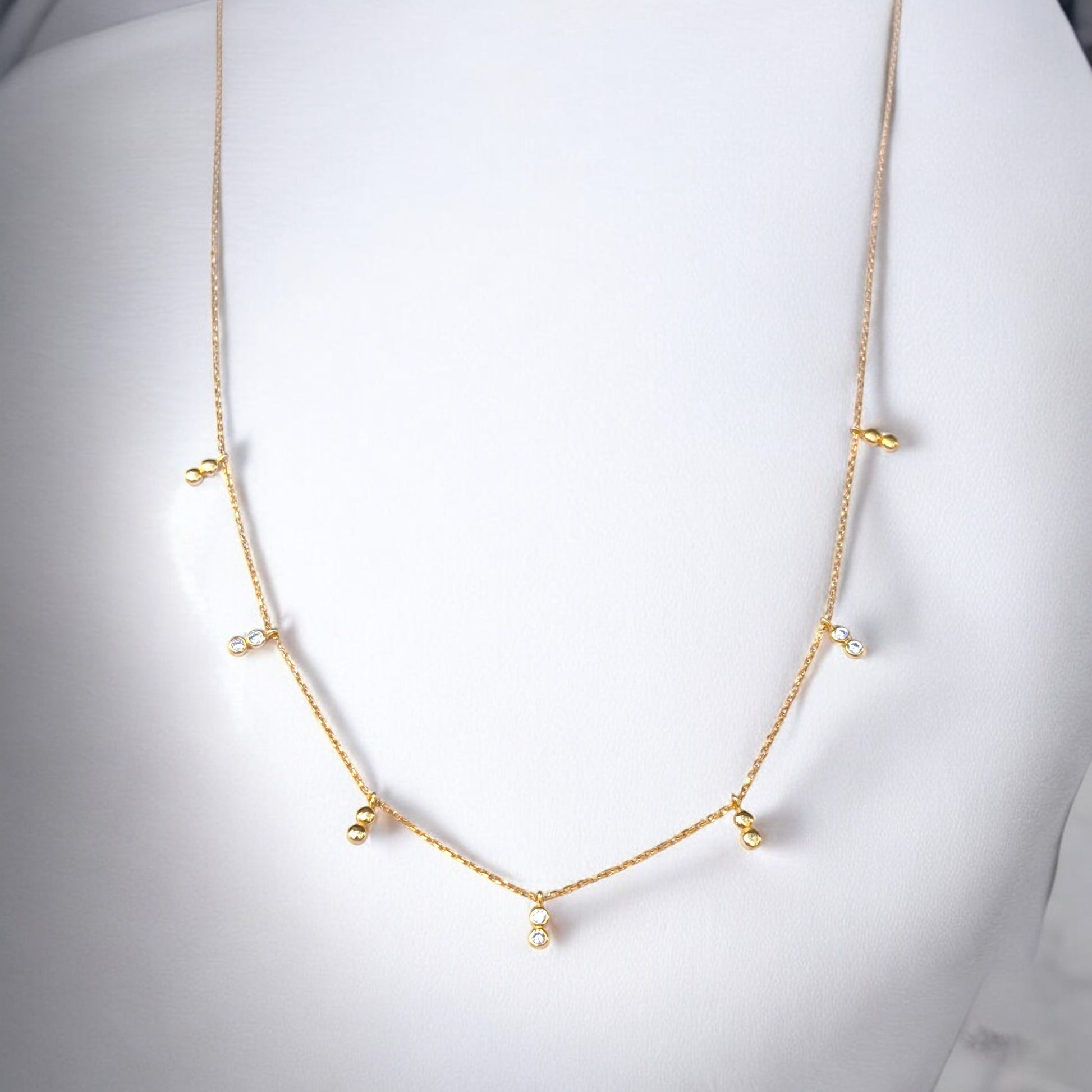 Delicate Gold Necklace – Minimalist Bezel-Set CZ Accents