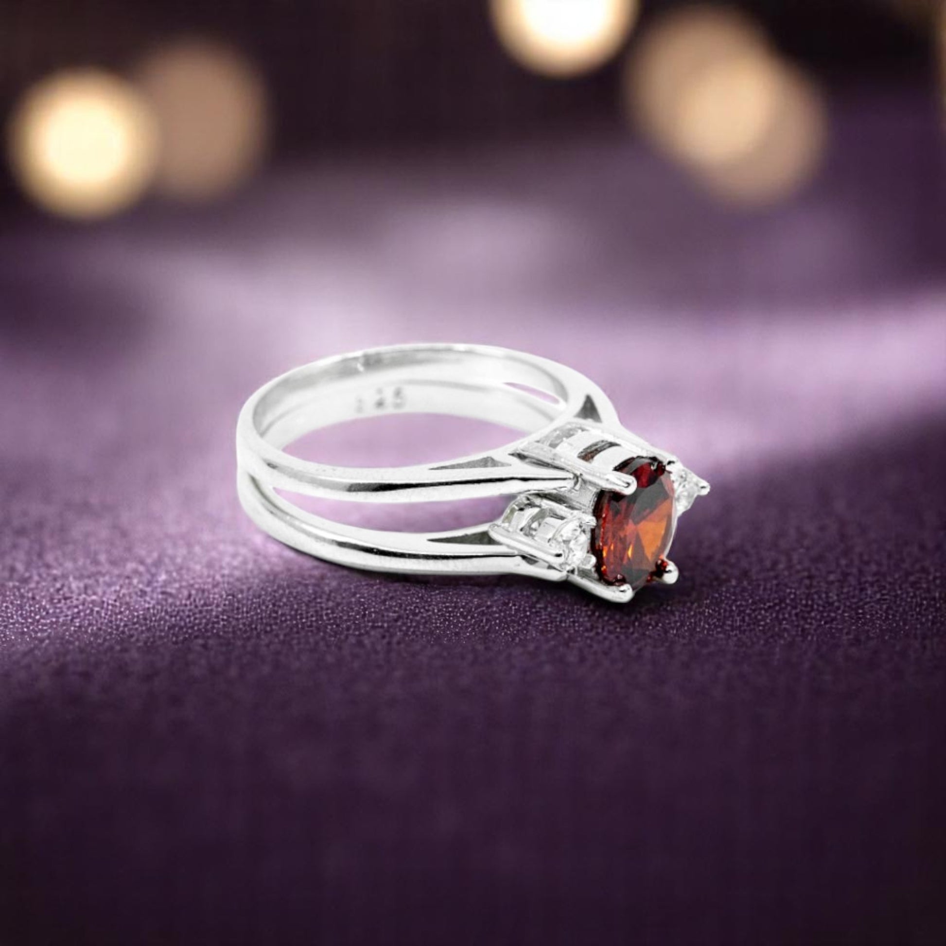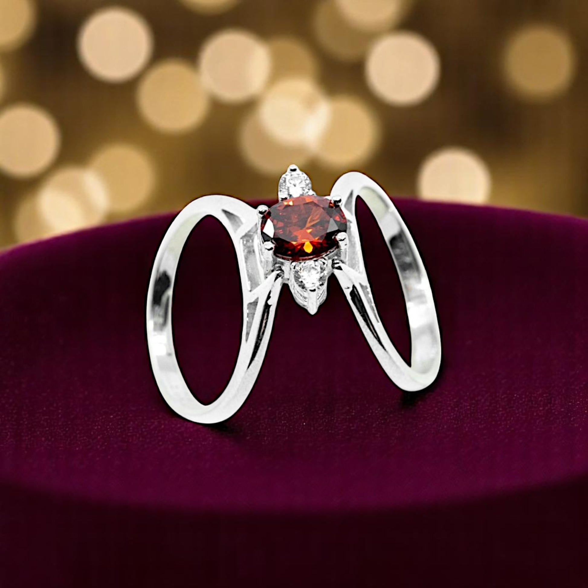 Yakut Taşlı Muhteşem Çift Yüzük her durum için mükemmel bir uyumdur. Bir tarafı yakut, diğer tarafı şeffaf cz'dir.