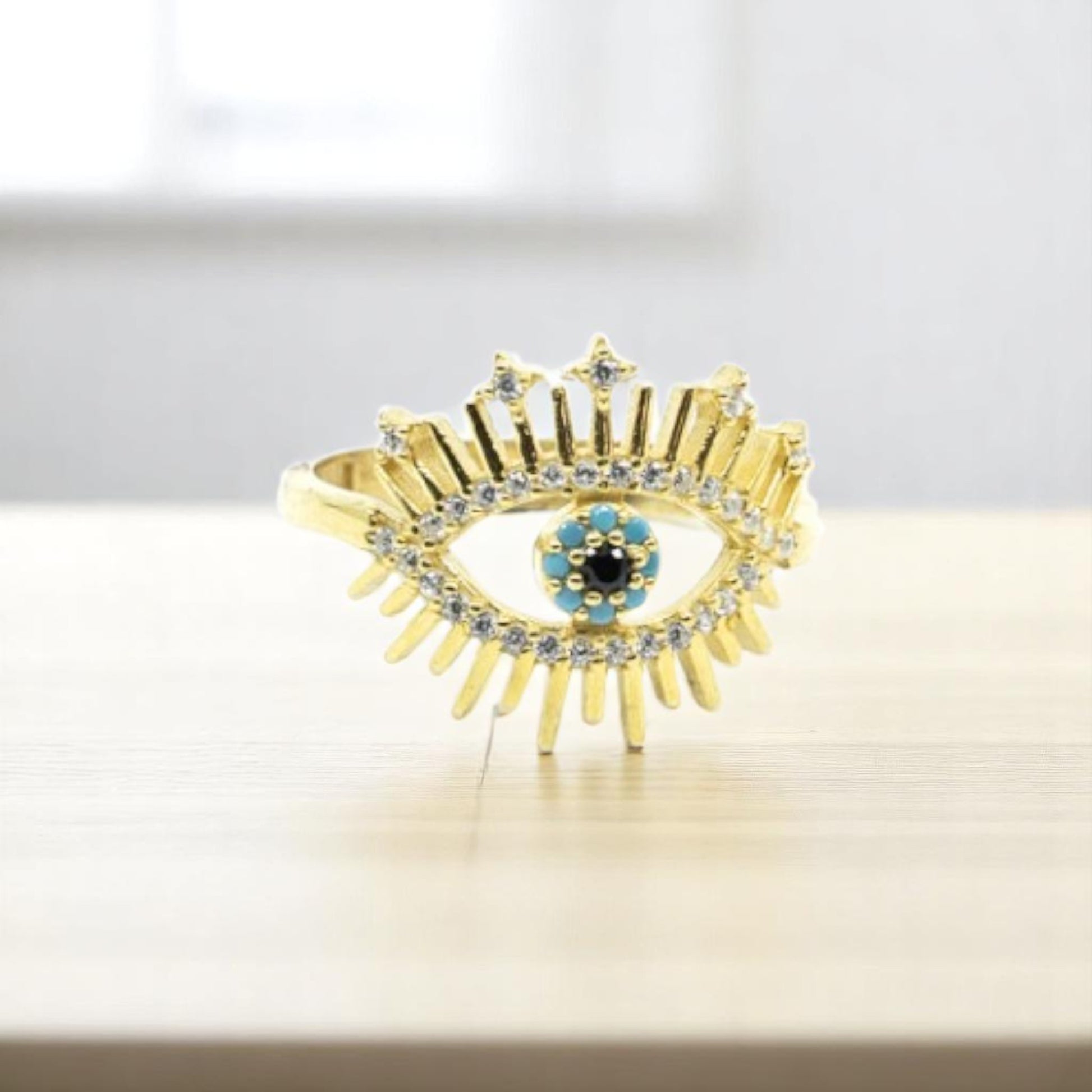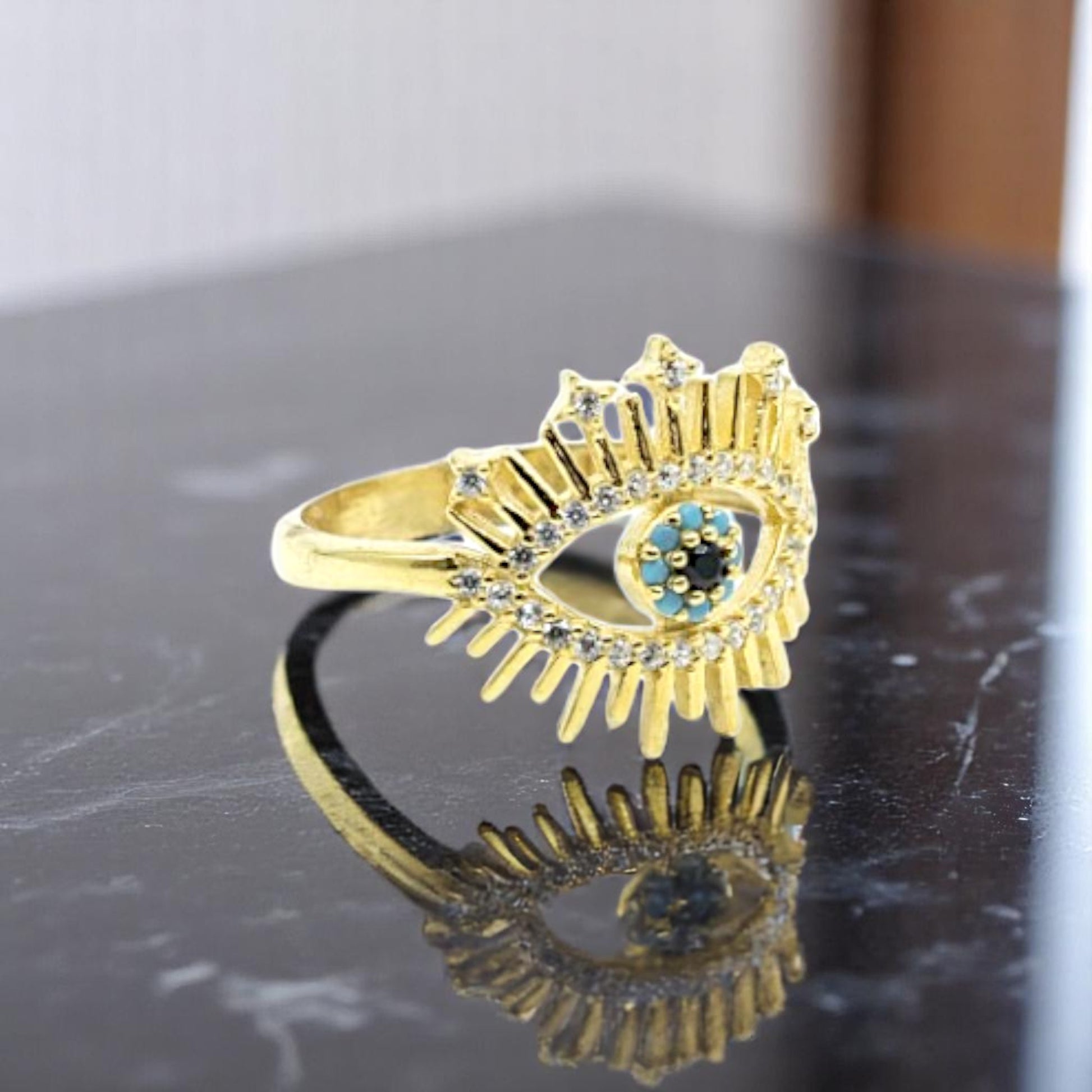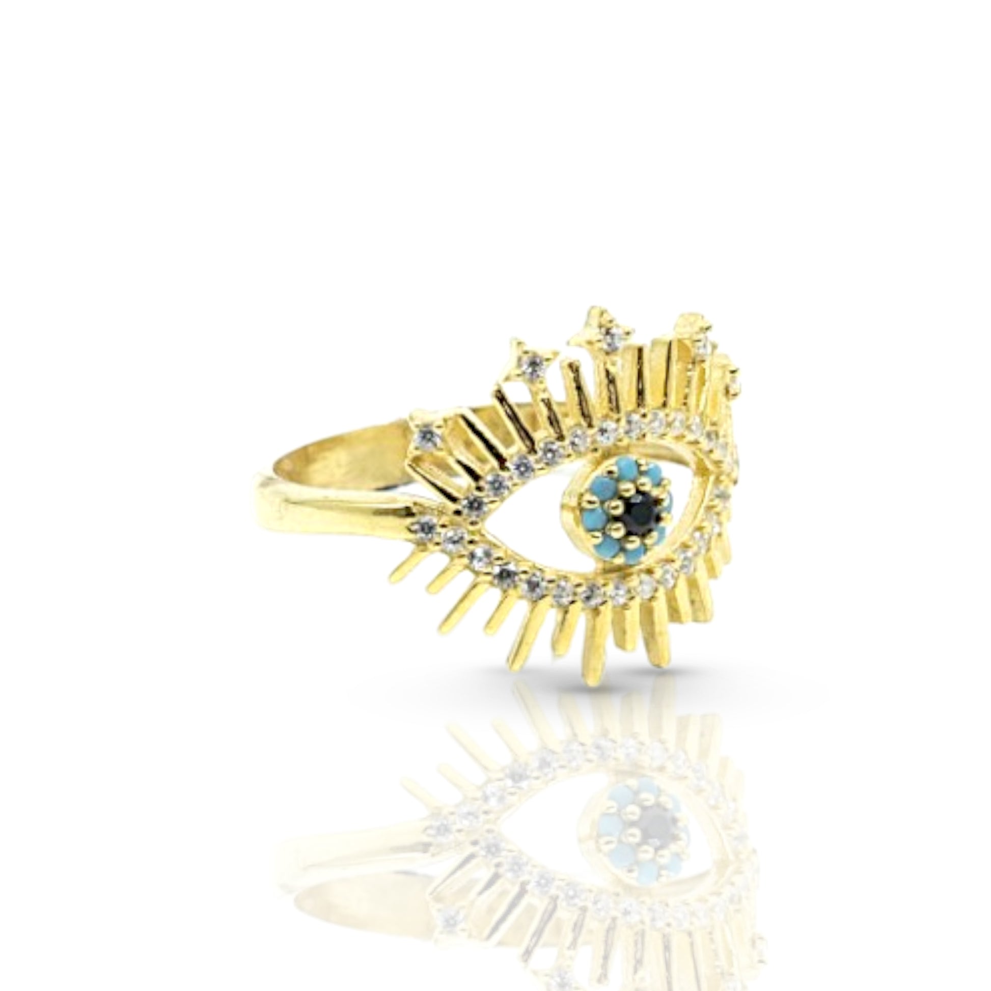 Yellow gold elegant and dainty evil eye ring, a classic and timeless ring, beautiful by itself or stacked, day or night.