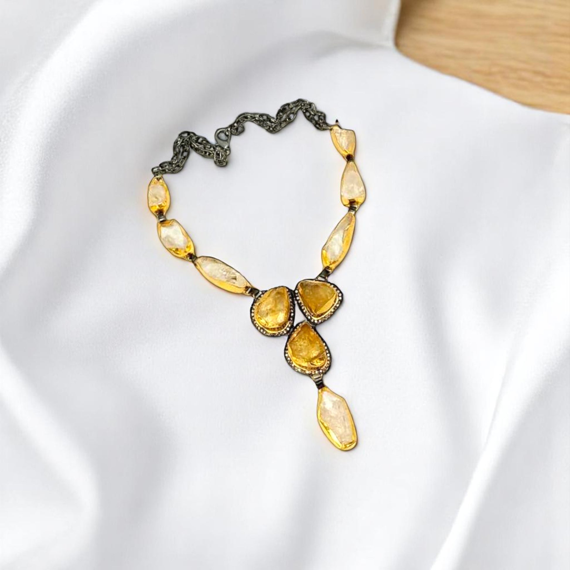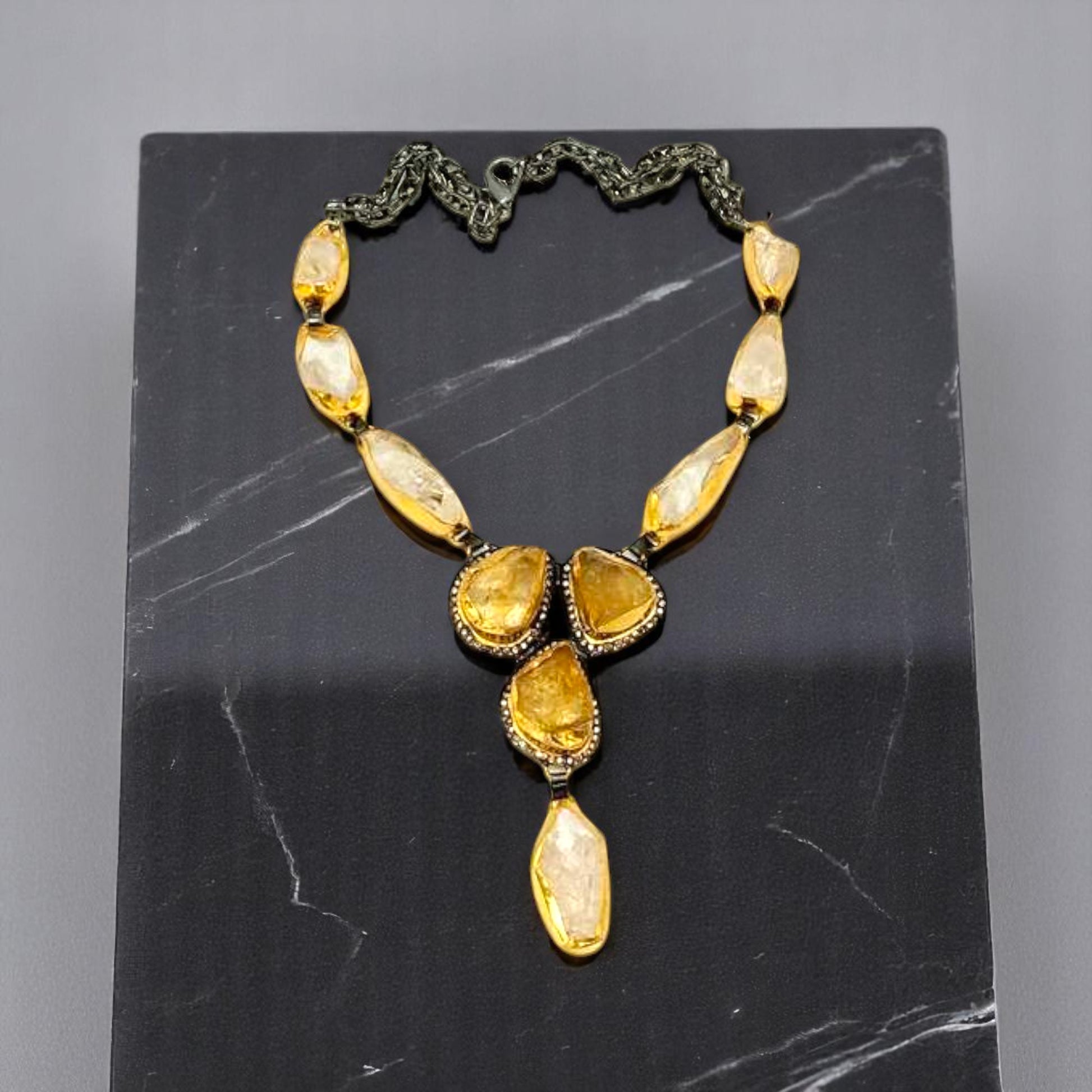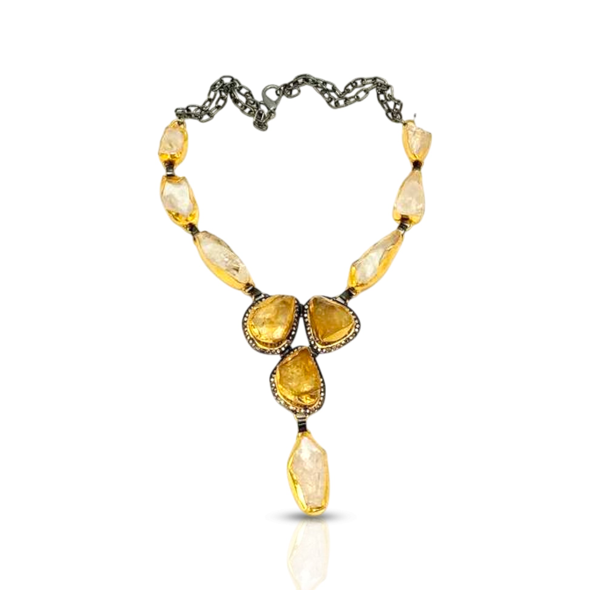 Rough Crystal Quartz and Rough Citrin Gold Necklace
