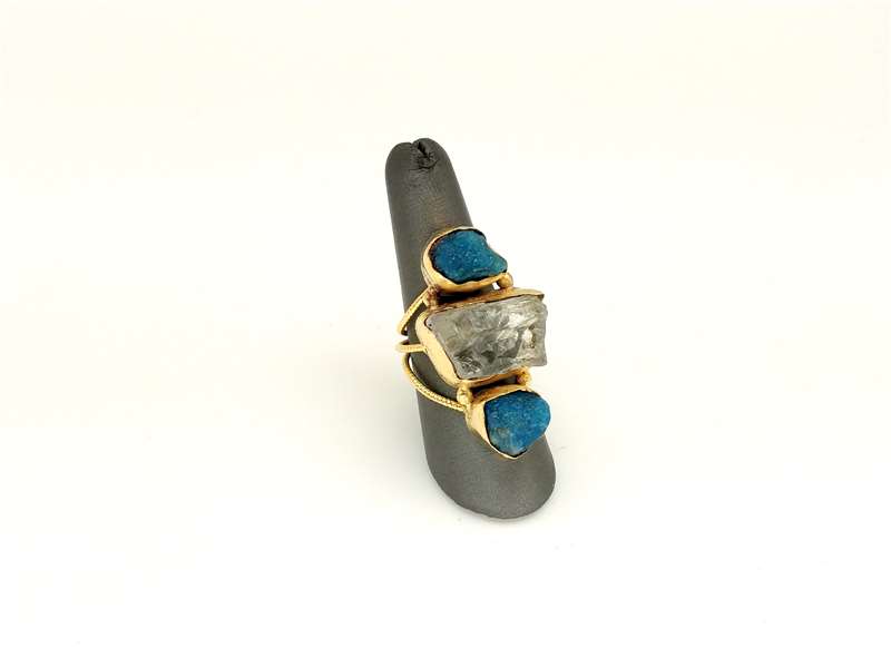 Rough Apatite and Rough Green Ametyst Gold Ring