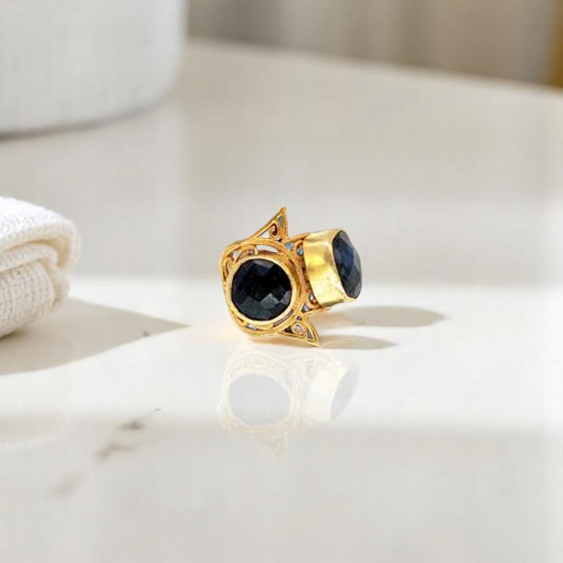 Saphire Gold Hamsa Ring