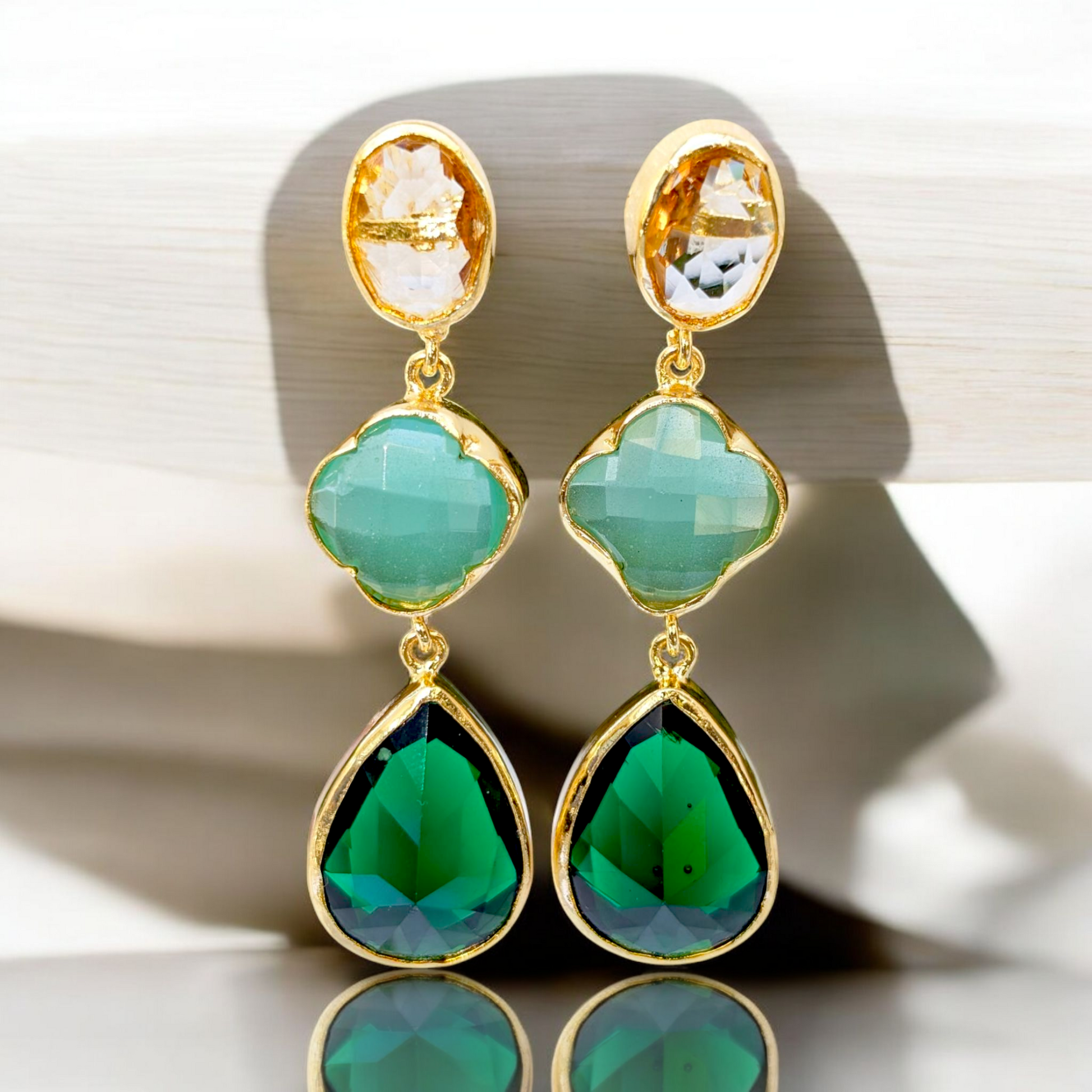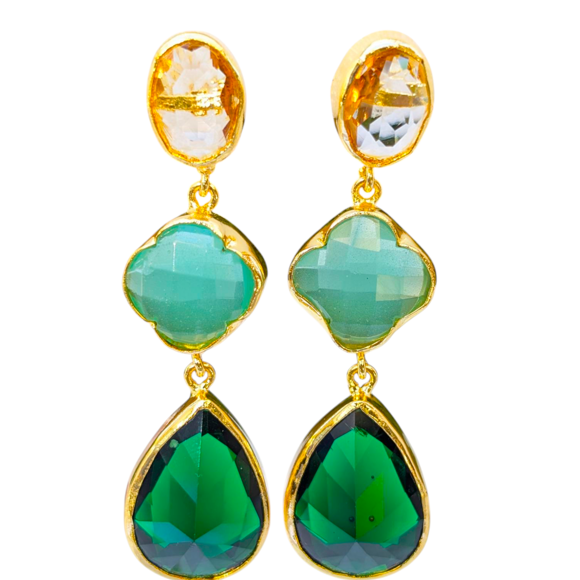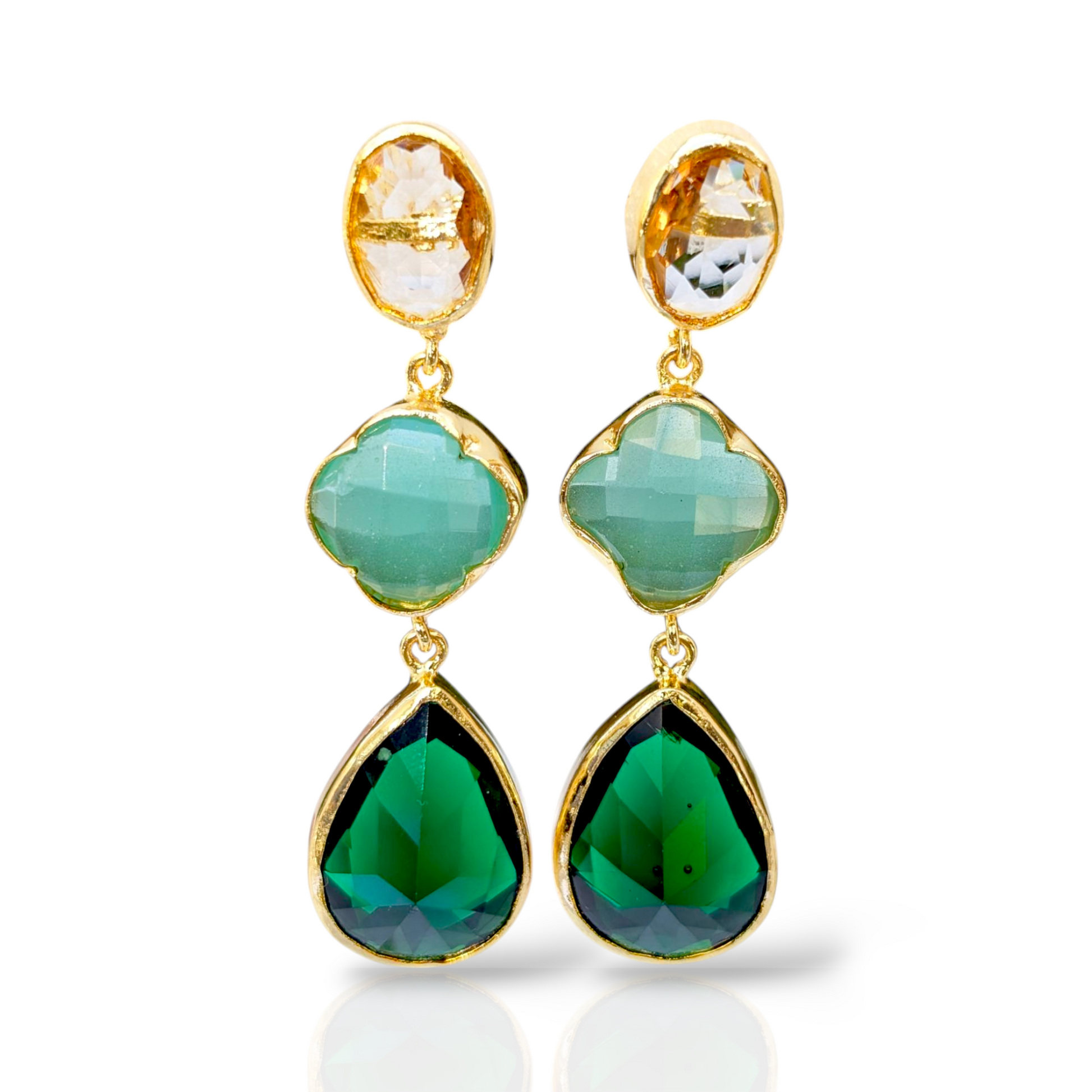Green CZ Handmade Gold Earrings