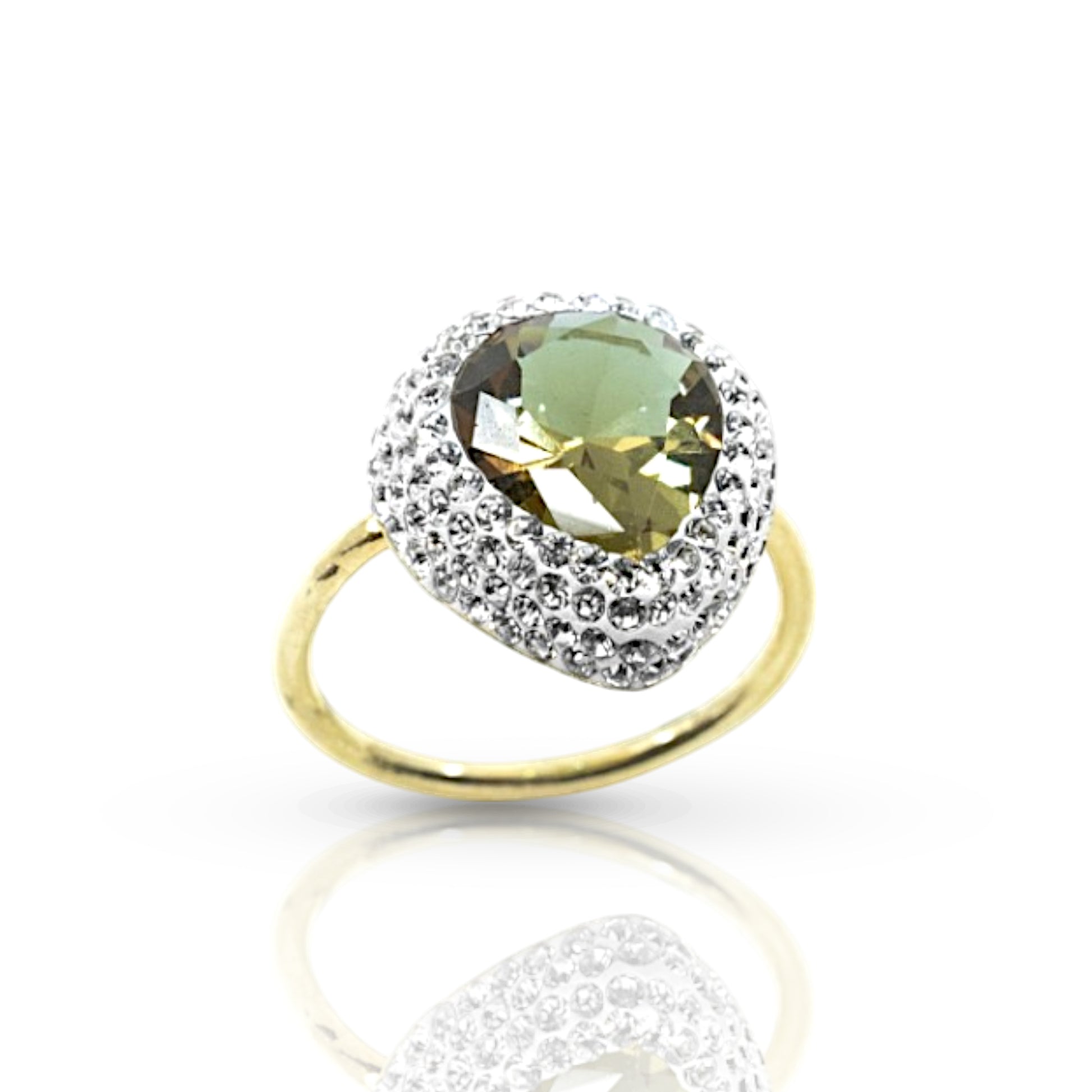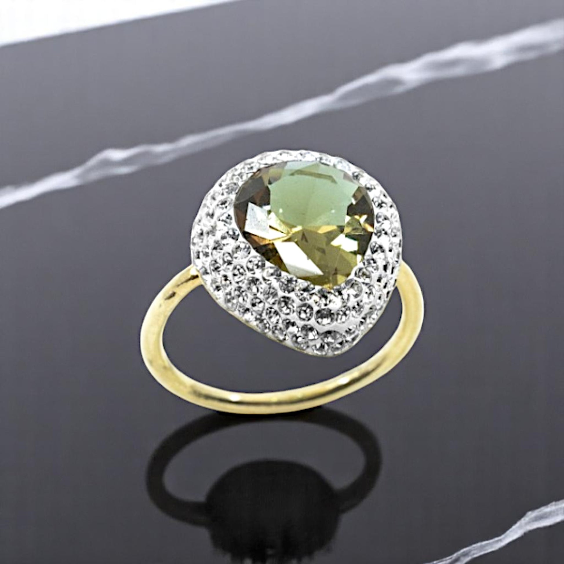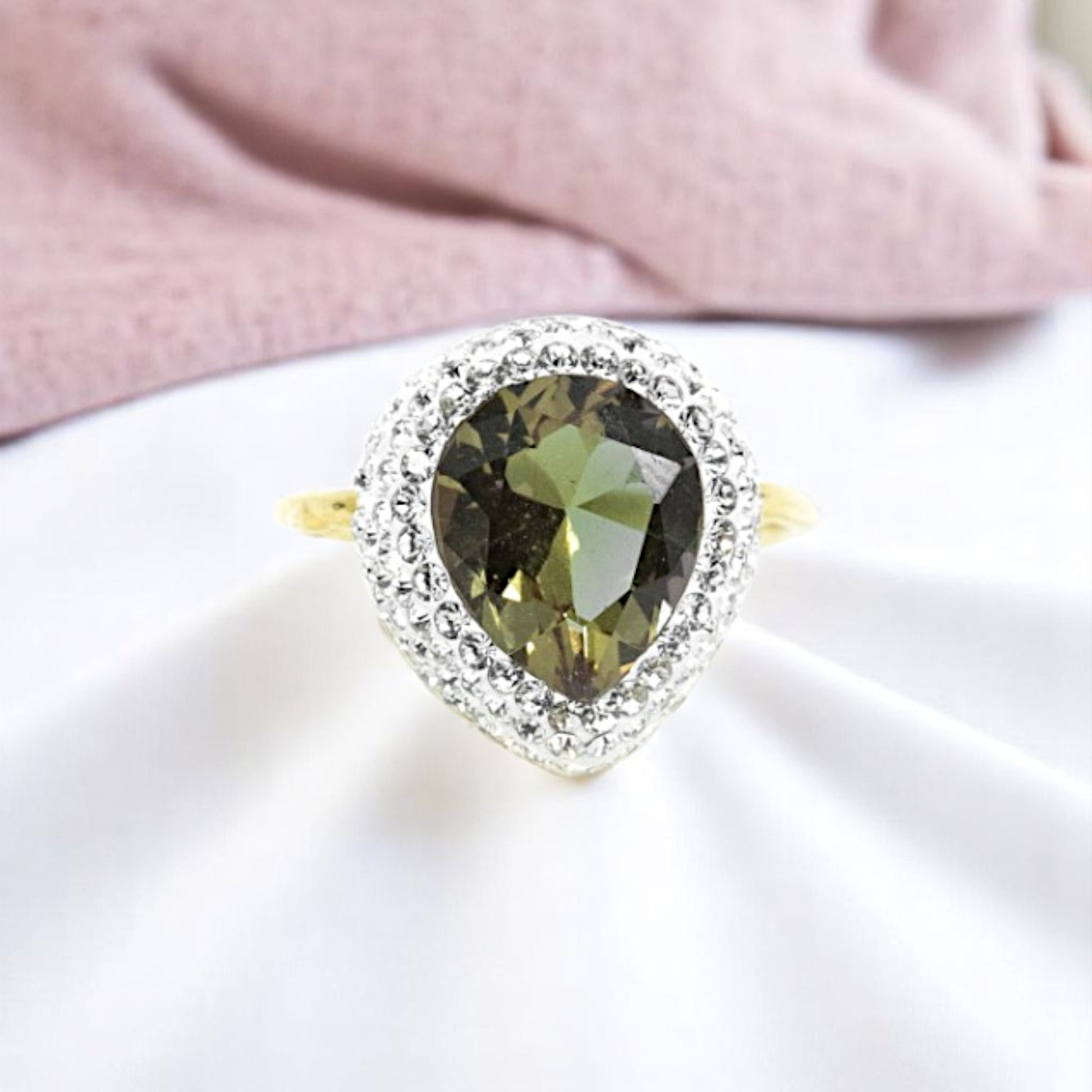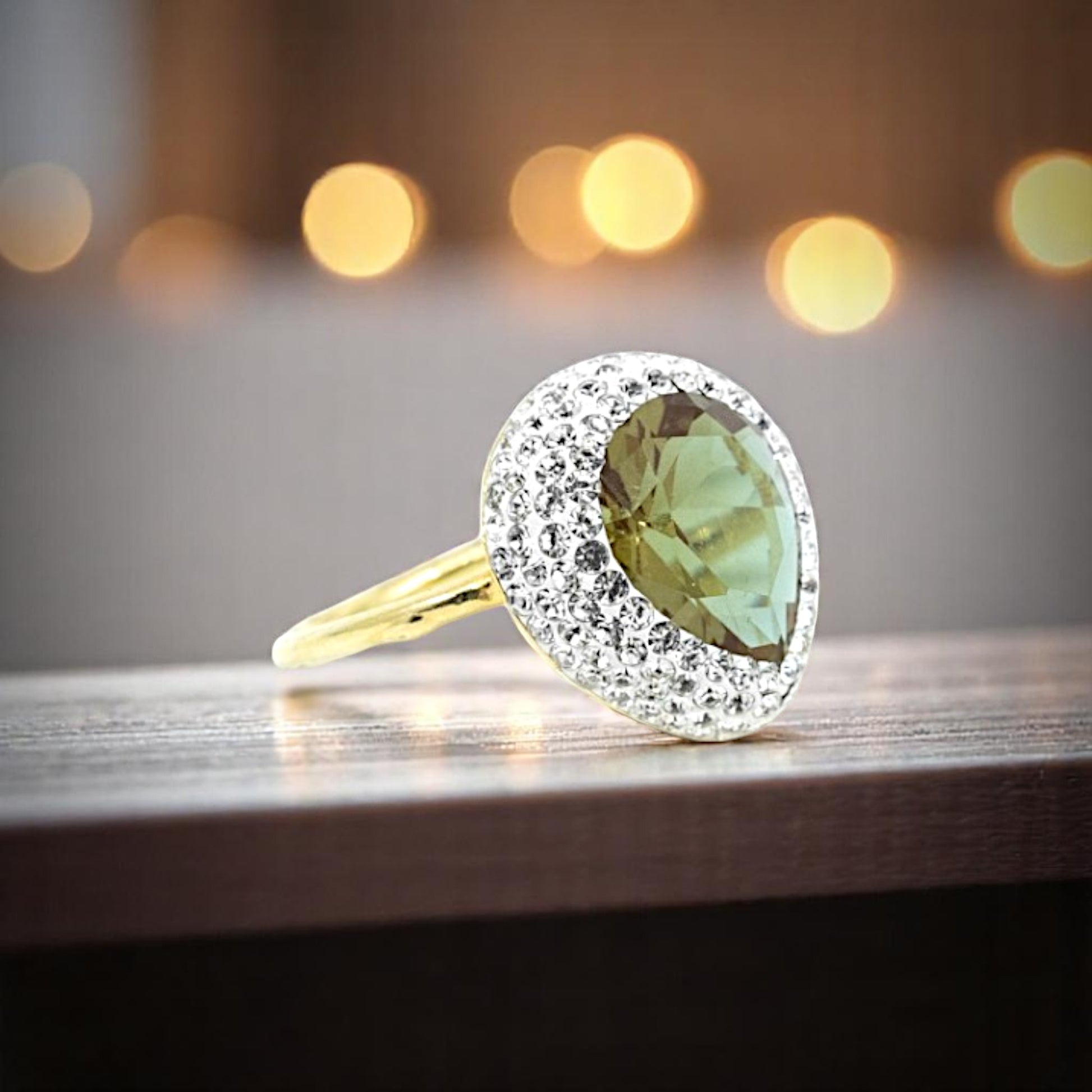 Beautiful and elegant Green Stone Ring With Hematite Trim brings luxury and romantic look. The ring is adjustable.