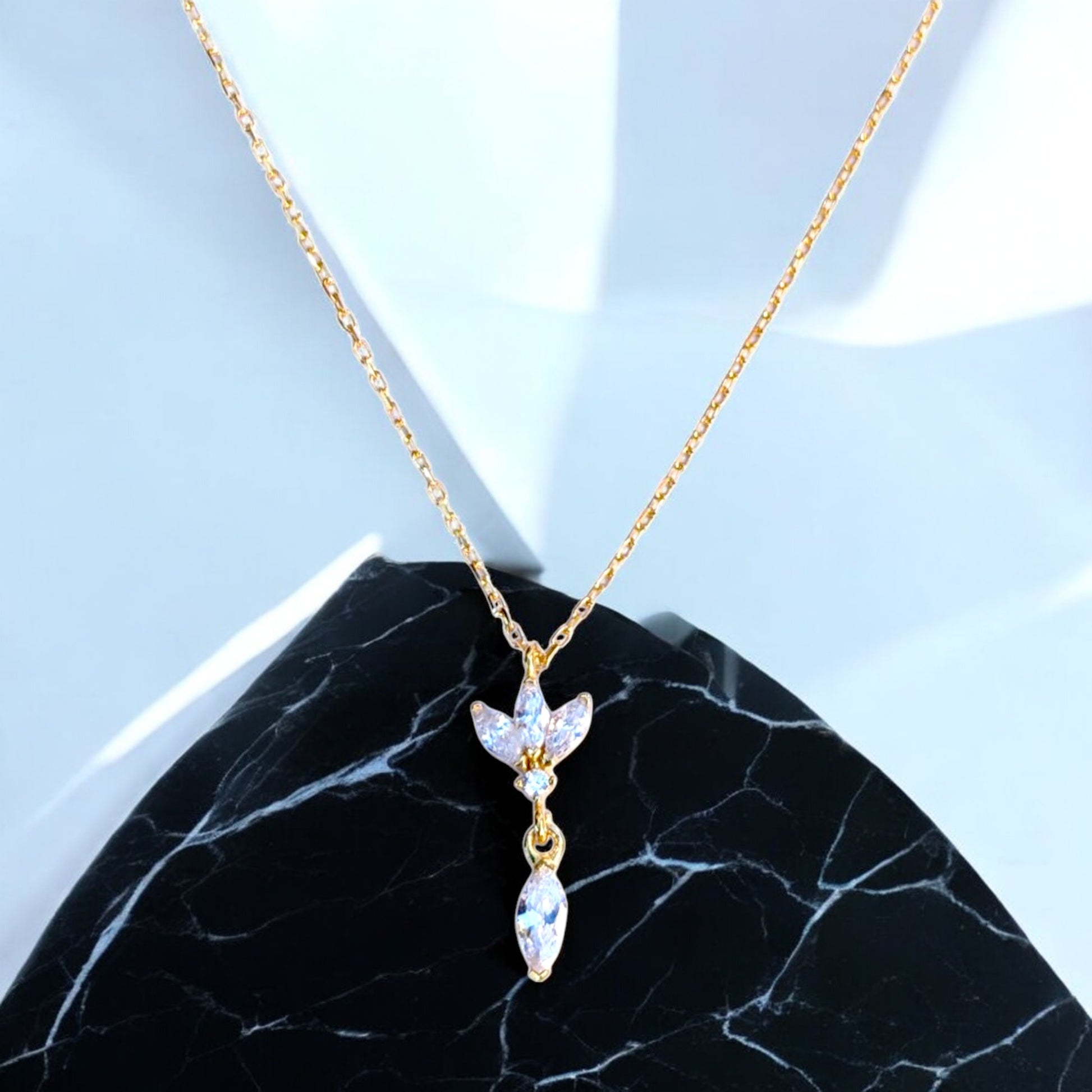 Trio Lotus Gold Necklace – Elegant Sparkling Cz Necklace