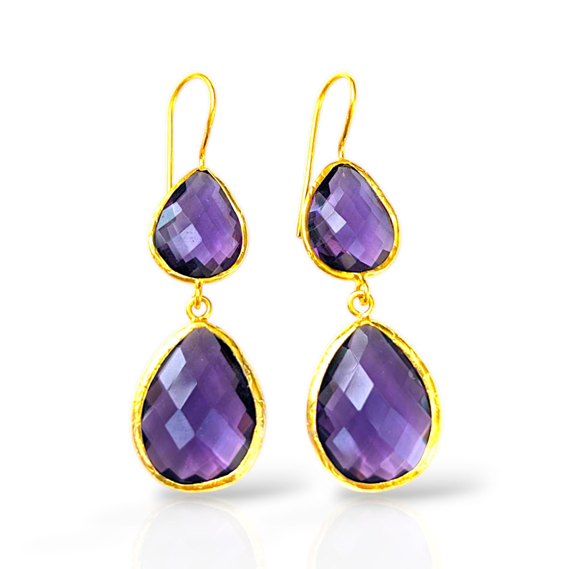 Elevate your jewelry collection with these exquisite handmade gold-plated earrings, featuring a stunning combination of natural amethyst and sparkling cubic zirconia (CZ) stones. Expertly crafted in Turkey, each pair showcases the rich purple hues of genuine amethyst paired with the brilliant fire of CZ, all set in luxurious gold-plated brass for a sophisticated finish.