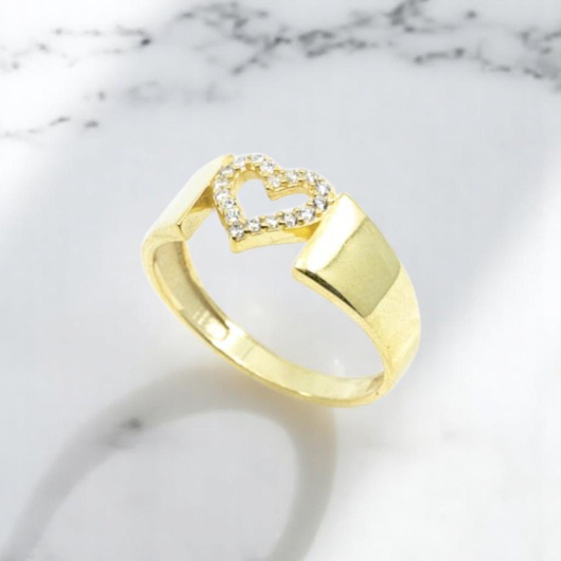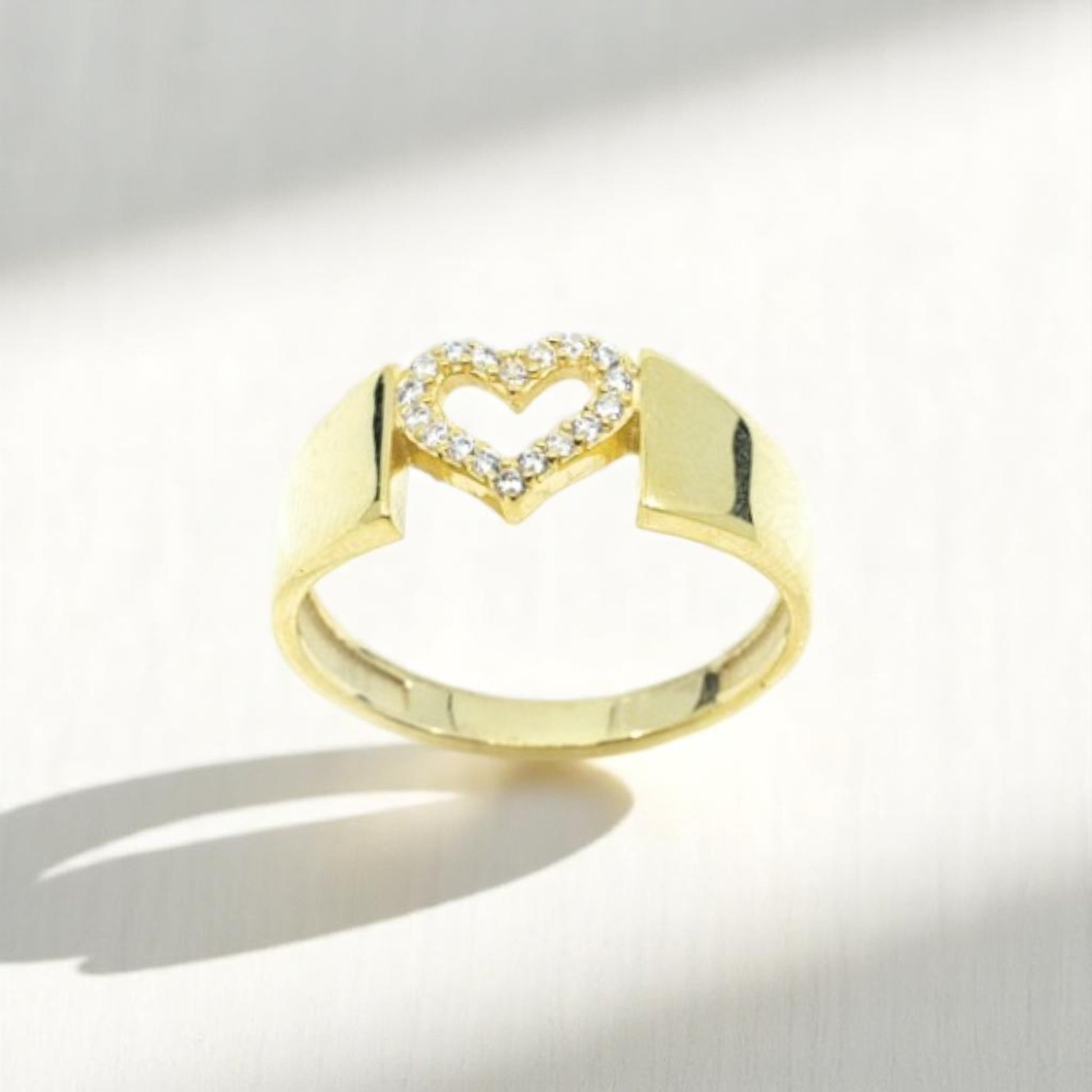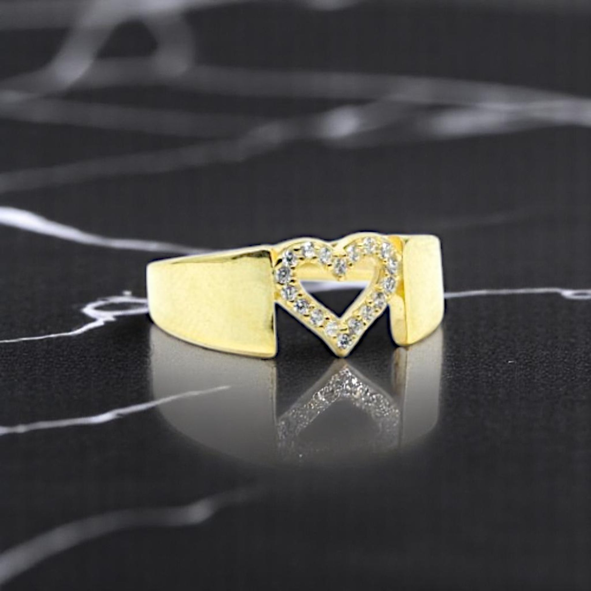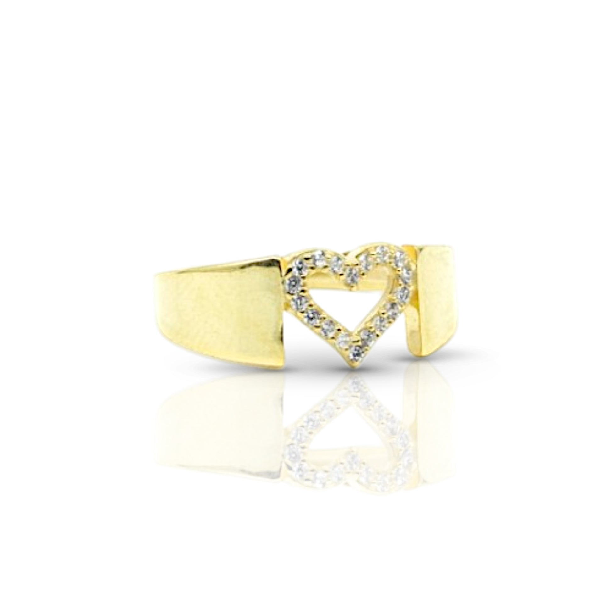 Open Heart Wide Band Gold Ring