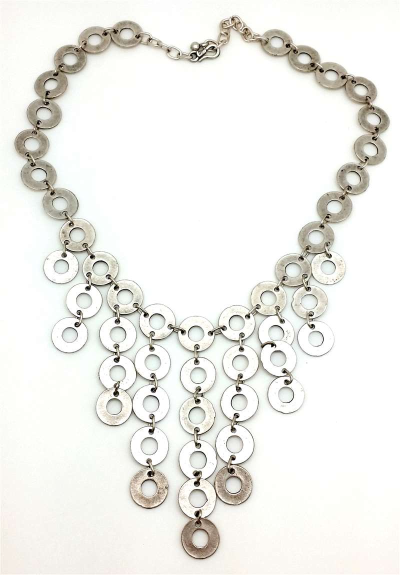It is silver plated over Zinc. It "doesn't" change color. Led and nicel free.