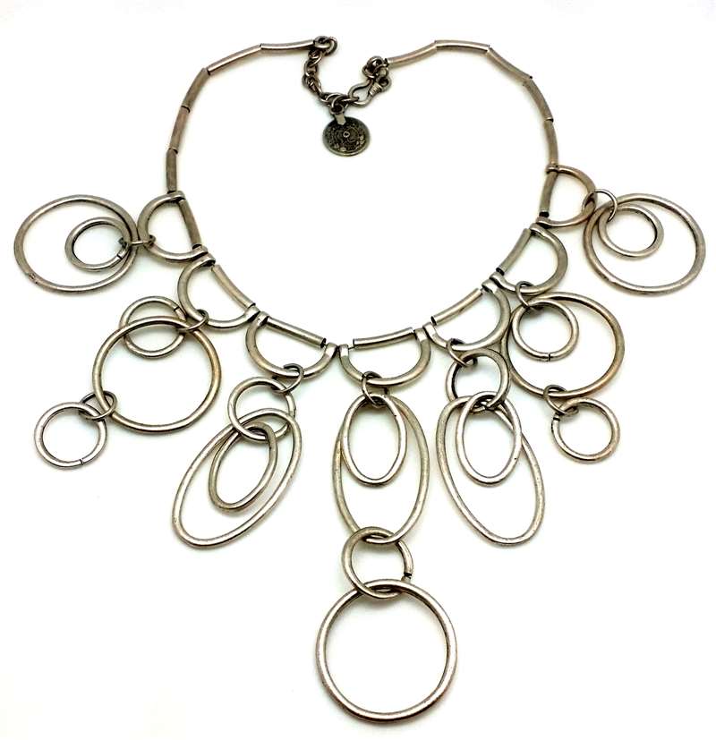 It is silver plated over Zinc. It "doesn't" change color. Led and nicel free.