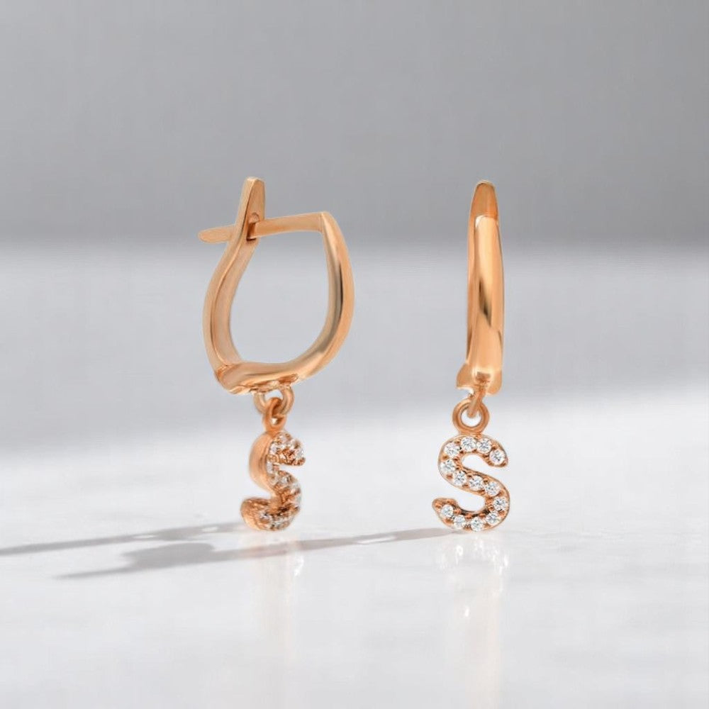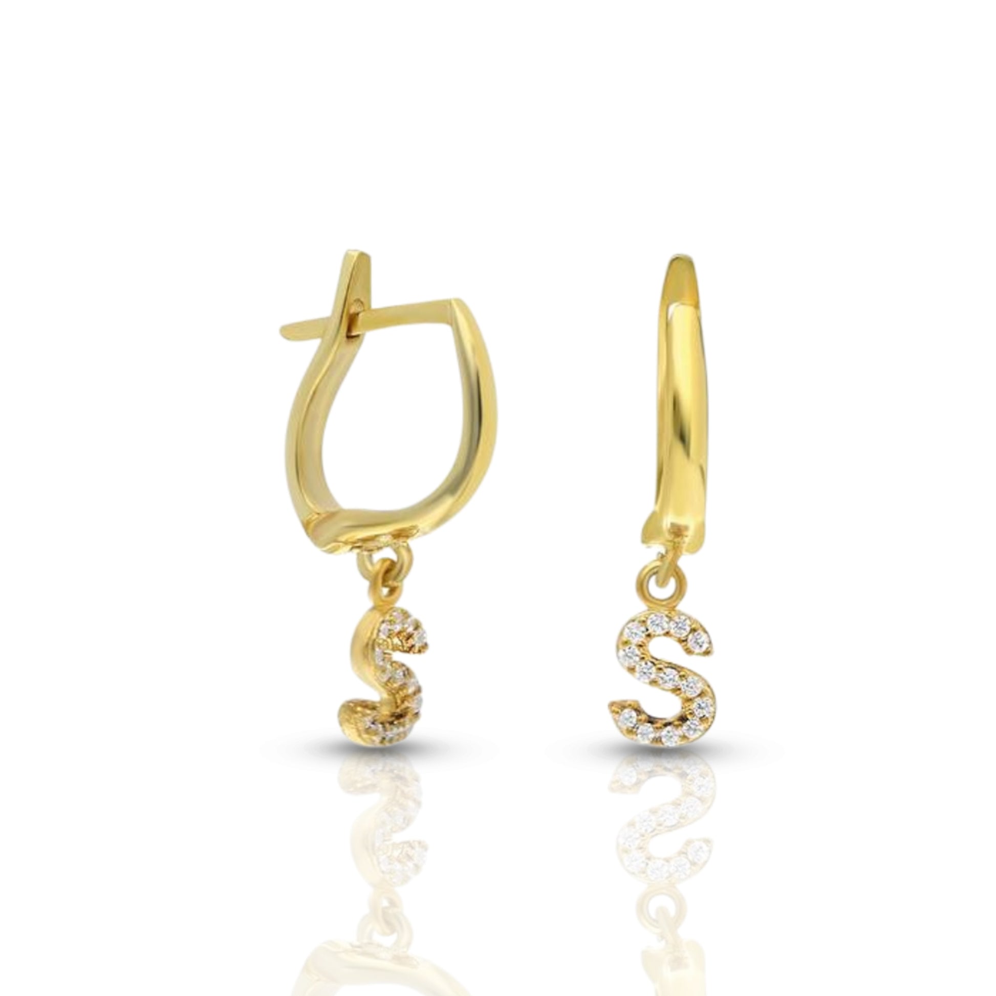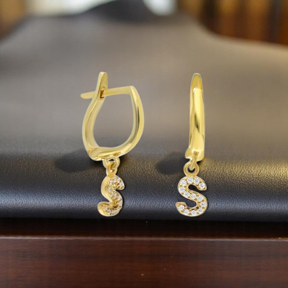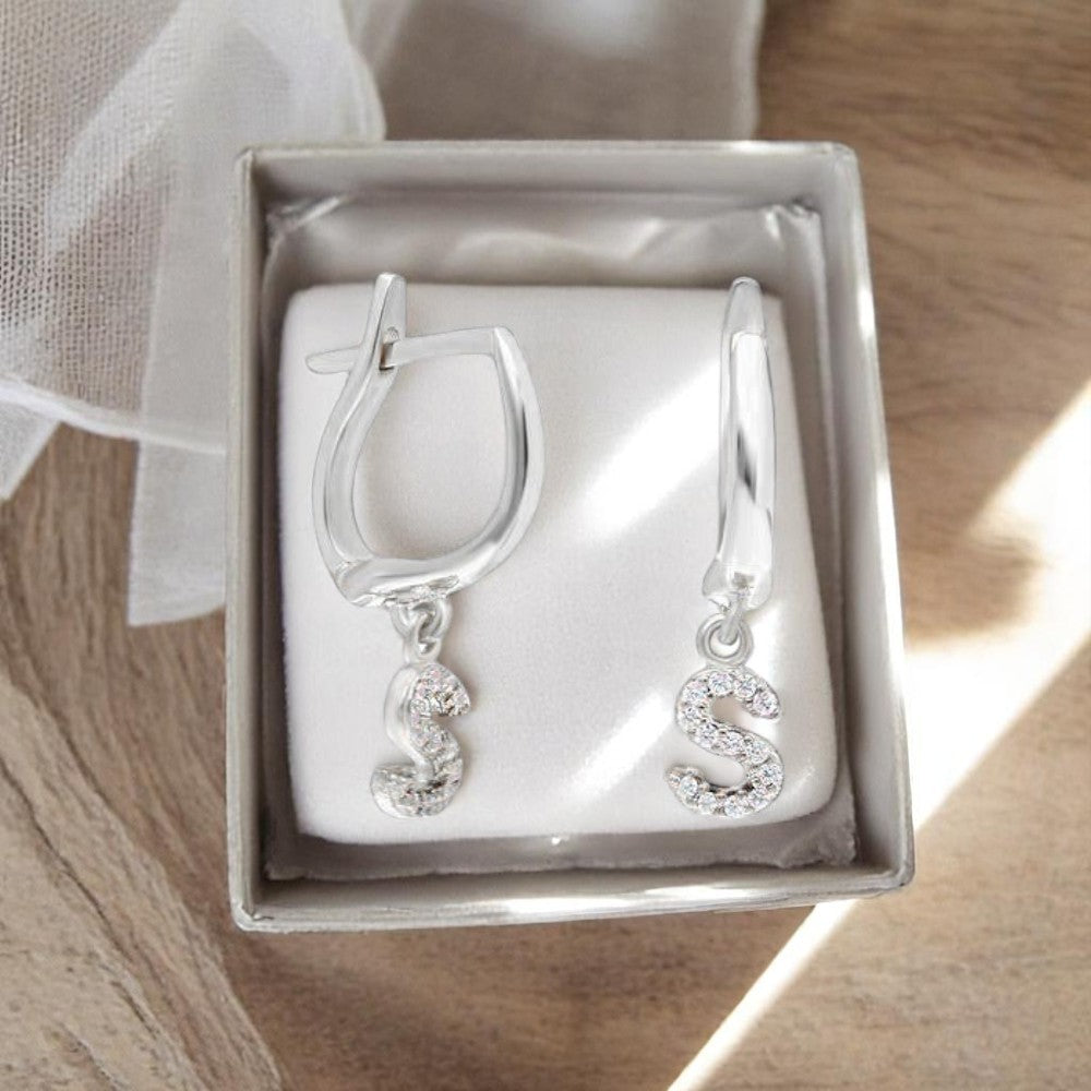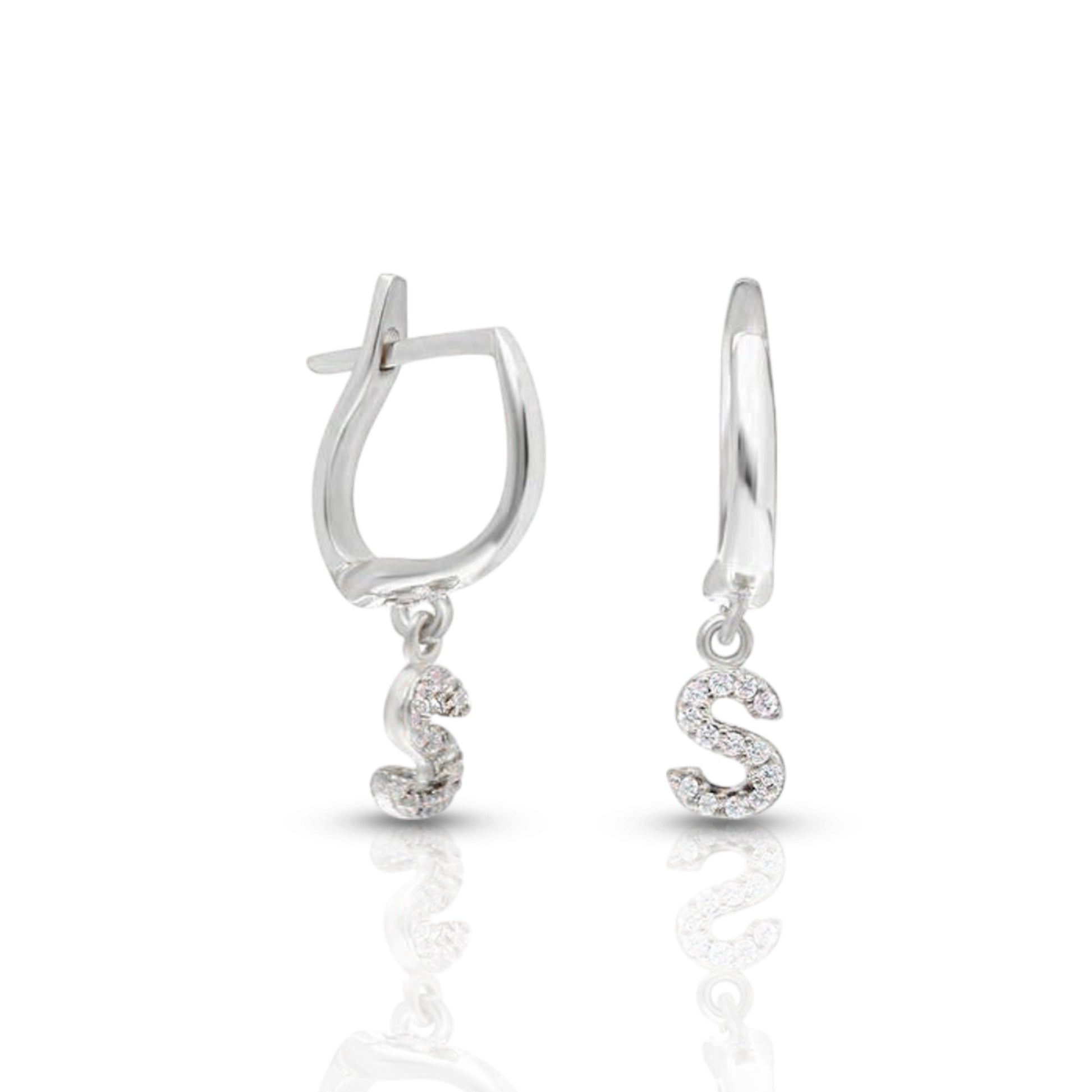This beautiful custom made name Earring has a delicate, CZ letters on a silver hoop. Design your own earrings, and let us craft letter earrings with the letter of your choice. Give these earrings as a thoughtful personalized wedding gift, baby shower gift, mother’s day gift, or in honor of any other special occasion.
