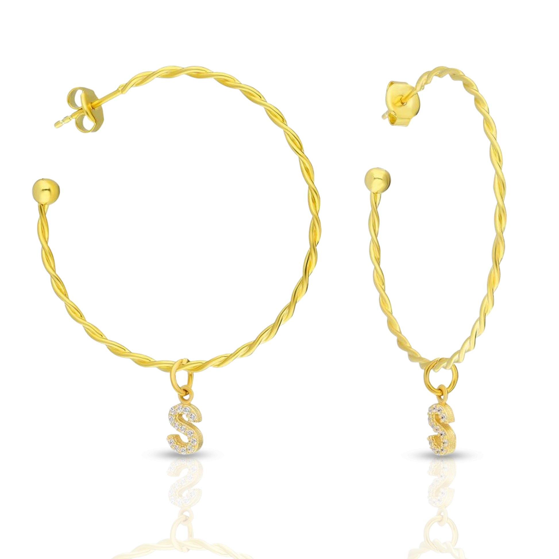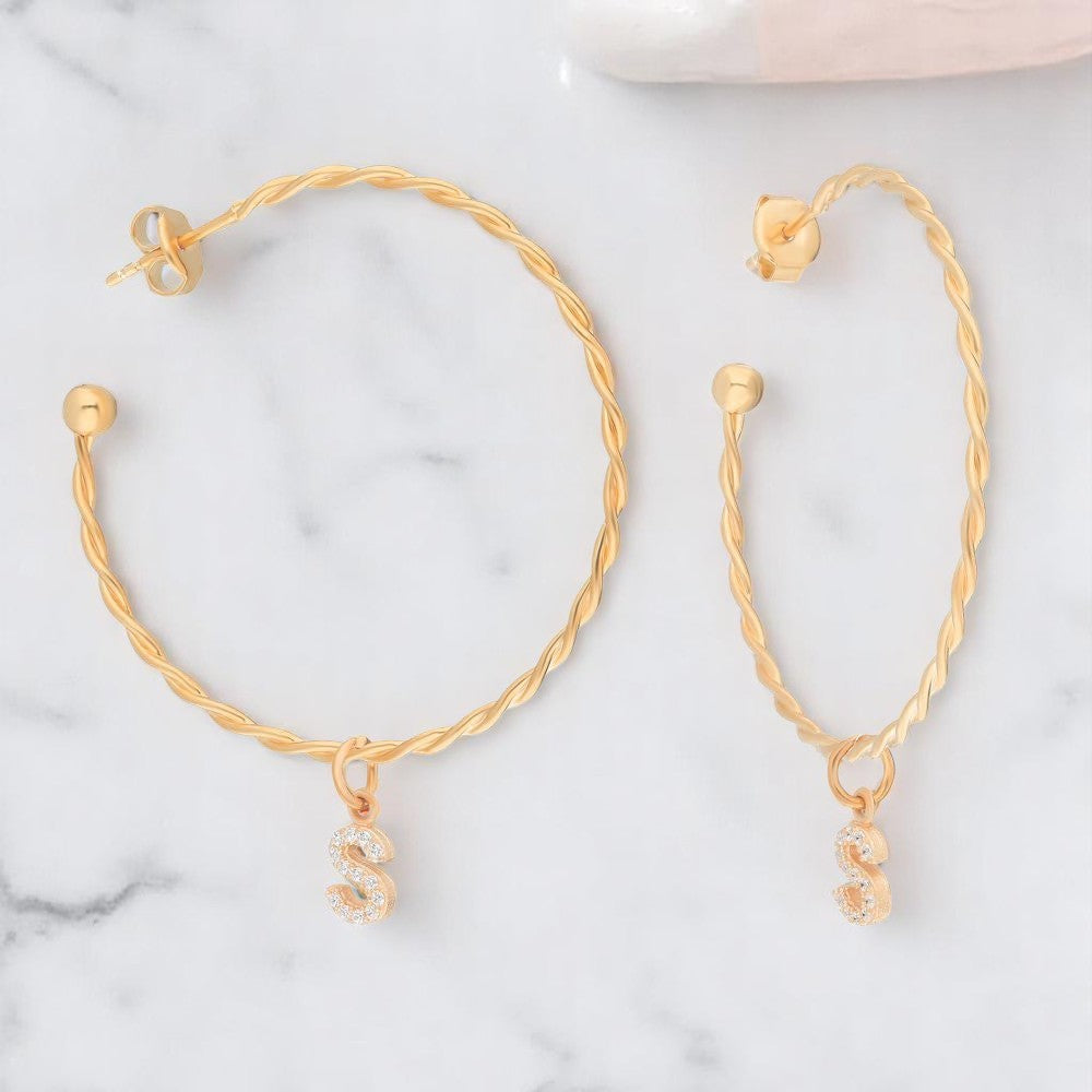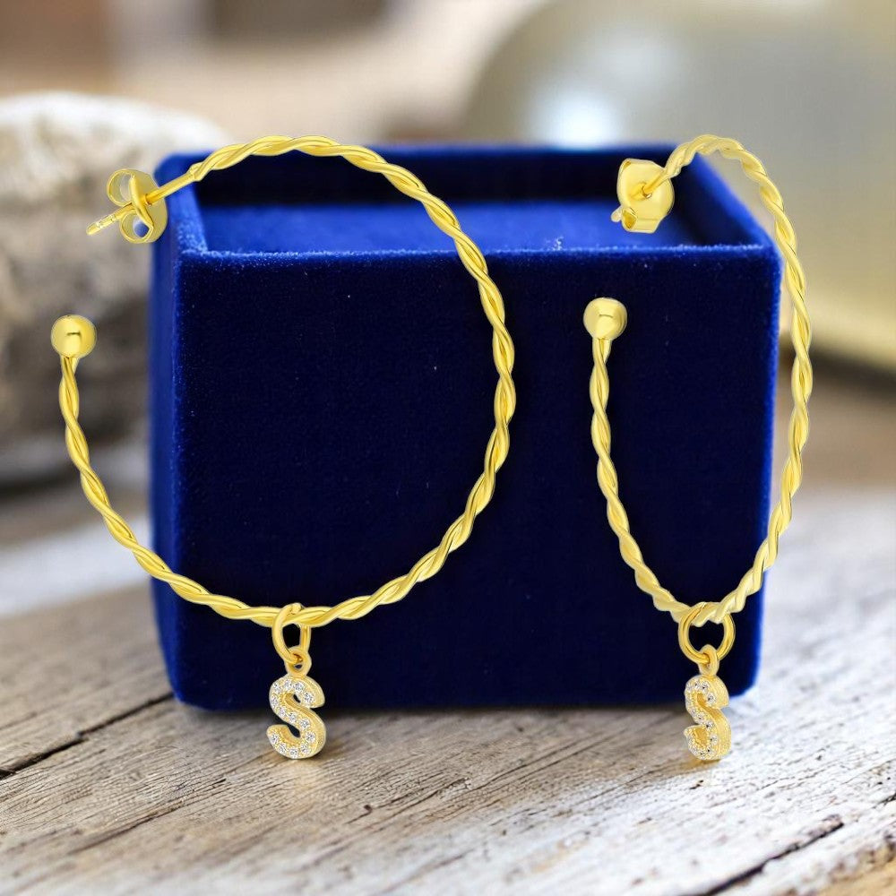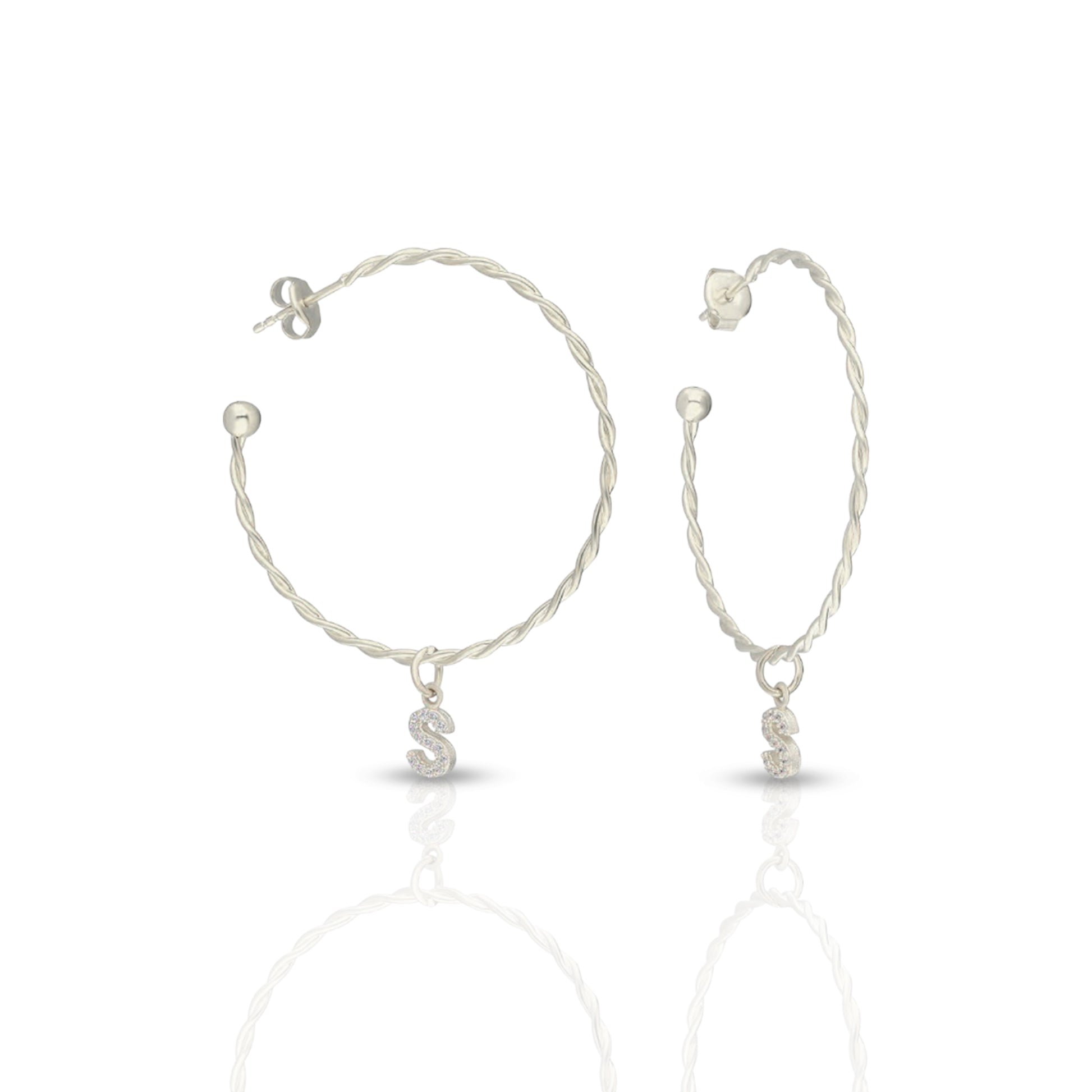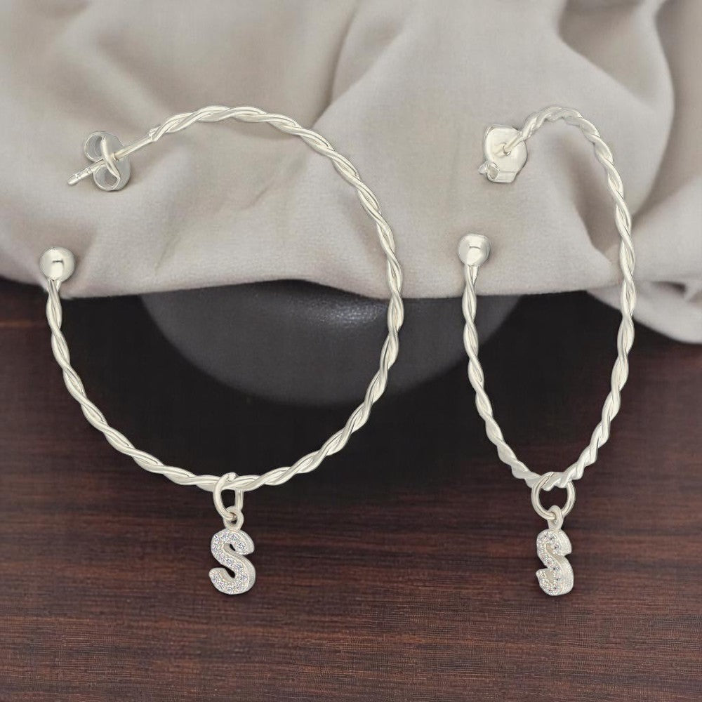 This beautiful custom made name Earring has a delicate, CZ letters on a silver hoop. Design your own earrings, and let us craft letter earrings with the letter of your choice. Give these earrings as a thoughtful personalized wedding gift, baby shower gift, mother’s day gift, or in honor of any other special occasion.