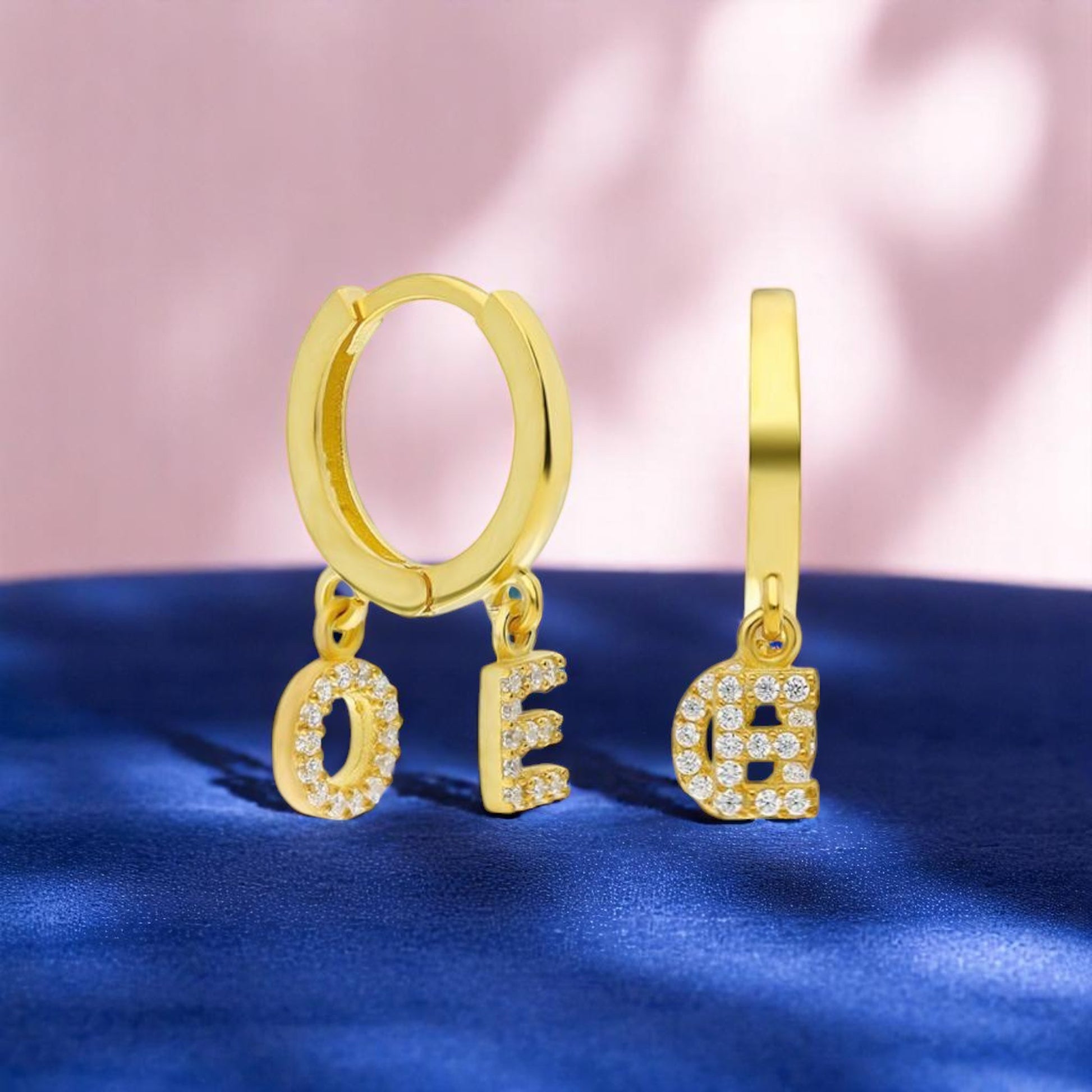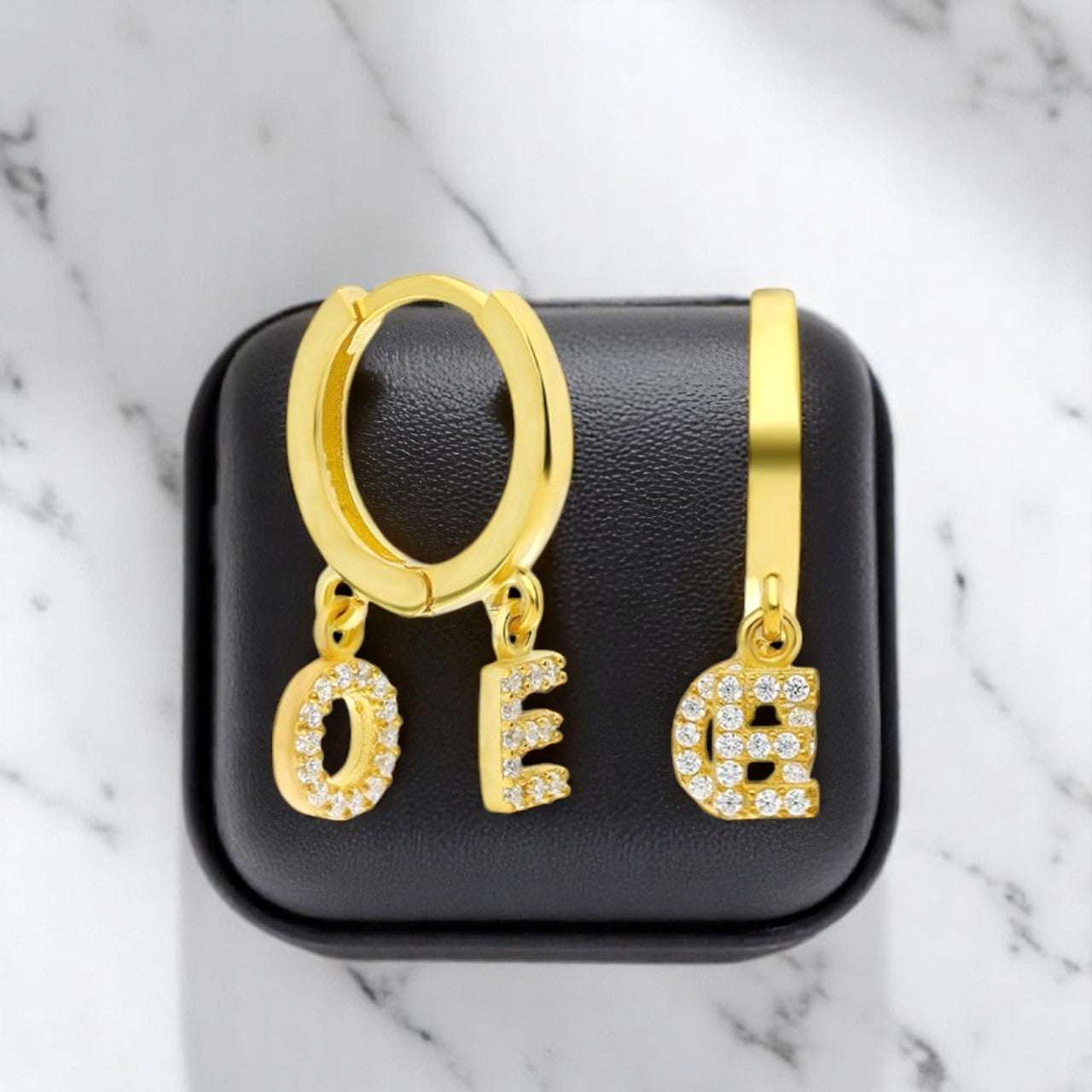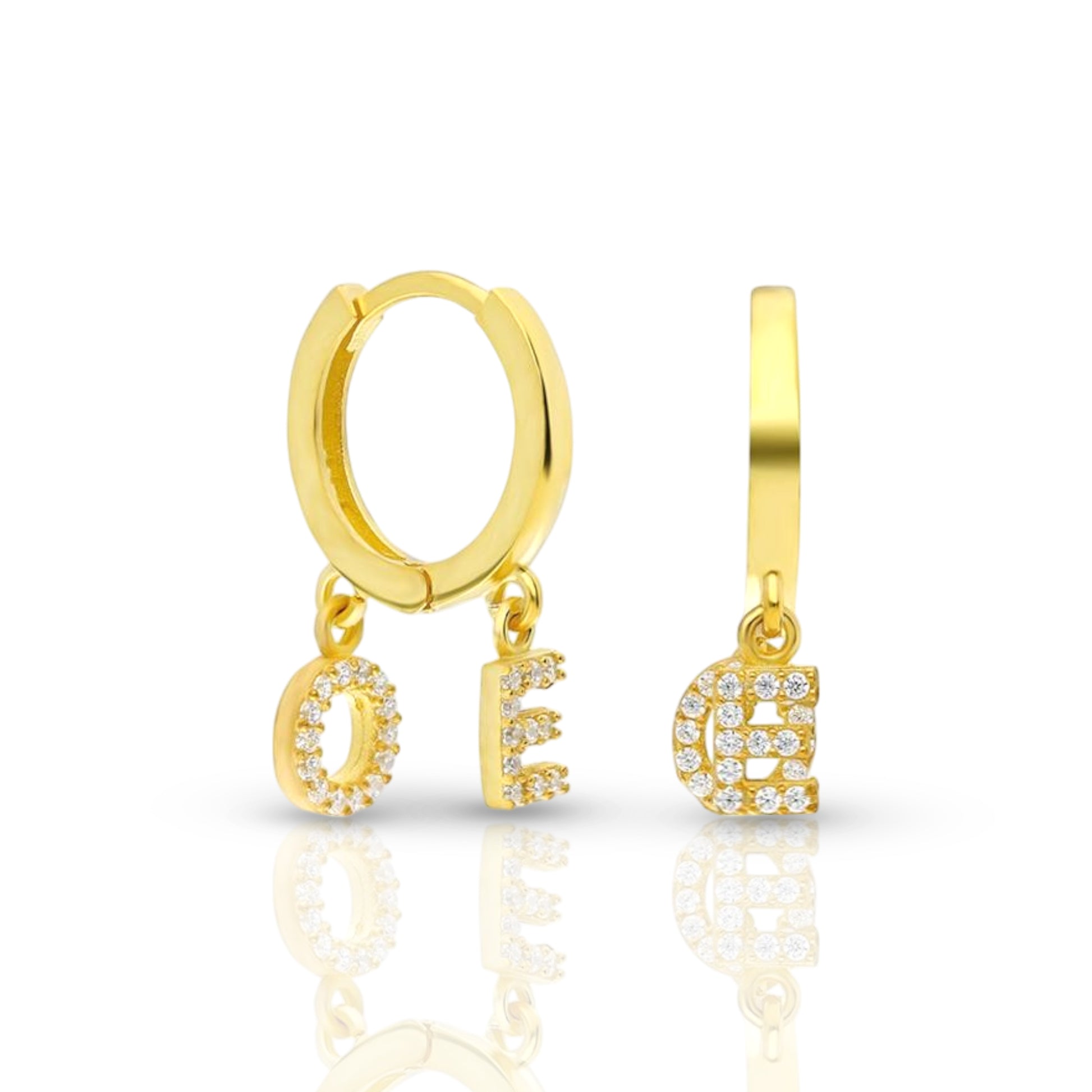 This beautiful custom made name Earring has a delicate, CZ letters on a silver diamond hoop. Design your own earrings, and let us craft letter earrings with the letter of your choice. Give these earrings as a thoughtful personalized wedding gift, baby shower gift, mother’s day gift, or in honor of any other special occasion.