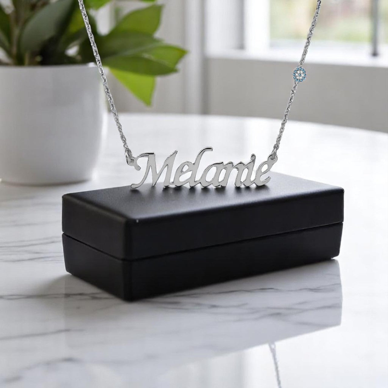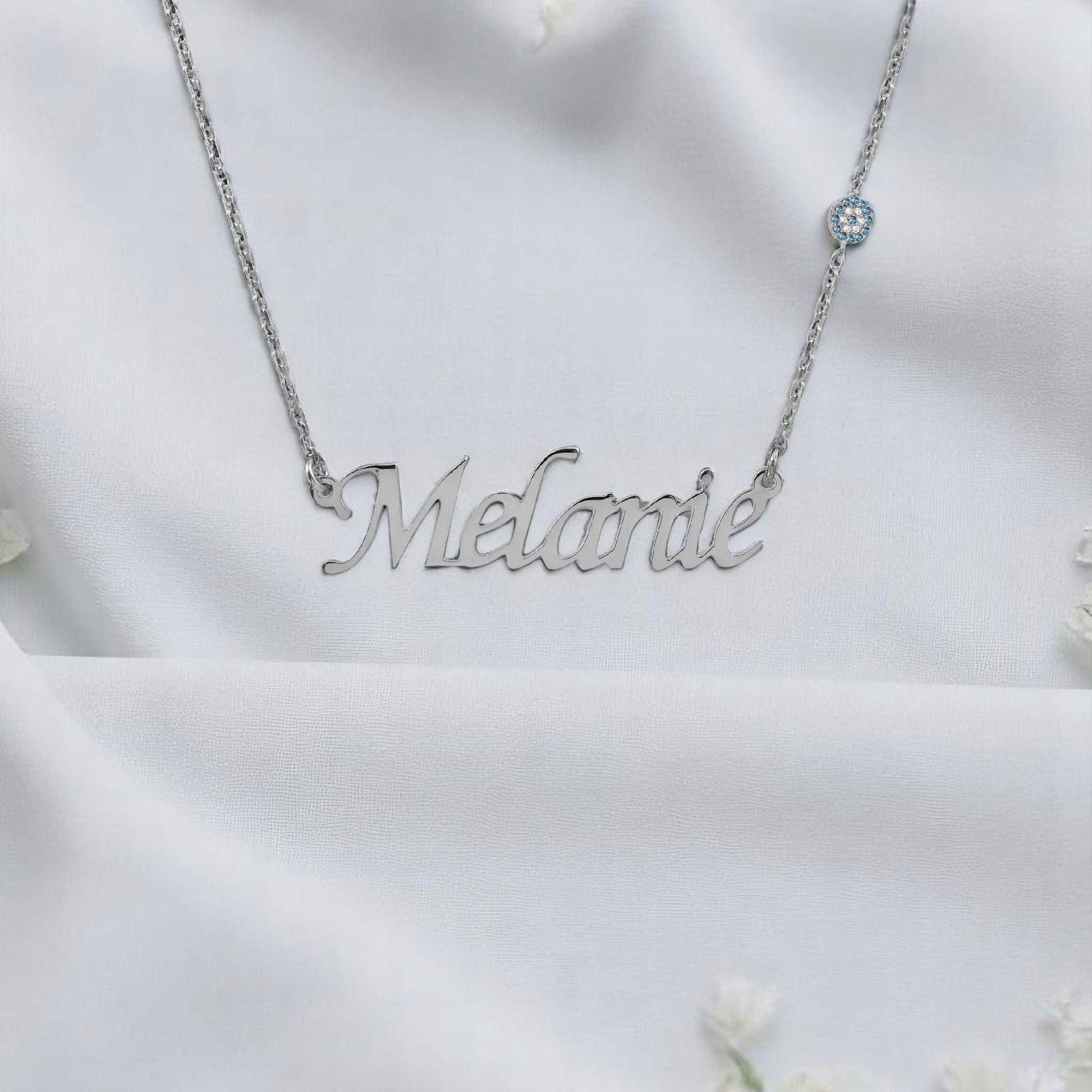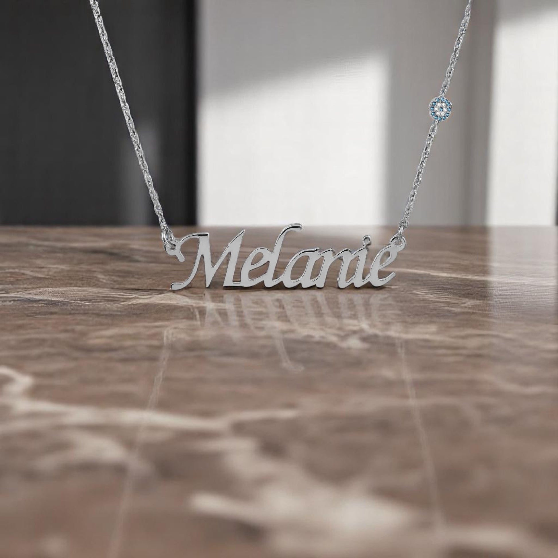 This beautiful custom made name necklace has a delicate, name on your chosen size chain. Design your own necklace, and let us craft a name necklace with the name or phrase of your choice. Give this necklace as a thoughtful personalized wedding gift, baby shower gift, mother’s day gift, or in honor of any other special occasion.